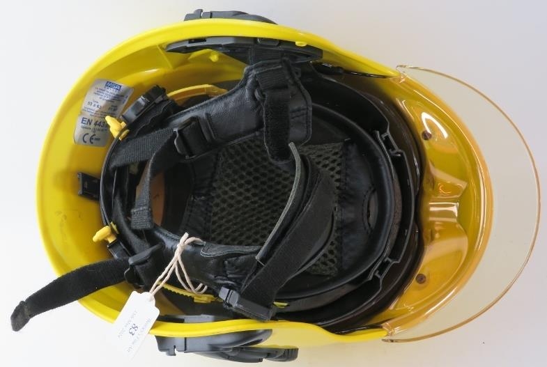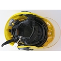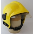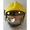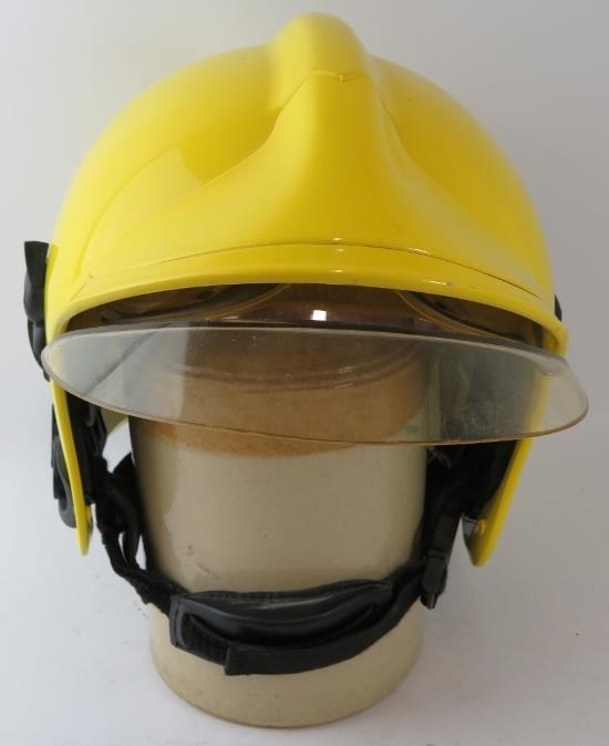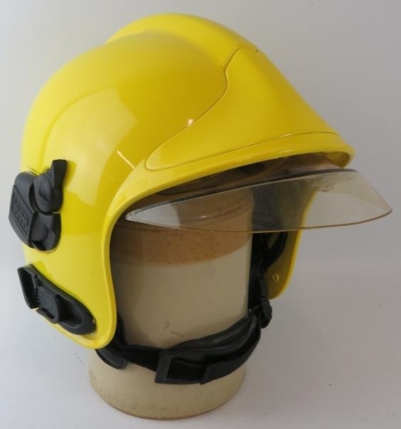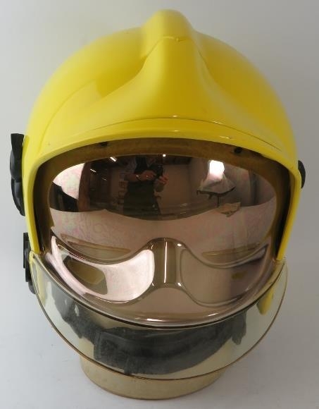 A modern MSA Gallet ABS fire helmet with reflective integrated visor system