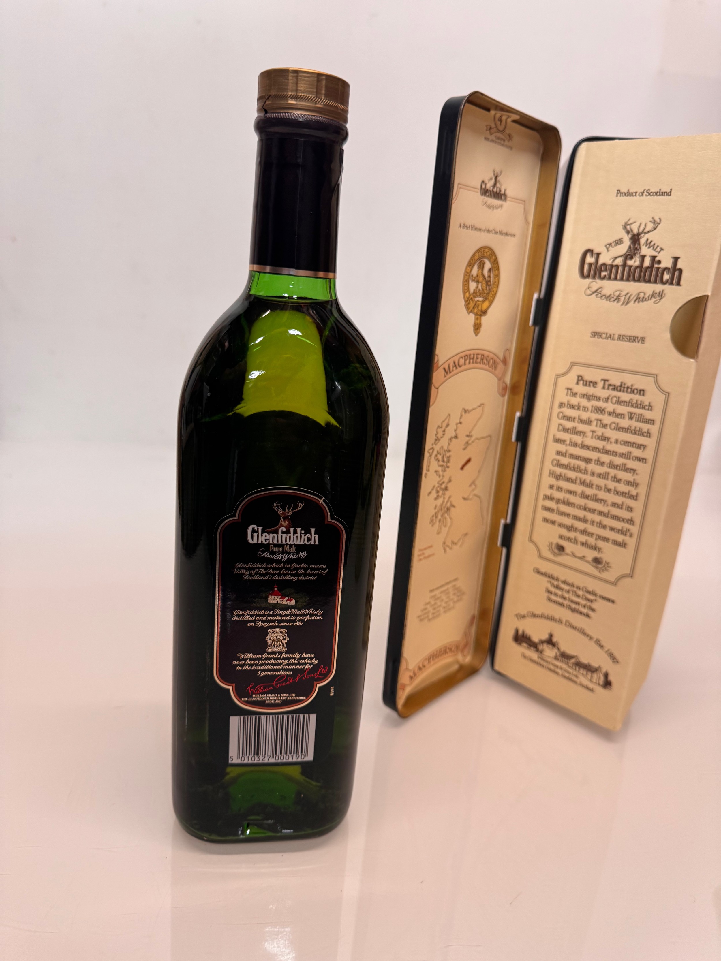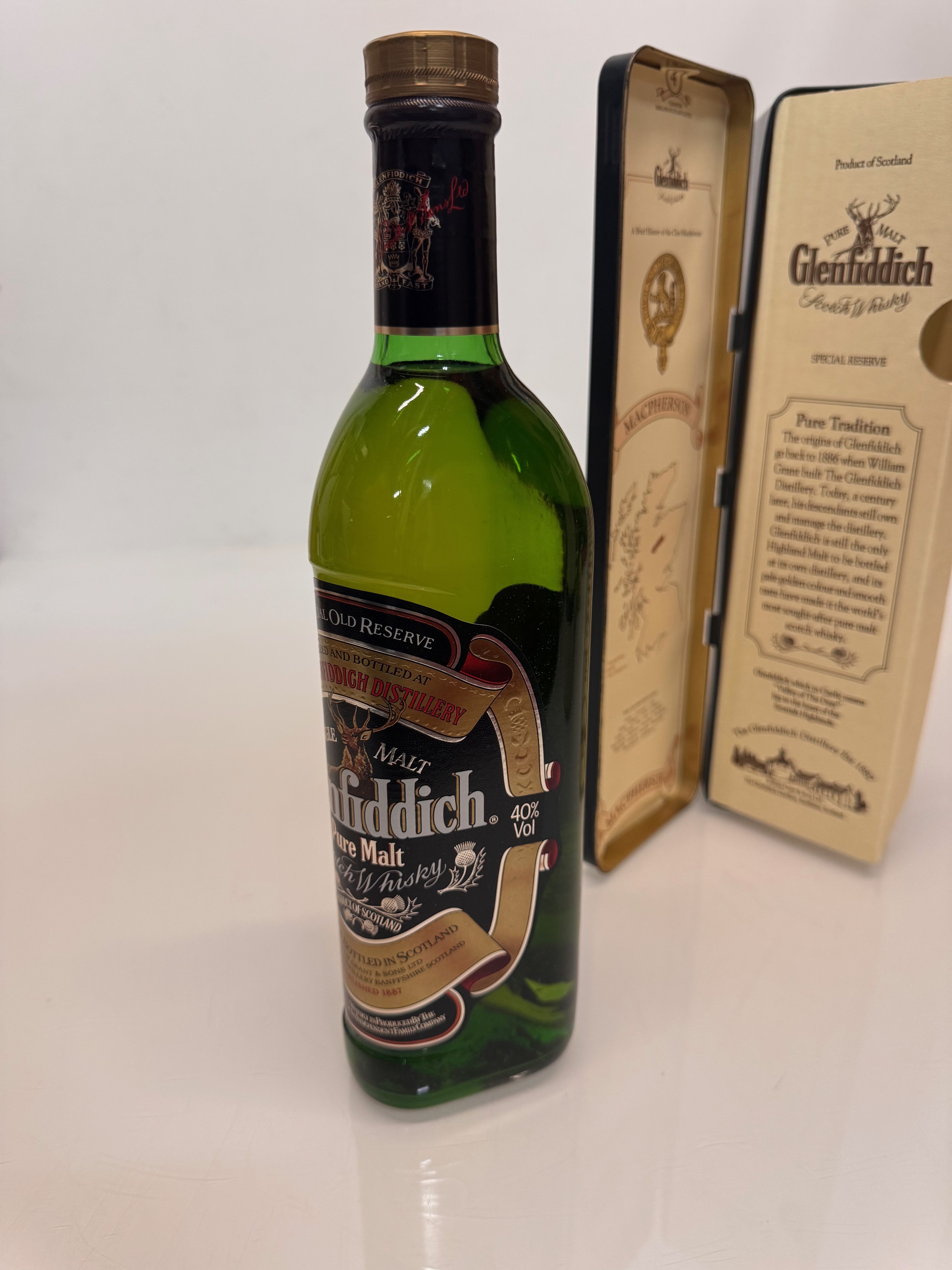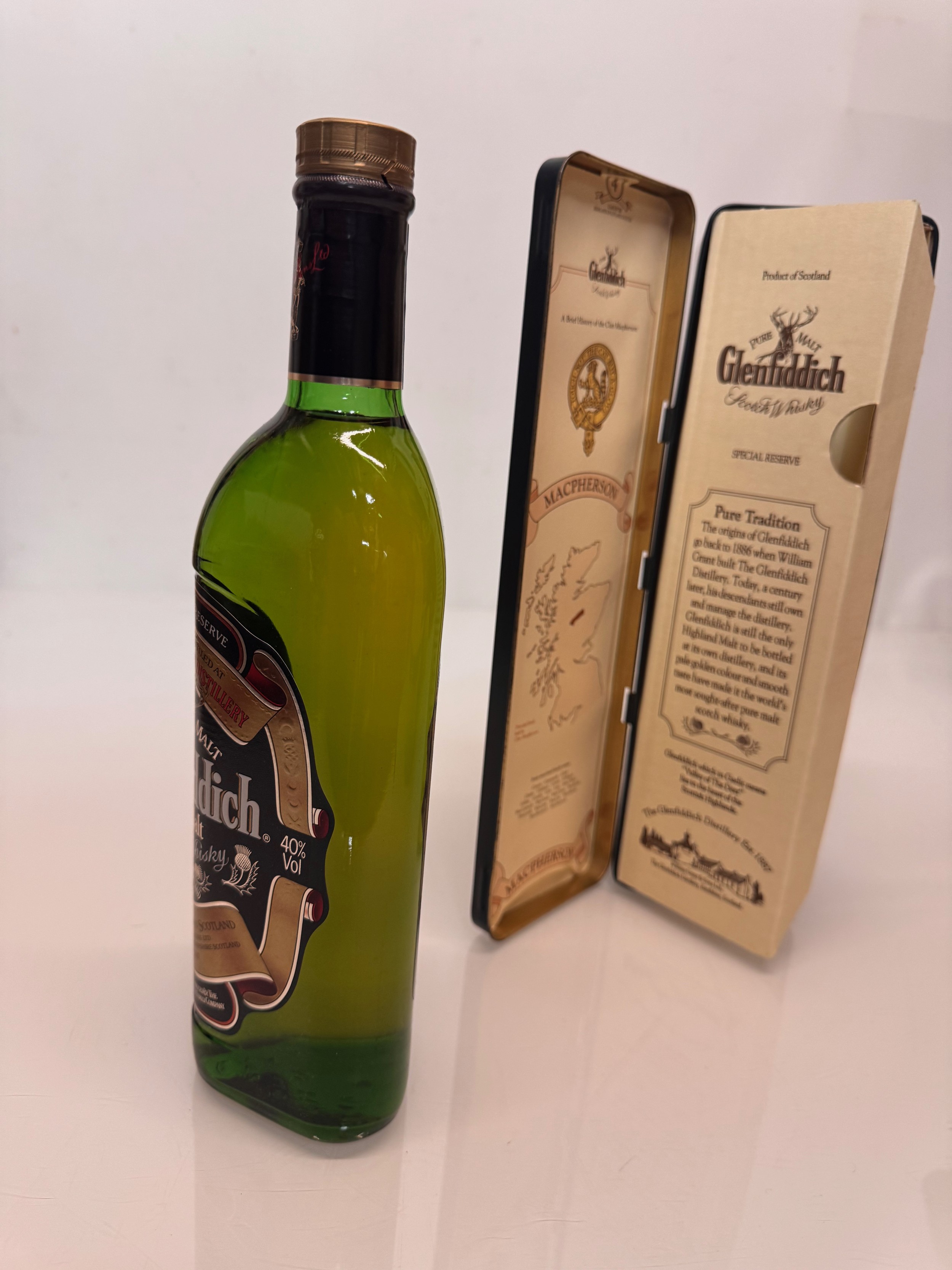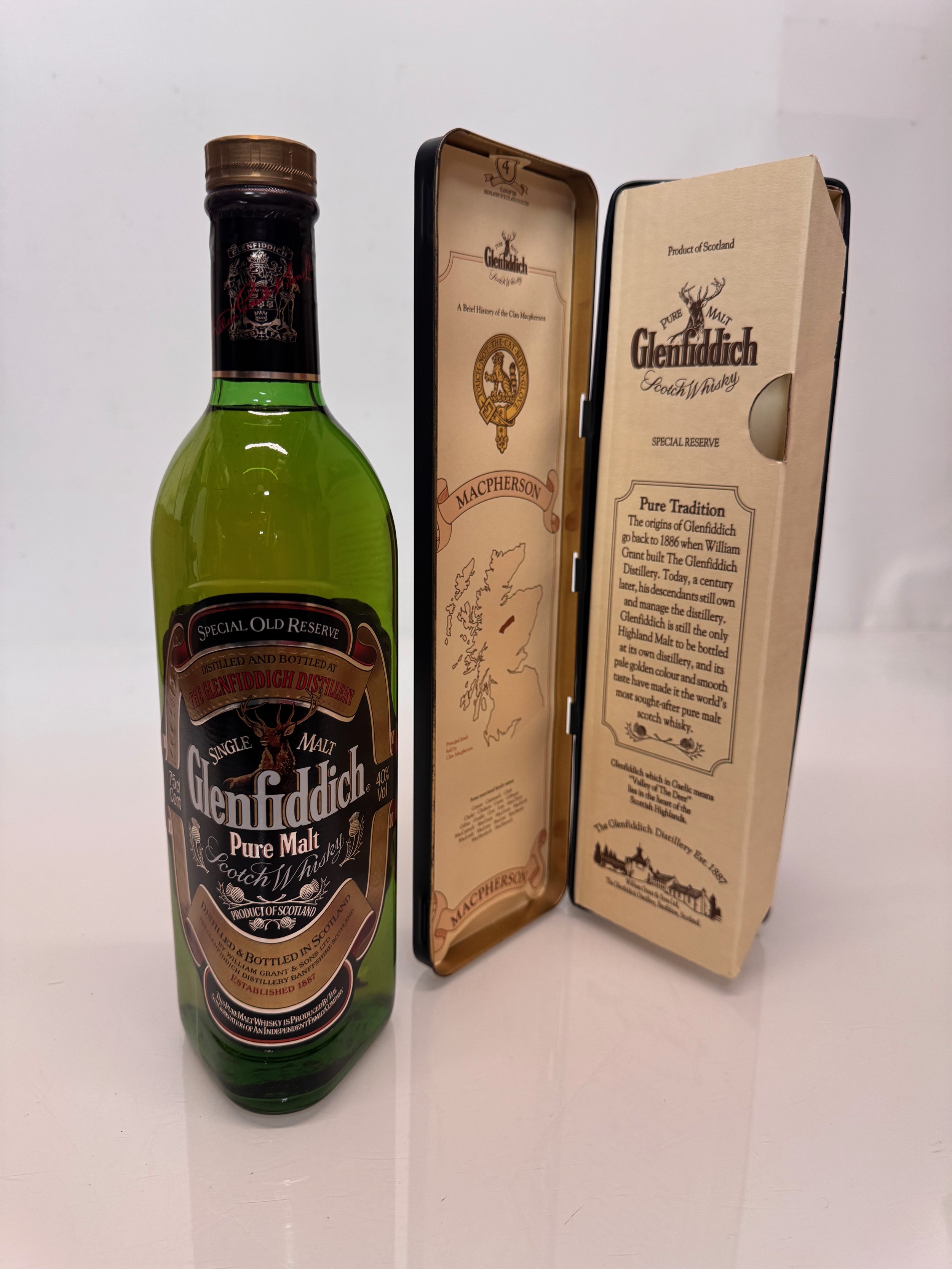 Wines and spirits, Whisky, a Clan Tin boxed 750 ml bottle Glenffidich Special Old Reserve Scotch Whisky.