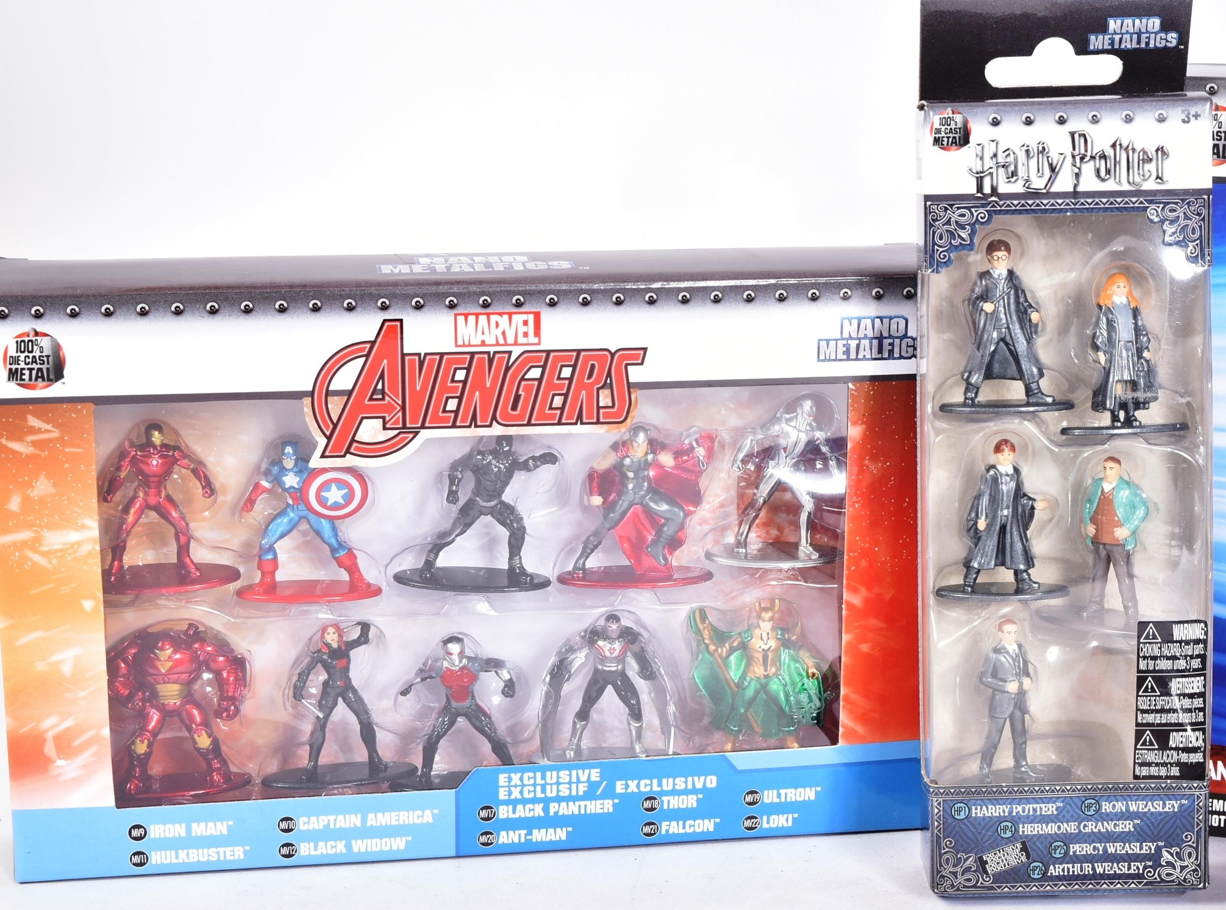 Nano Metalfigs - a collection of x8 assorted packs of Nano Metalfigs comprising; Marvel Spiderman, Guardians of the Galaxy, Harry Potter, The Avengers and DC Universe. Figures appearing mint and unused, within original packaging.