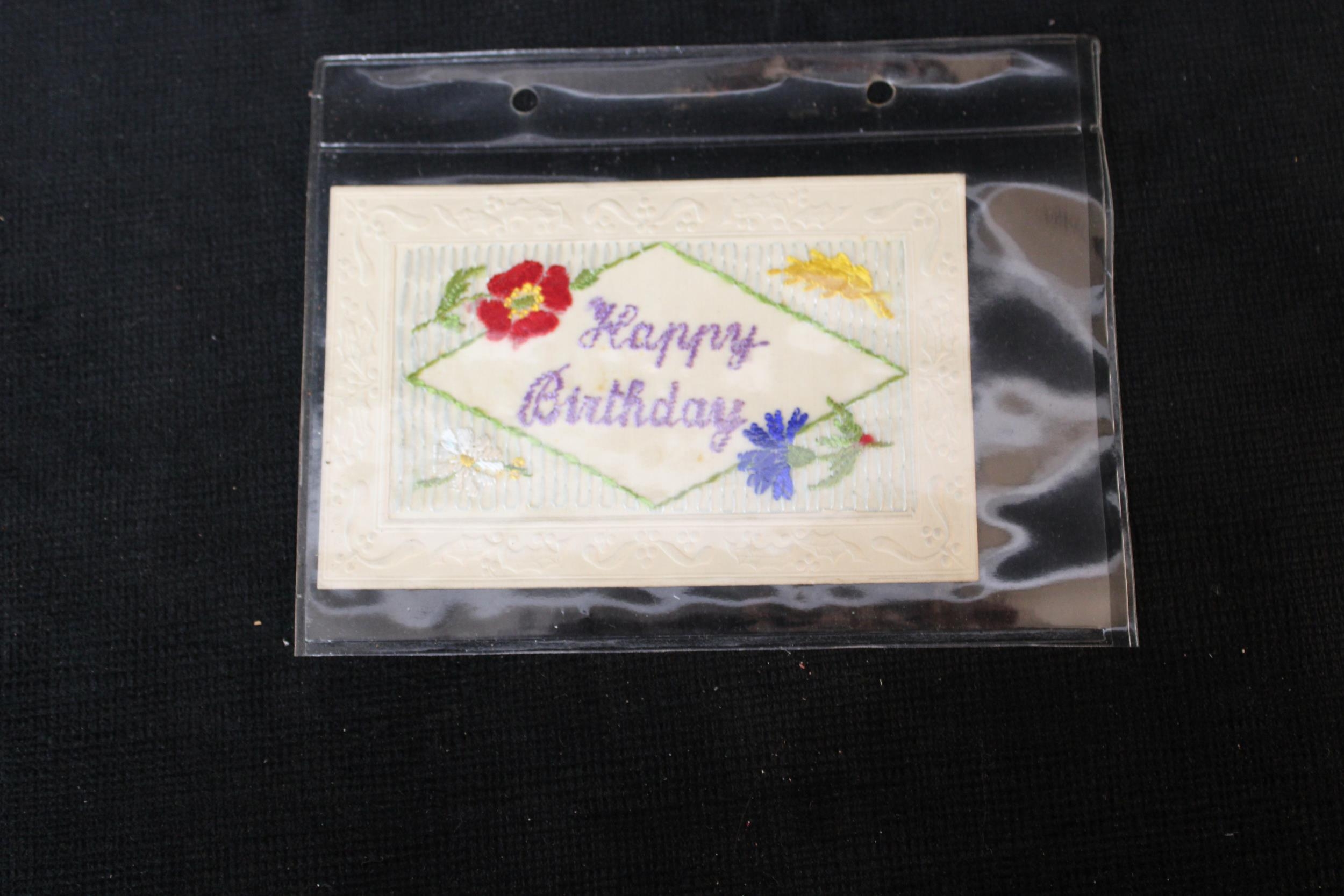 A First World War 'Happy Birthday' embroidered postcard