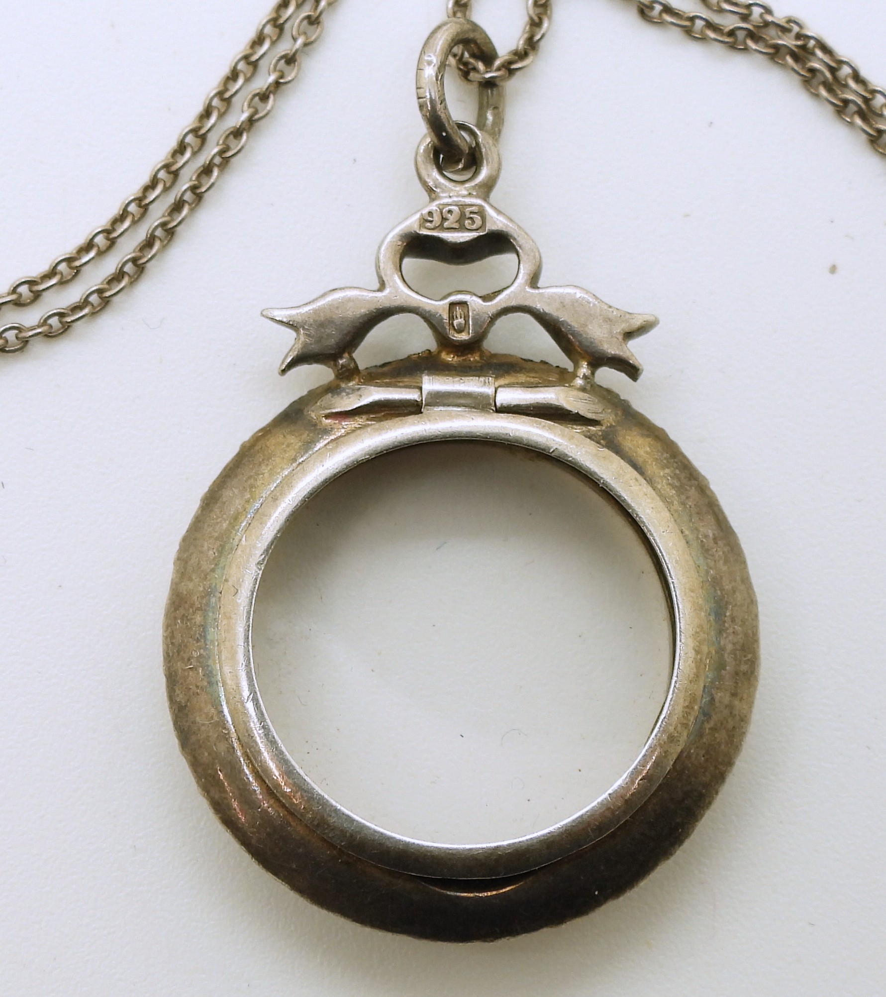 A French silver and yellow metal locket set with diamante, on a 50cm silver chain