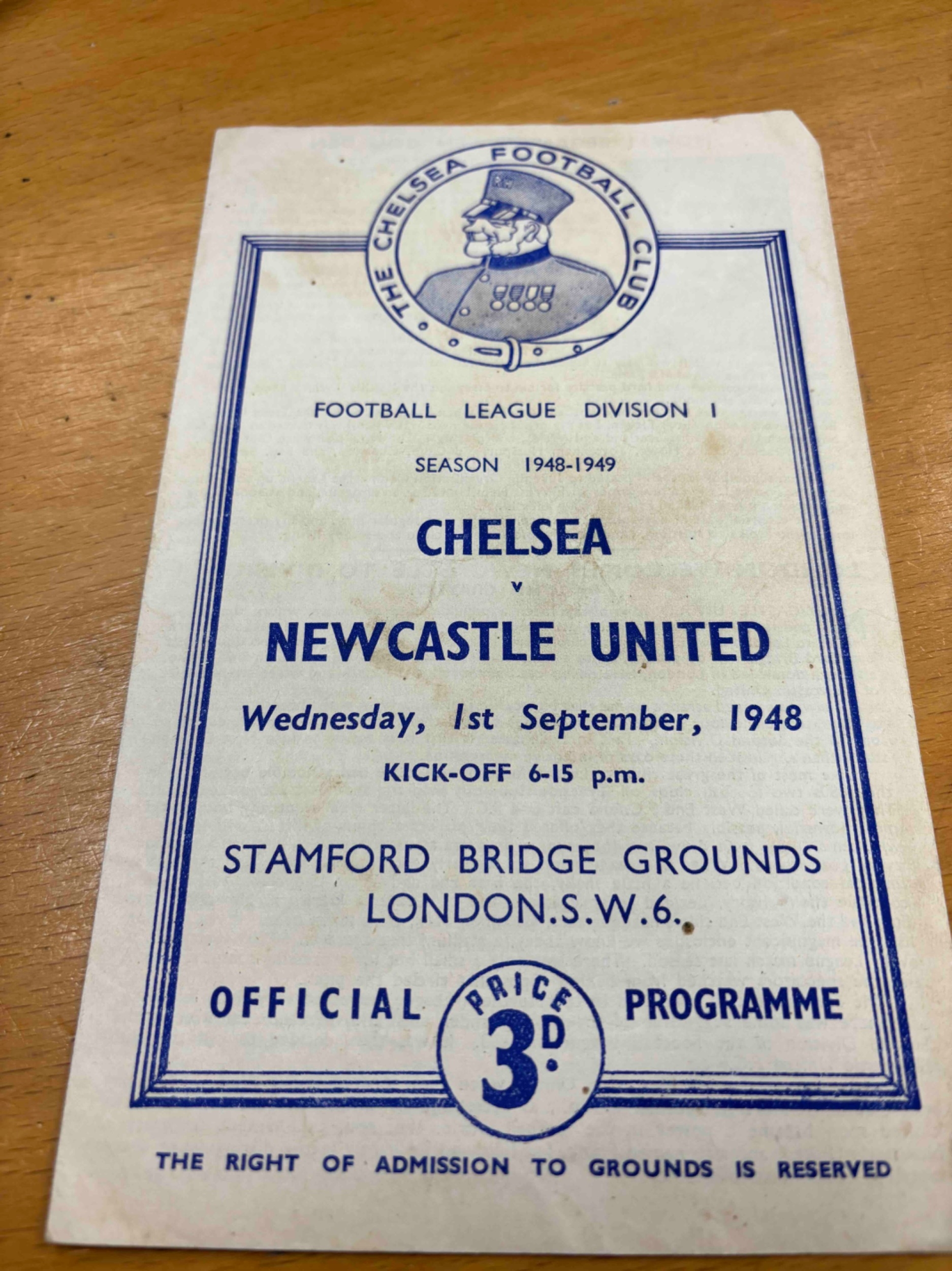1948/49 Chelsea v Newcastle United, TC, slightly marked front