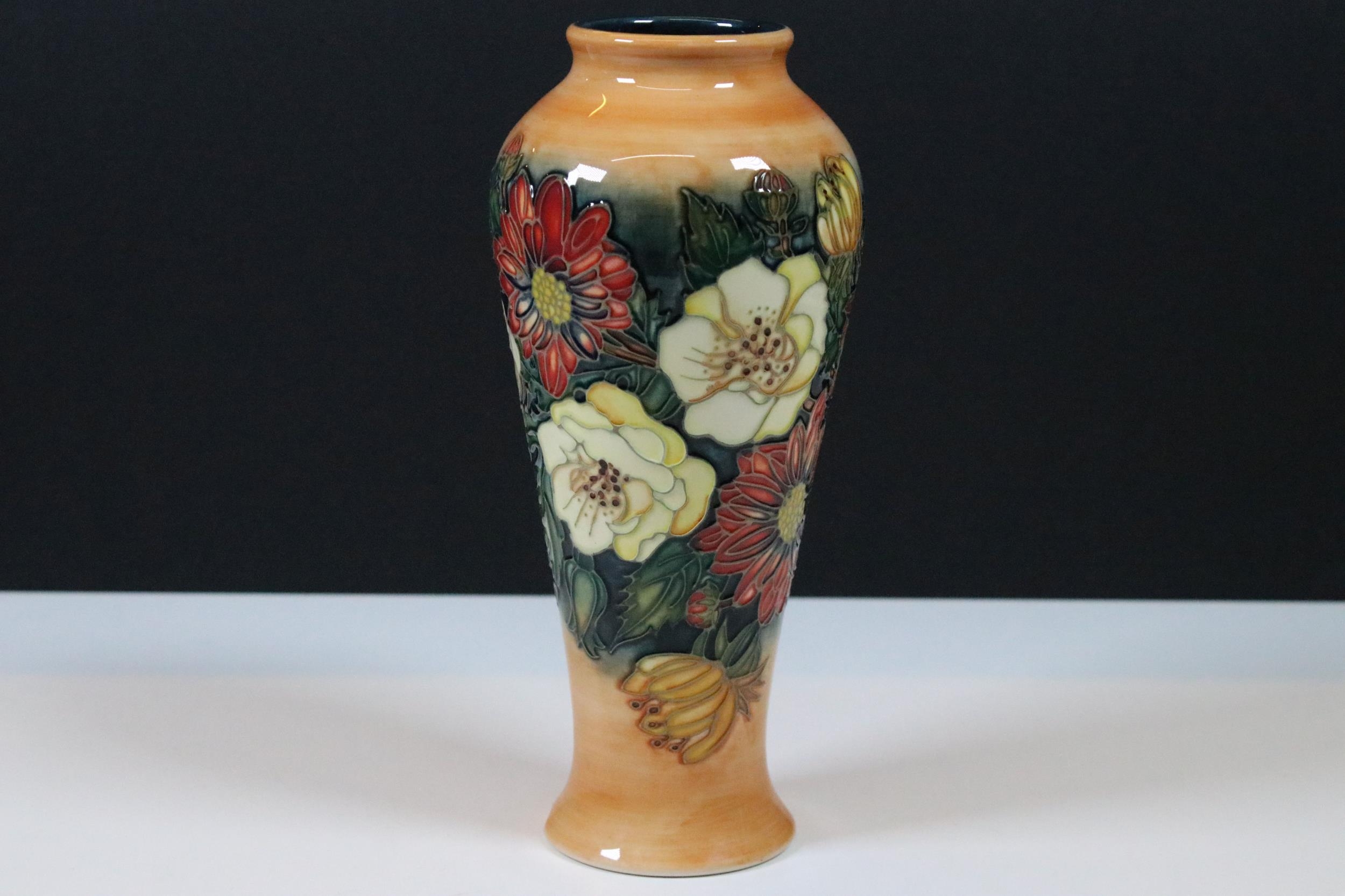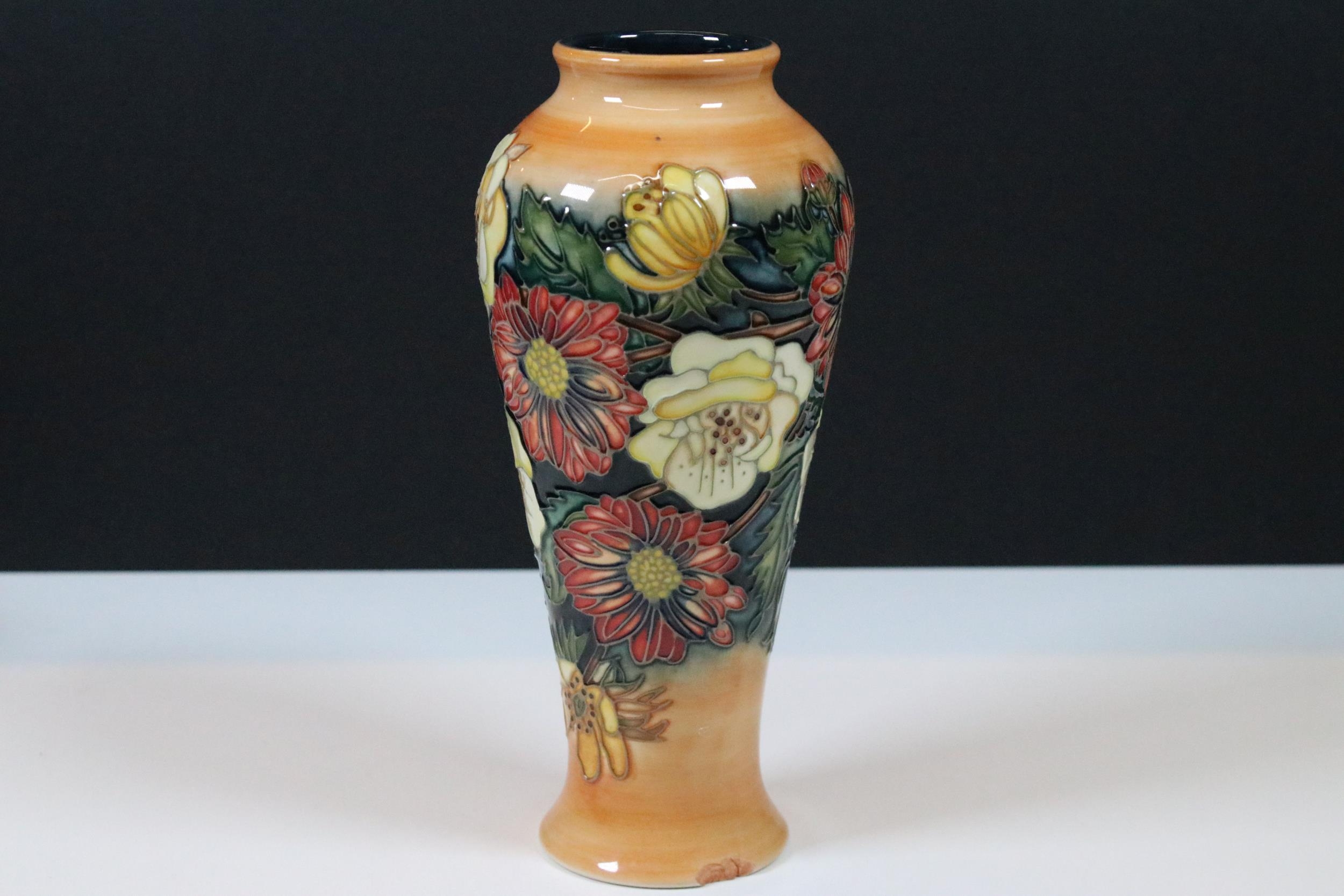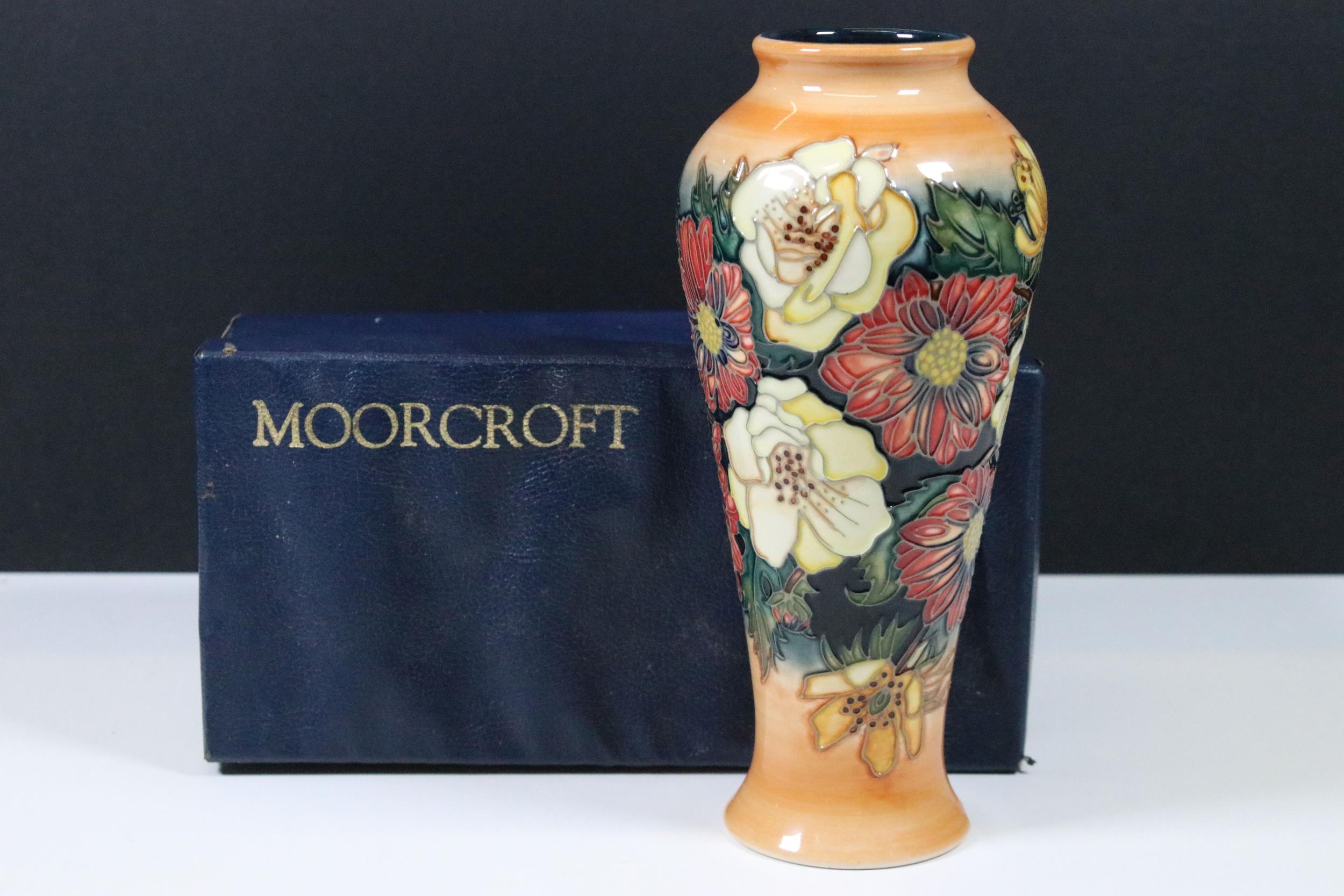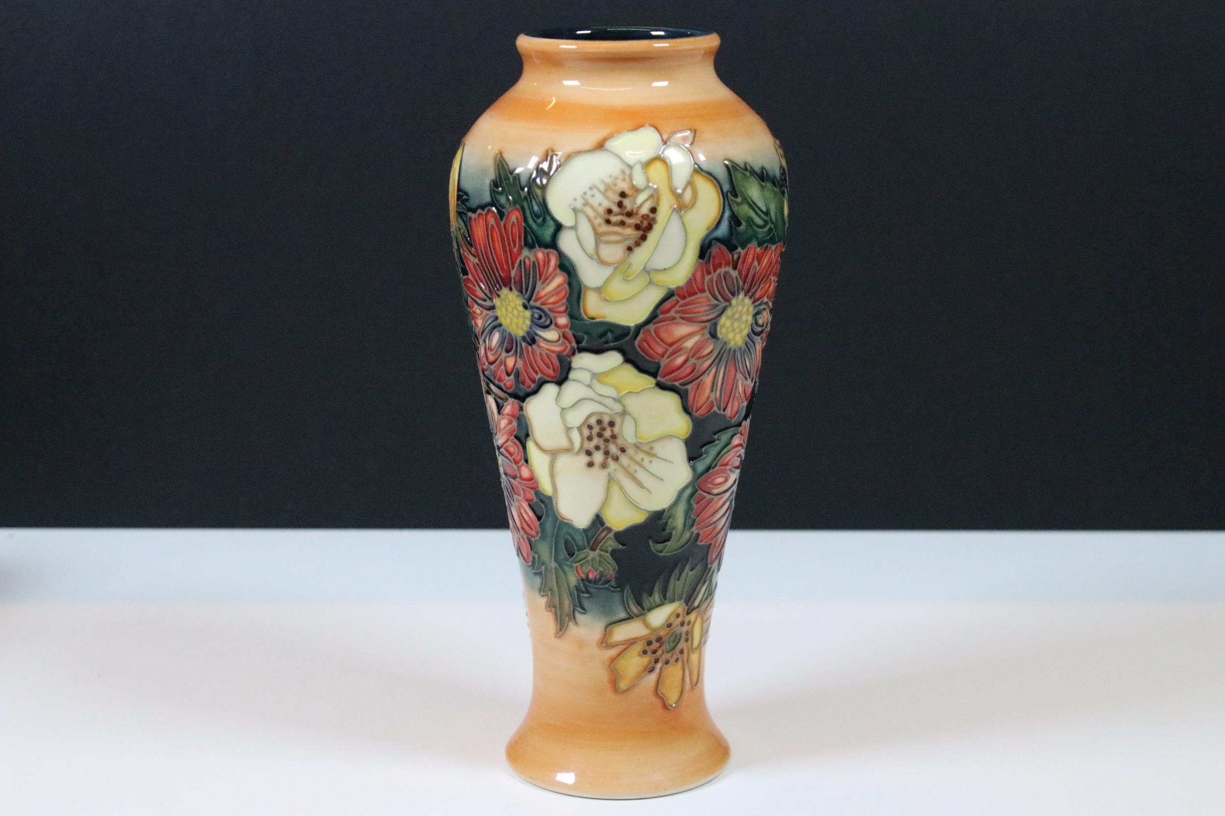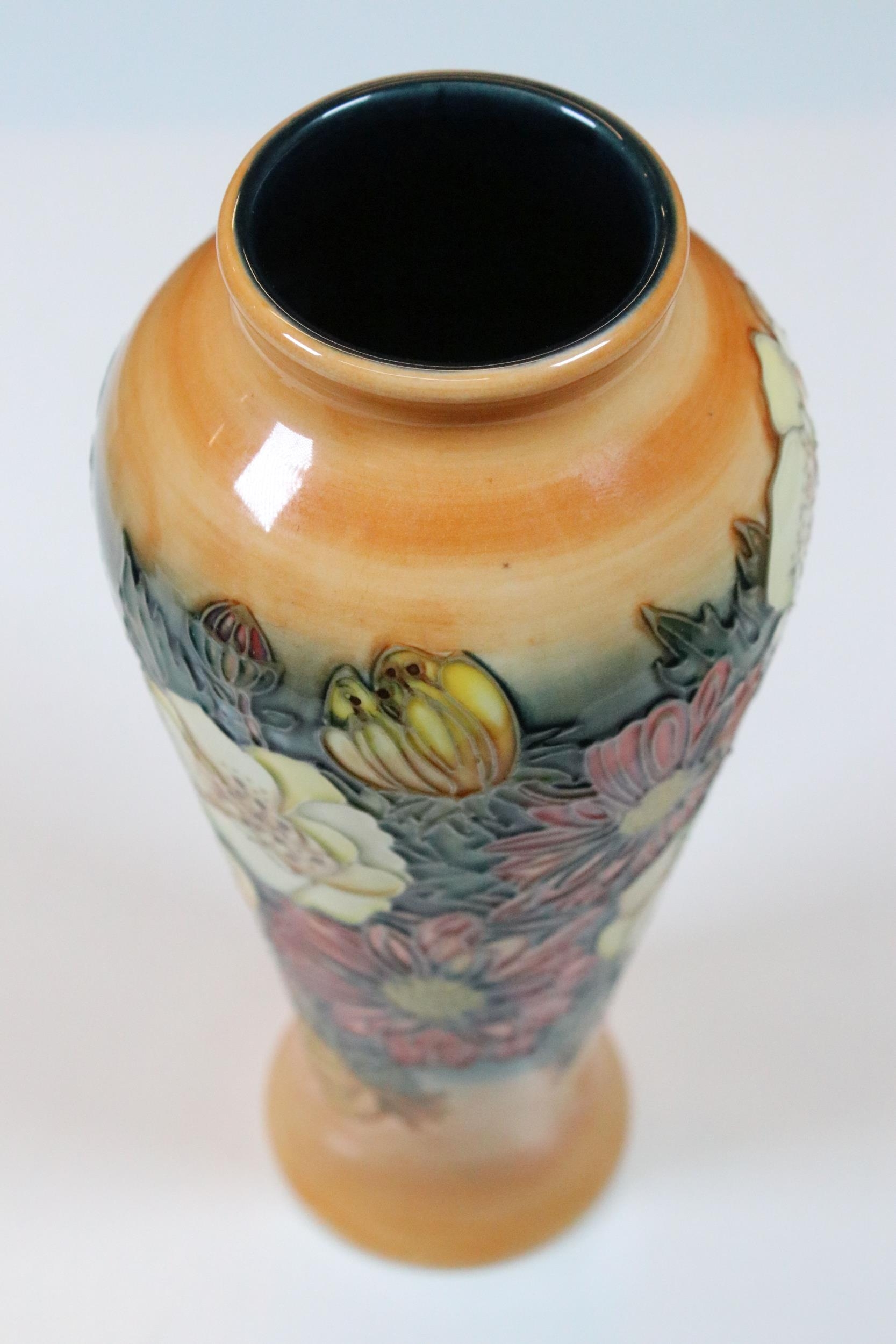Boxed Moorcroft pottery Victoriana baluster vase, by Emma Blossoms, signed to base
