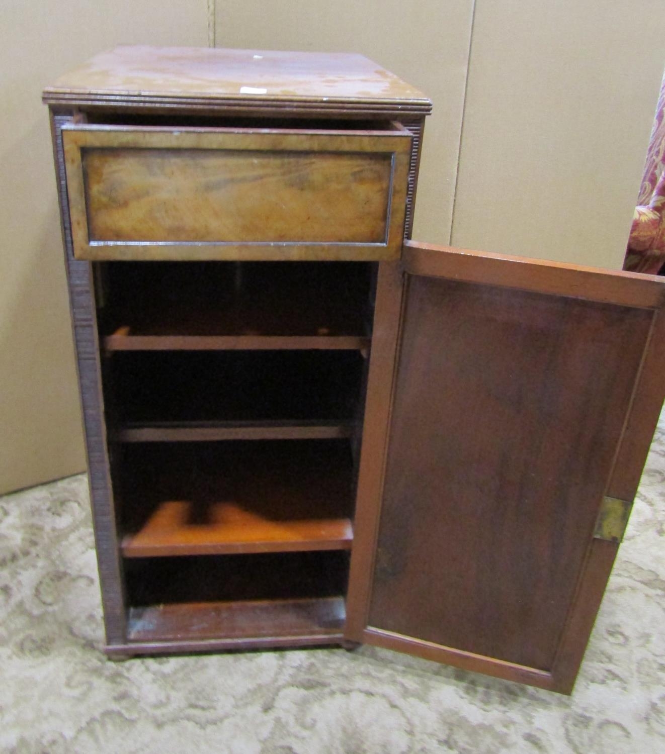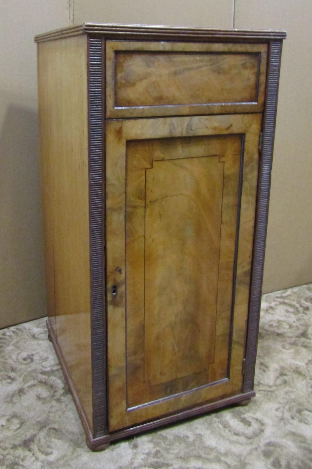 19th century mahogany pedestal enclosed by a panelled door and frieze drawer, 46cm wide