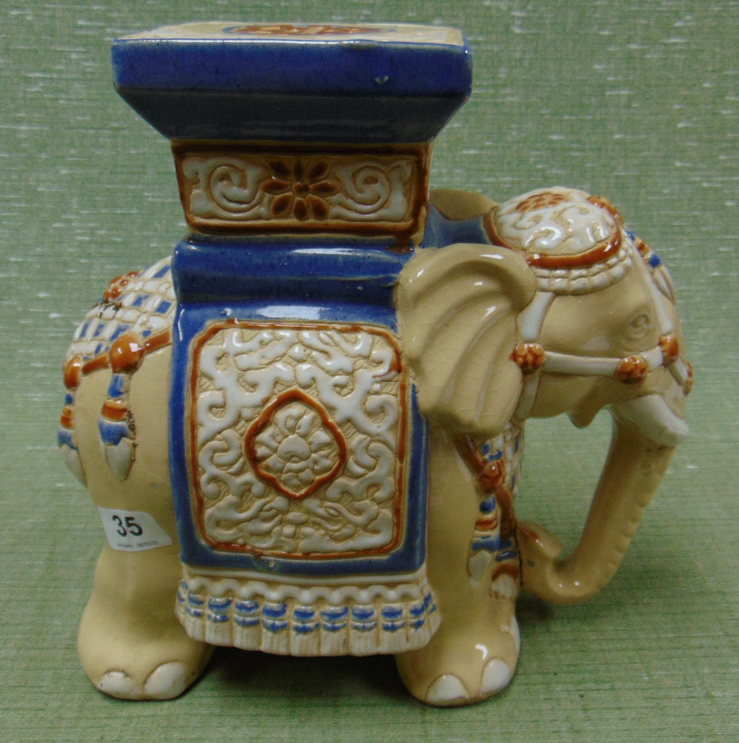 Small reproduction elephant form garden seat, 12" high.