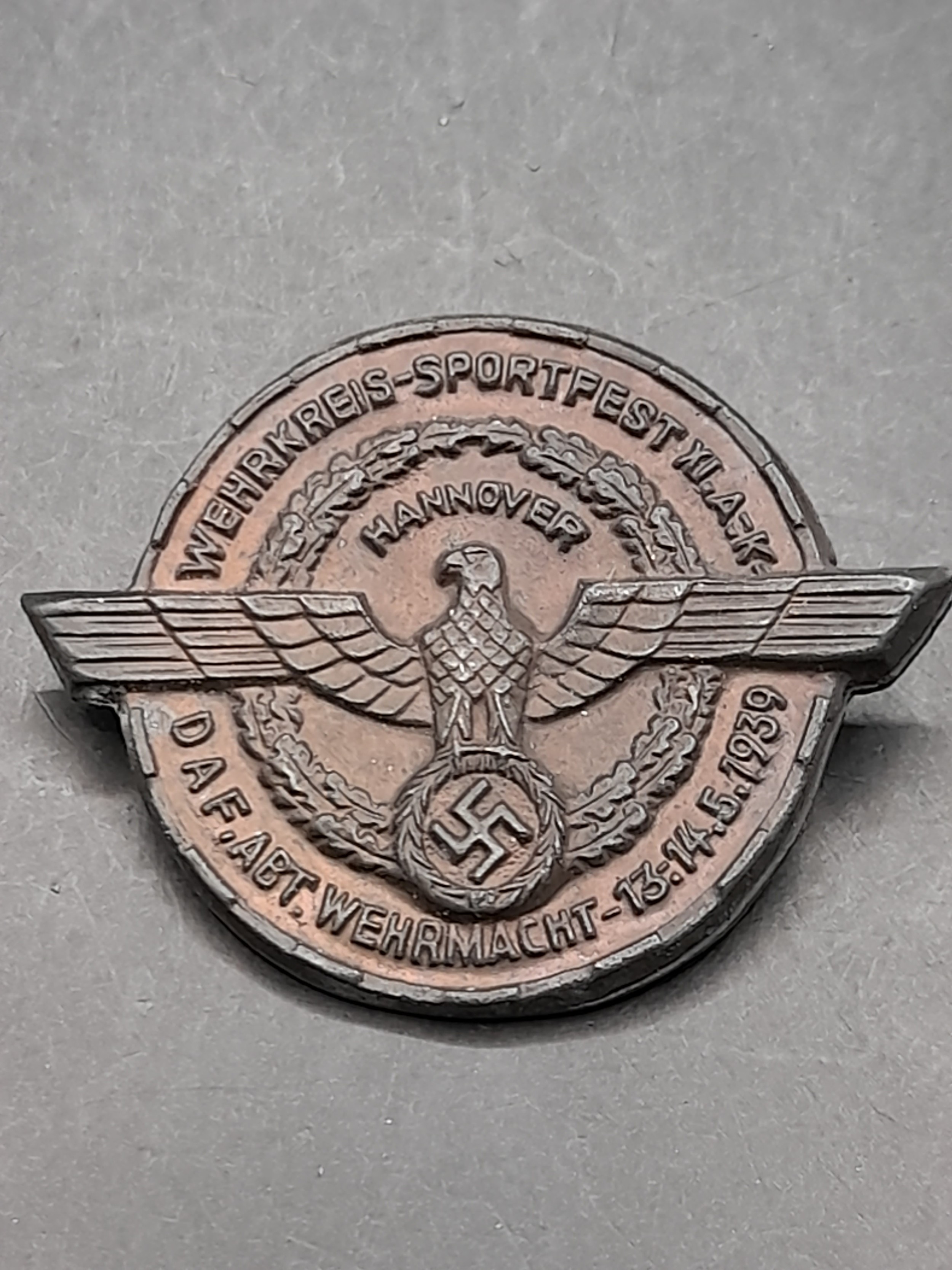 Metal sports badge for Hanover 13-14 may 1939
