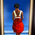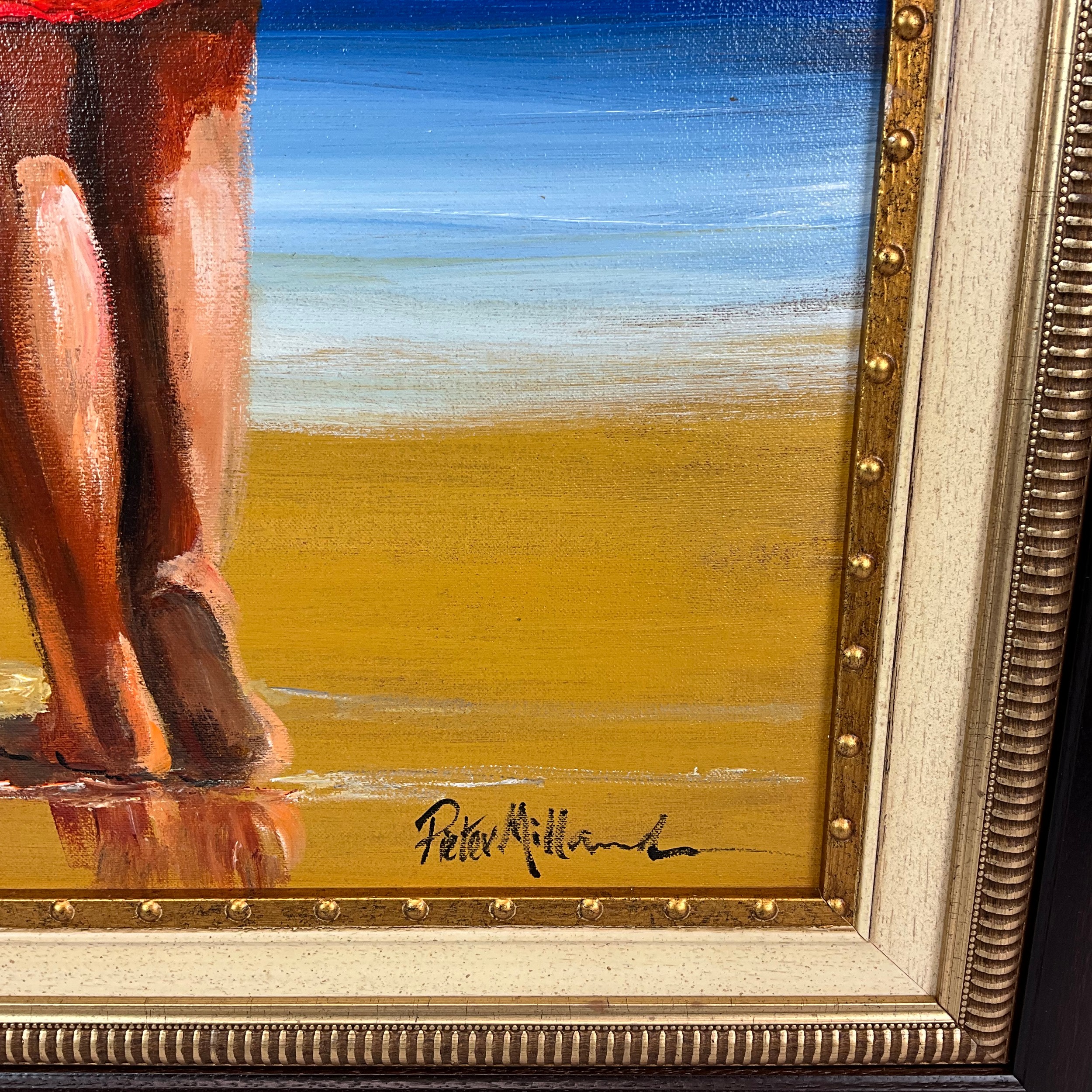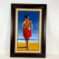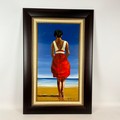 Pieter Millard, (1936-2017)Woman on the beach, oil on board. 91cm x 49cm