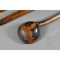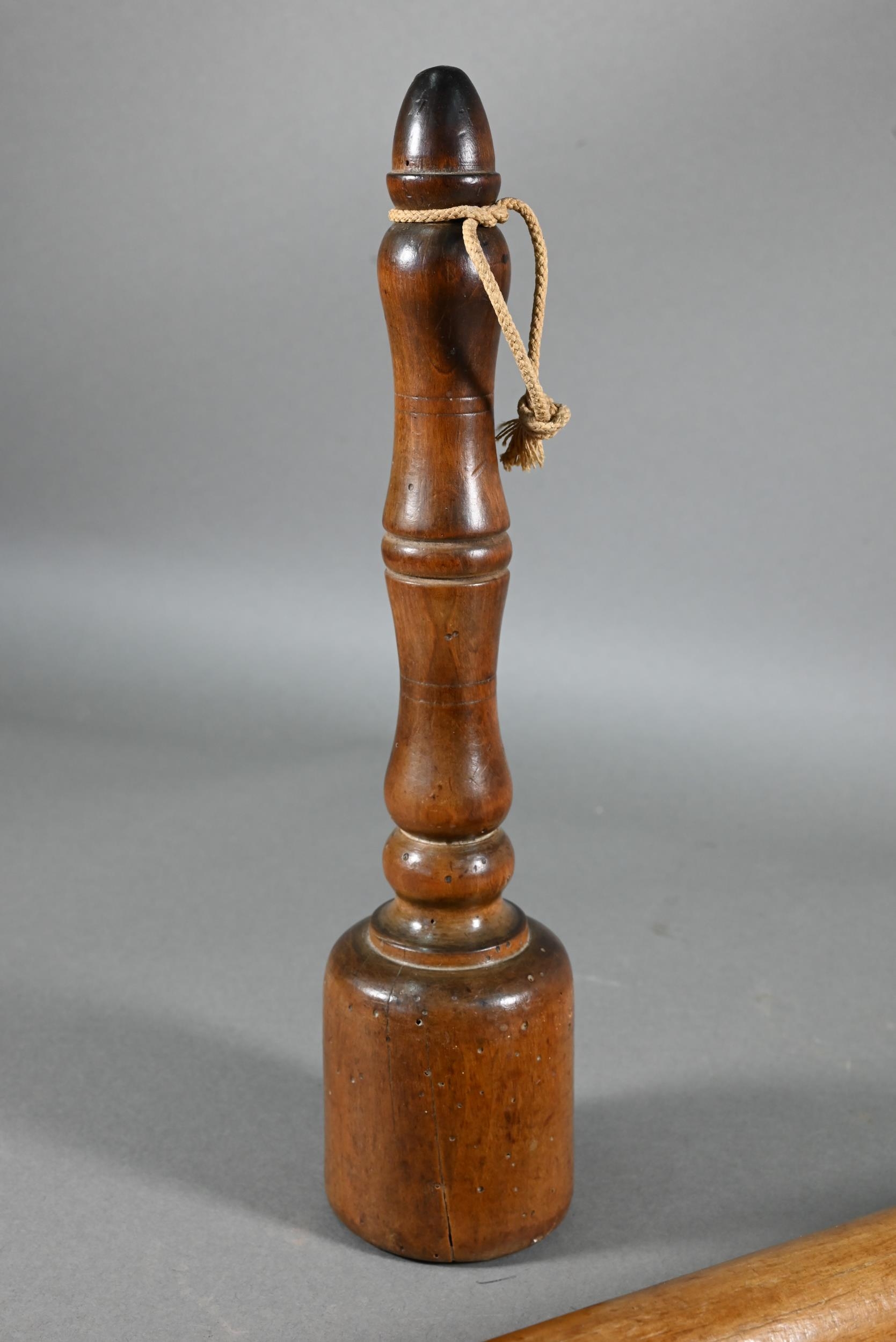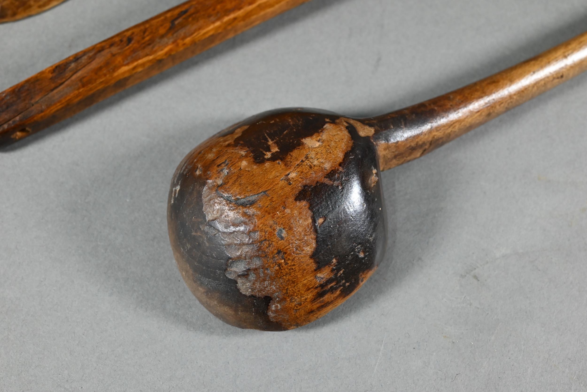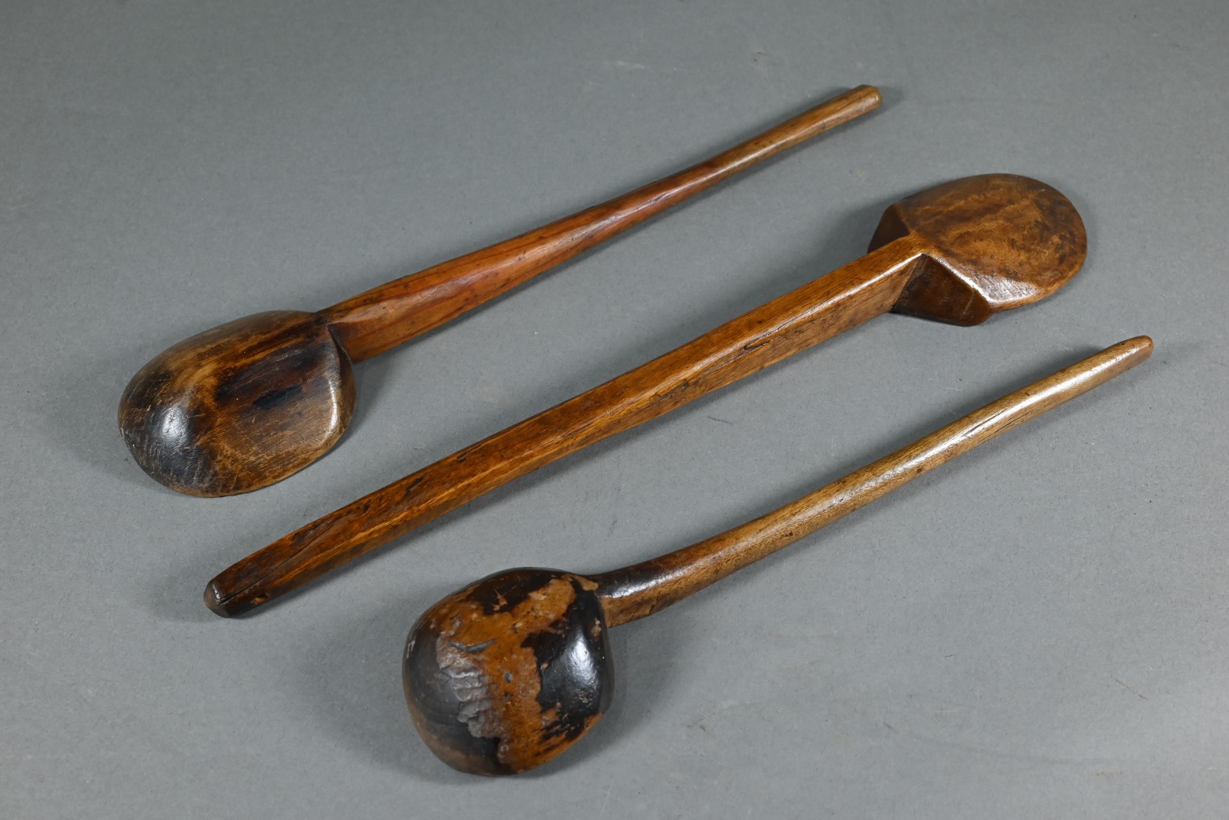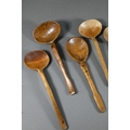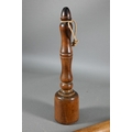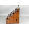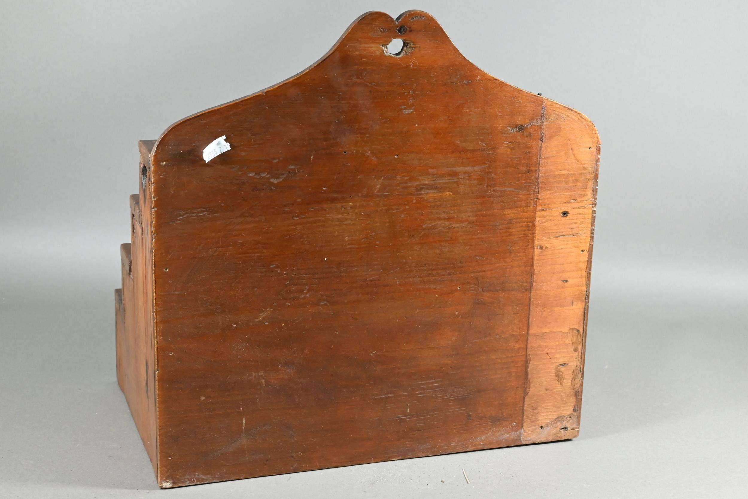 An antique Welsh stepped four tier spoon rack, with shaped top for hanging, 35.5 cm x 23.5 cm x 36 cm h to/w a collection of fourteen assorted carved and shaped spoons, a ladle, rolling pin, turned mallet