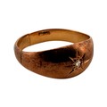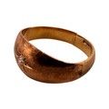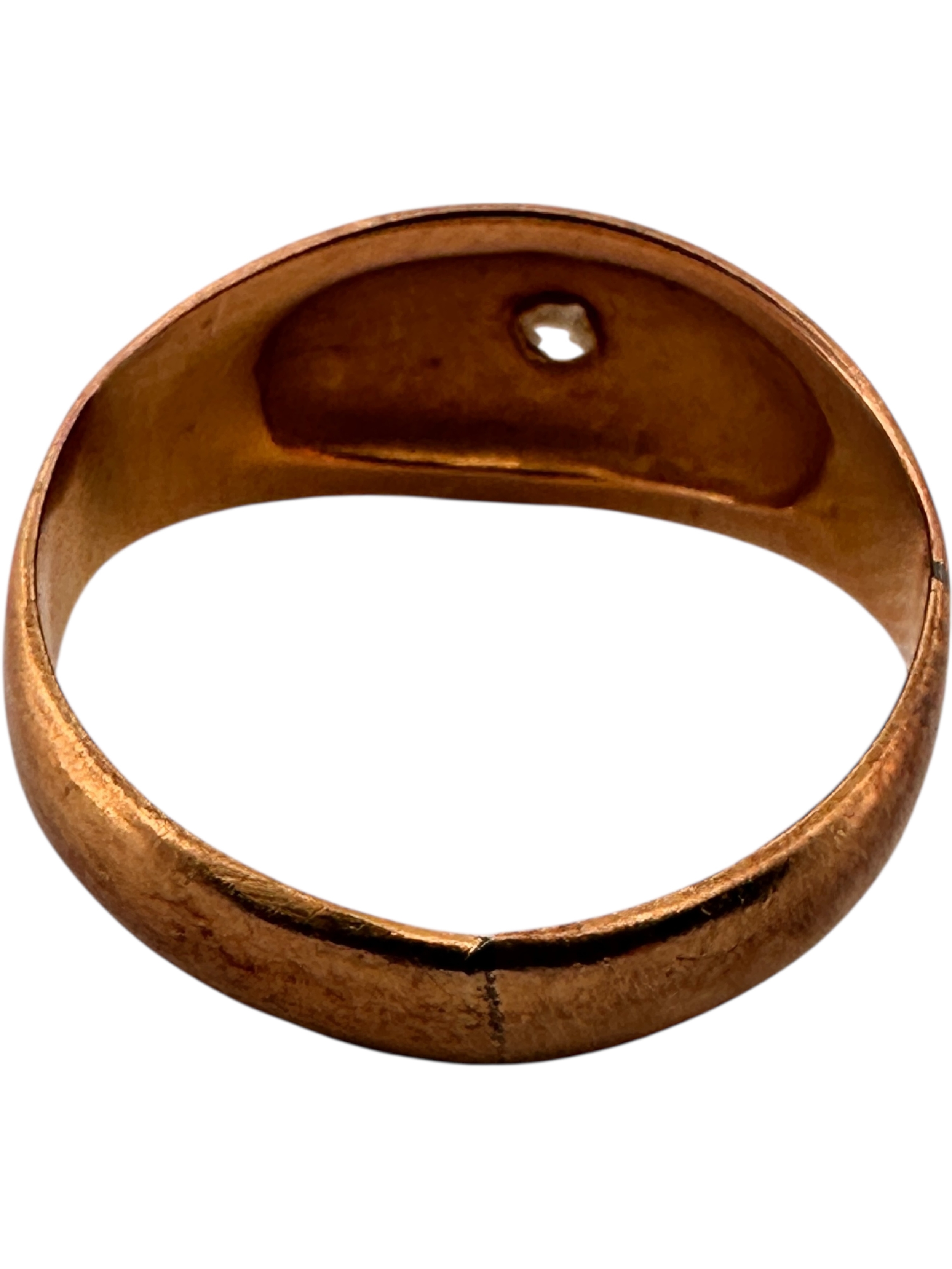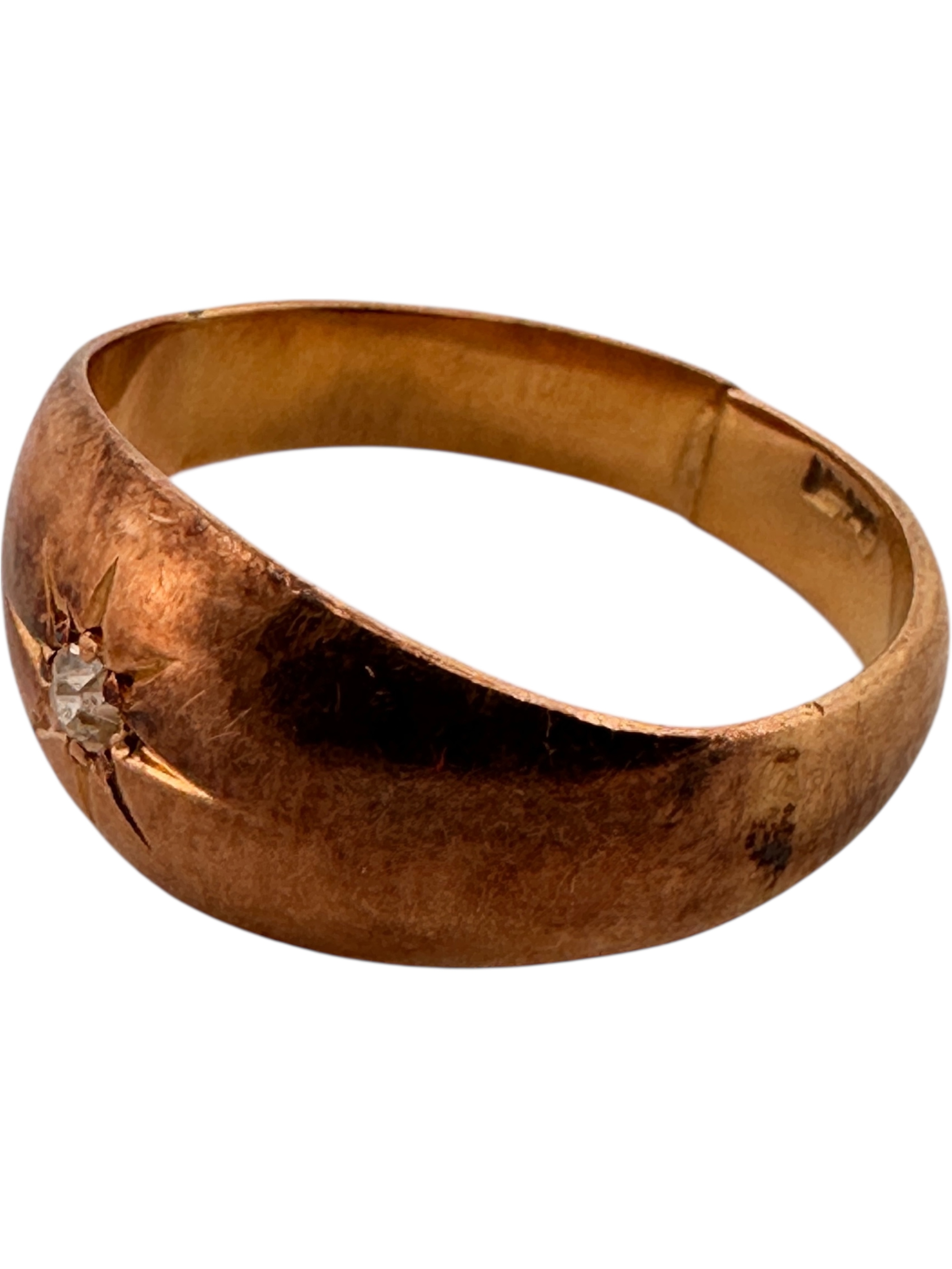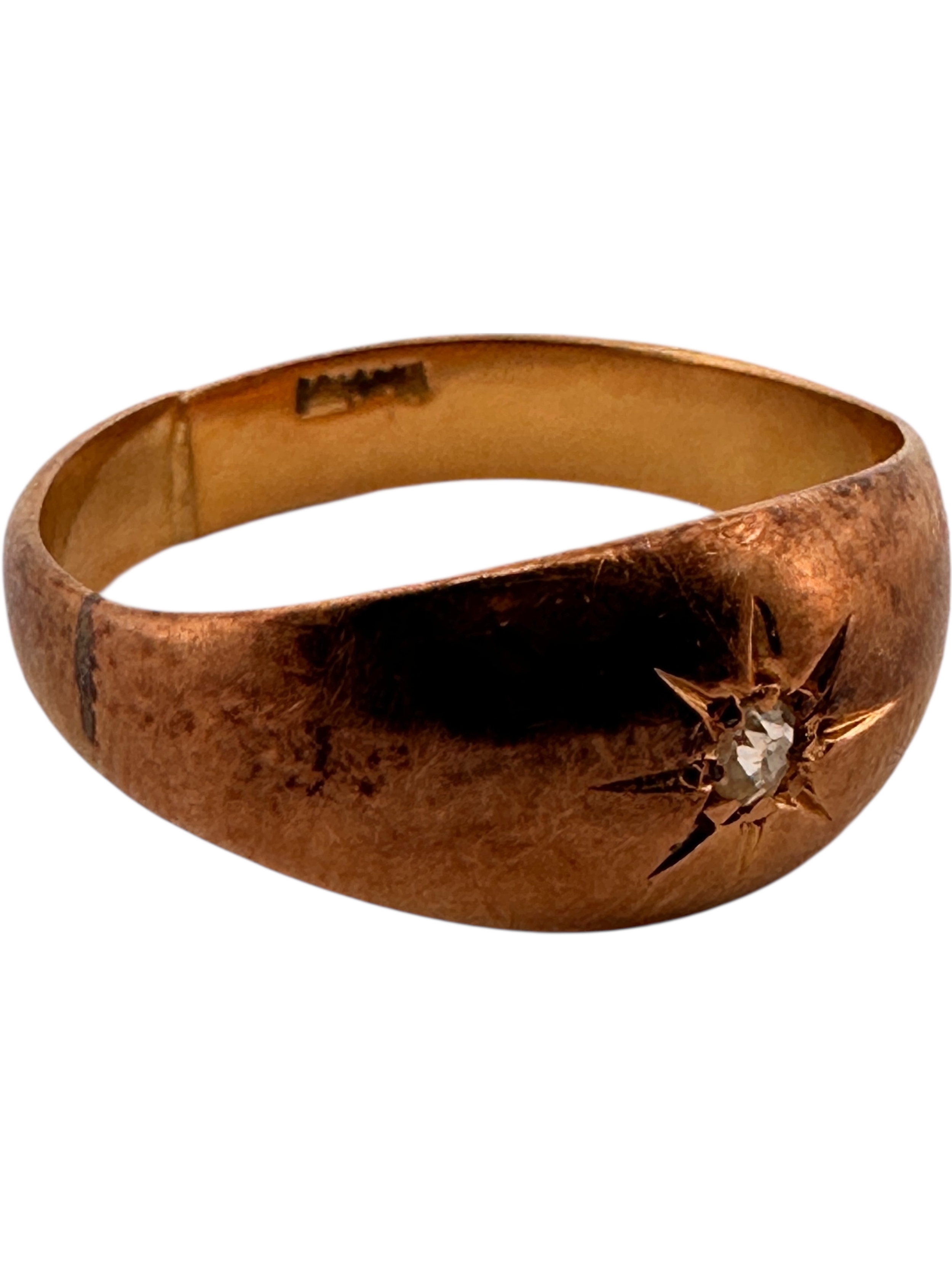 Yellow Metal Gypsy Ring with Small Old Cut Diamond. Size J. 2.68g