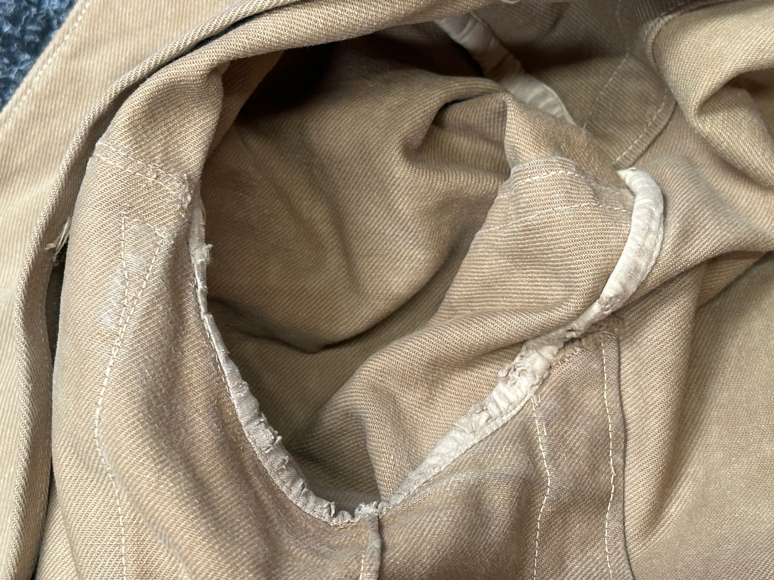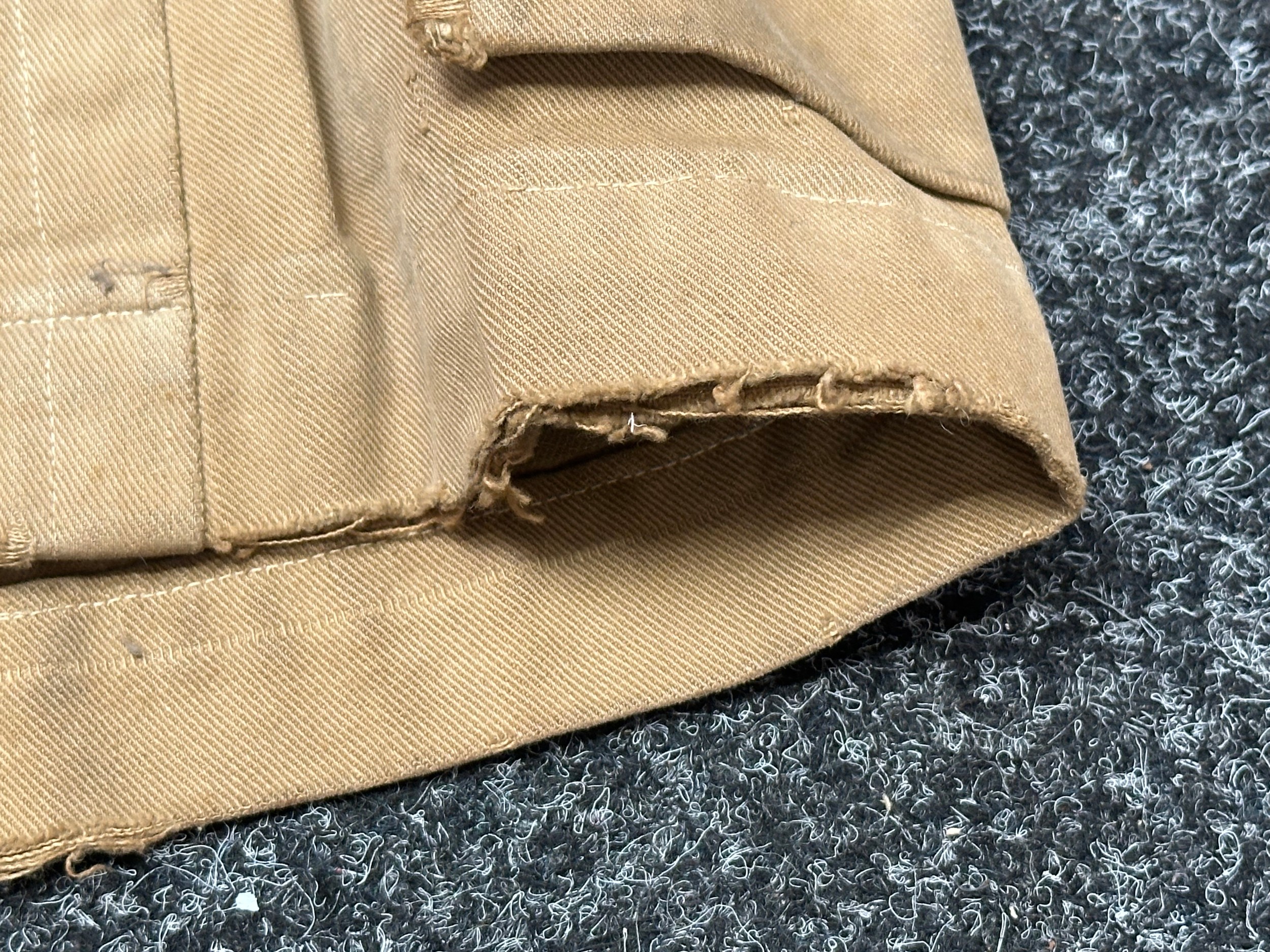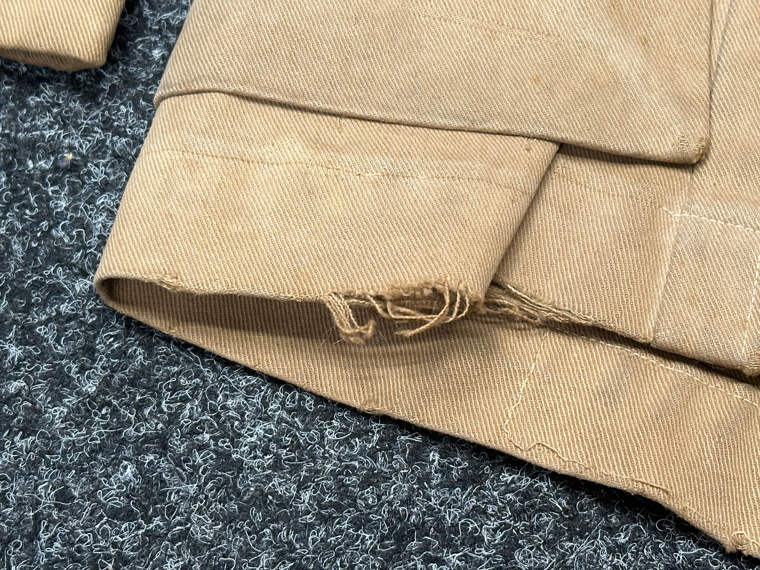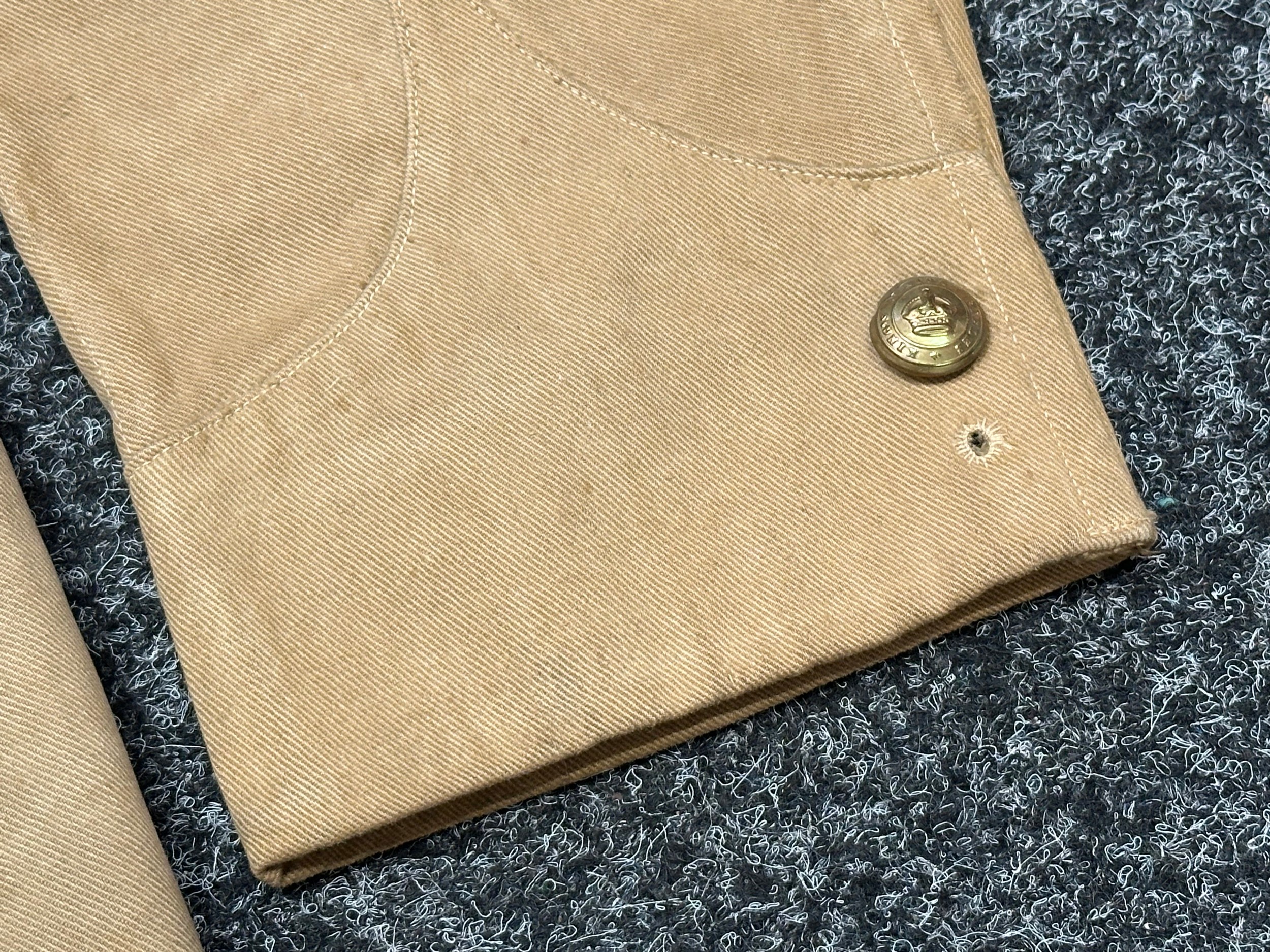 WW1 British Khaki Drill Tunic Sgt Kings African Rifles complete with original buttons, brass shoulder titles and Sgt's rank insignia to sleeve. Small size approx. 32 inch chest.