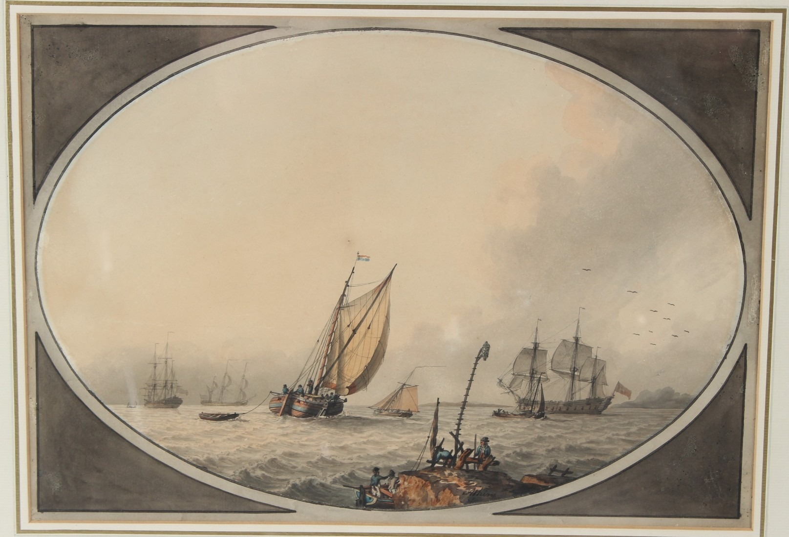 SAMUEL ATKINS (c.1787-1808) Maritime scene watercolour signed 24 x 34cm