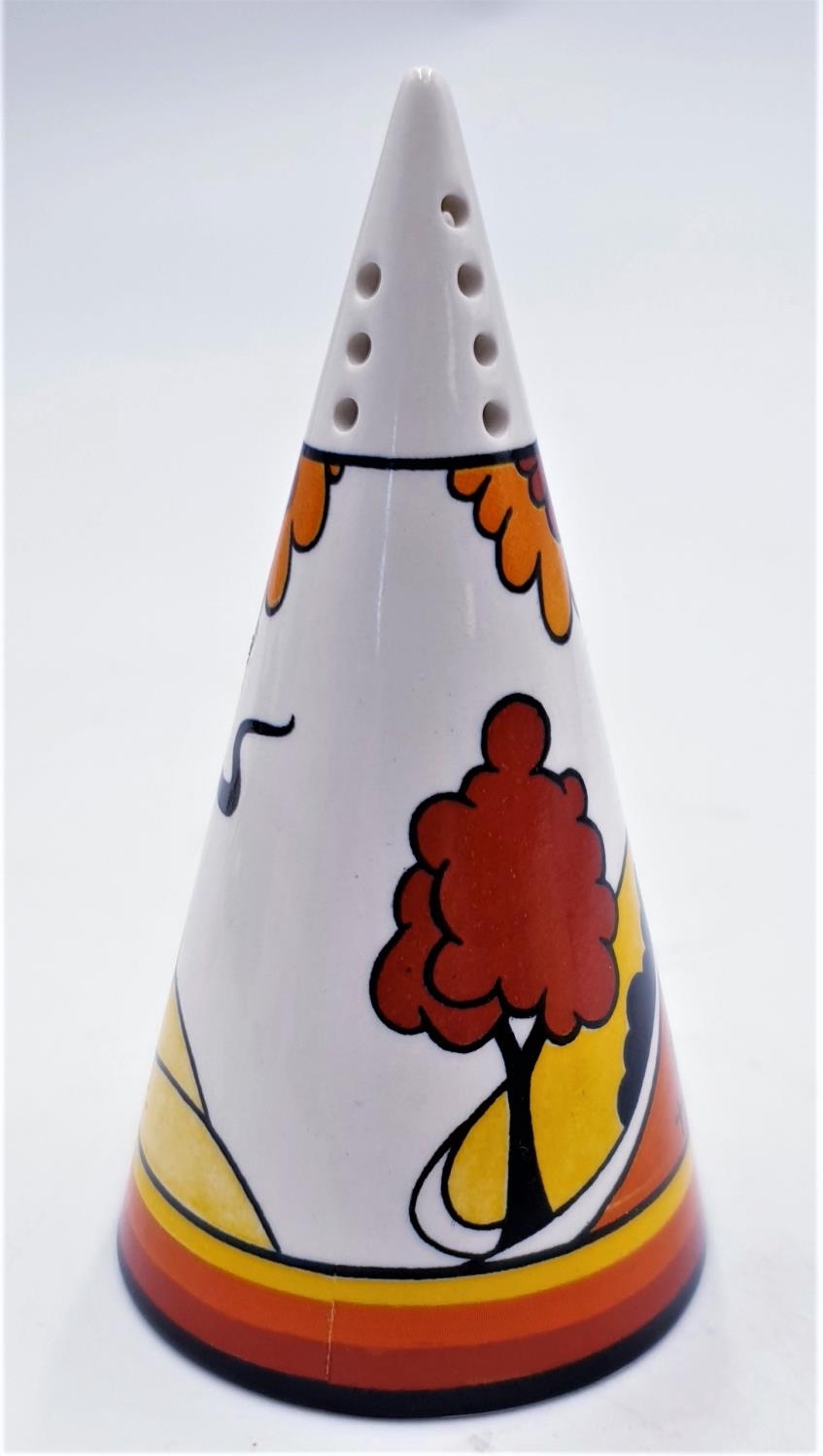 CHINA Small 10.5cm CONICAL SUGAR SHAKER "FANTASQUE" FROM THE CLARICE CLIFF COLLECTION (Commissioned By Bradex)