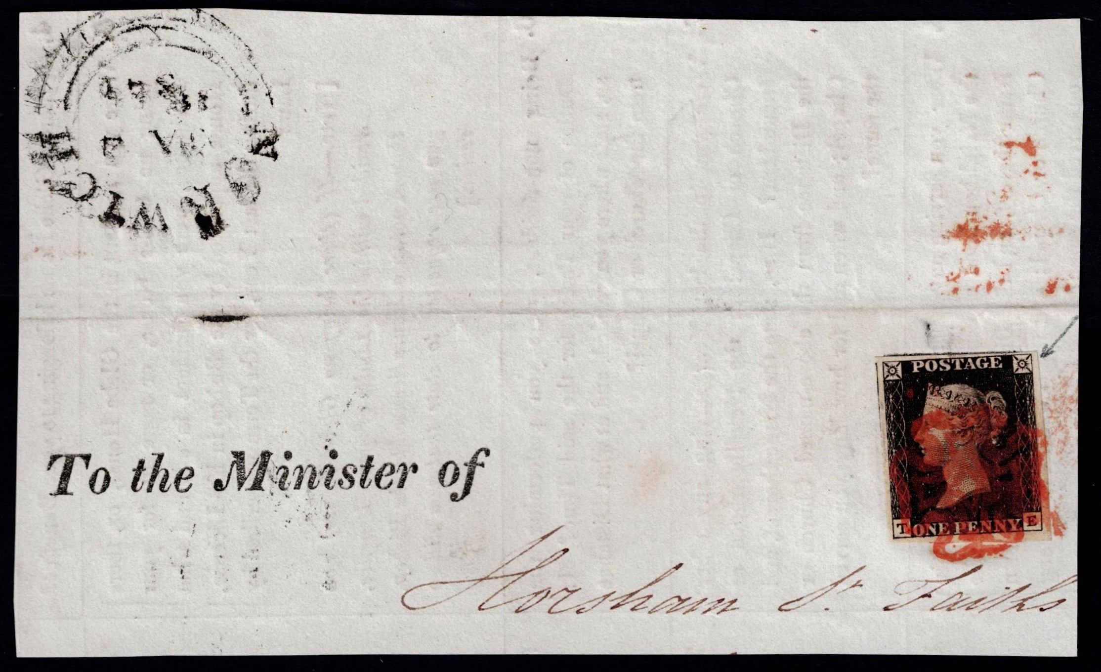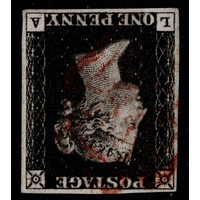 GB 1840 1d black plate 8 TE STATE ONE vfu four good to large margins on Norwich piece sg2 Cat. £475