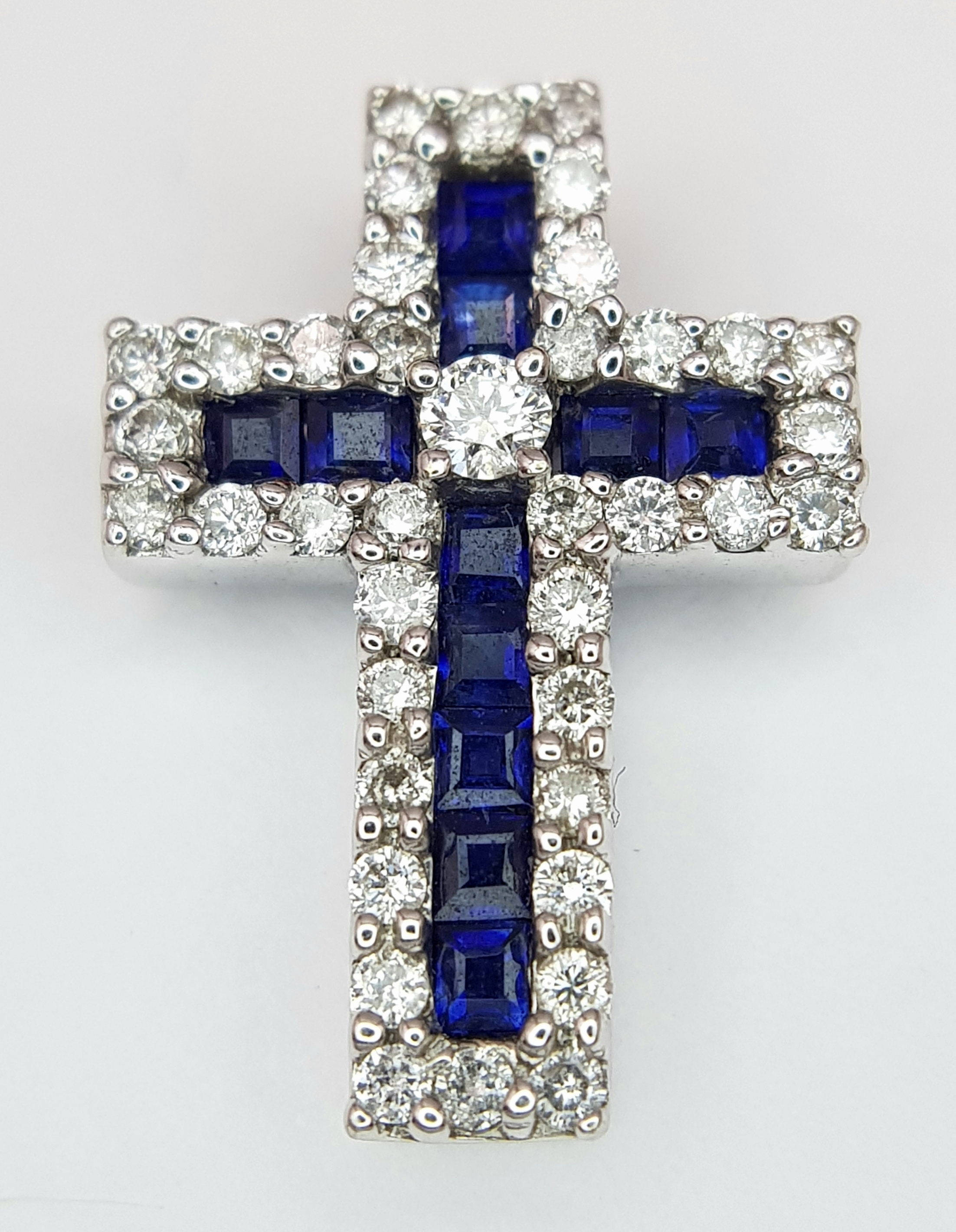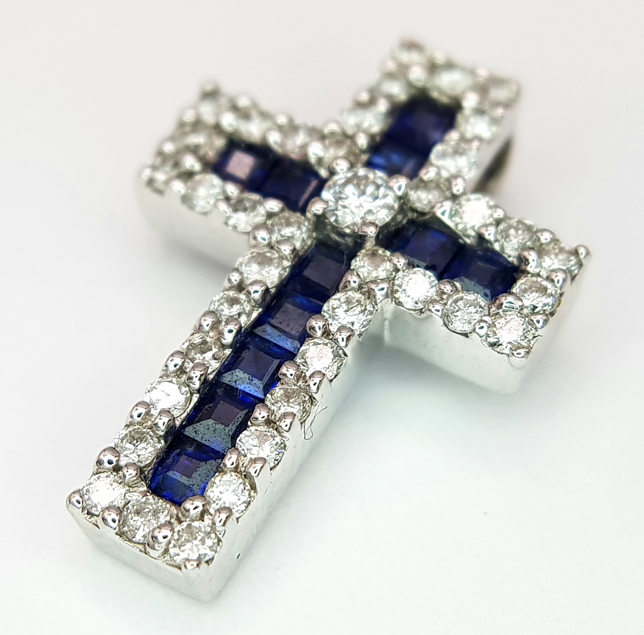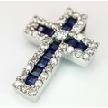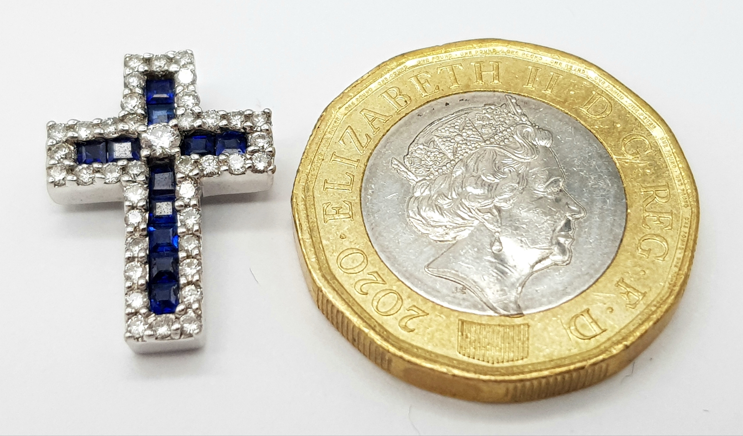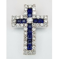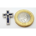 AN 18K WHITE GOLD DIAMOND & SAPPHIRE SET CROSS PENDANT. APPROX 18MM X 13MM. 2.6G TOTAL WEIGHT. REF: JP 3001
