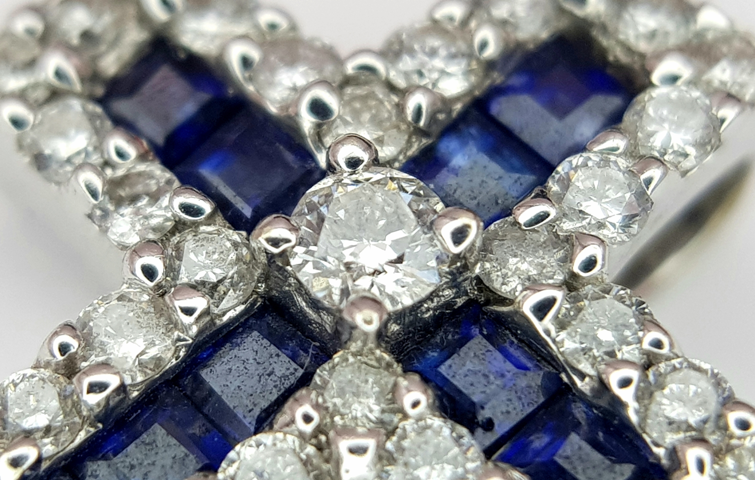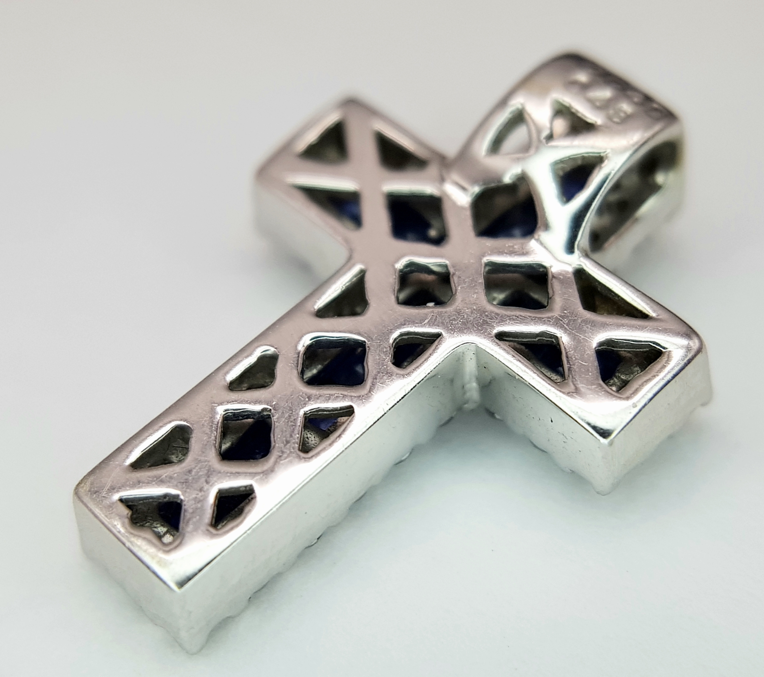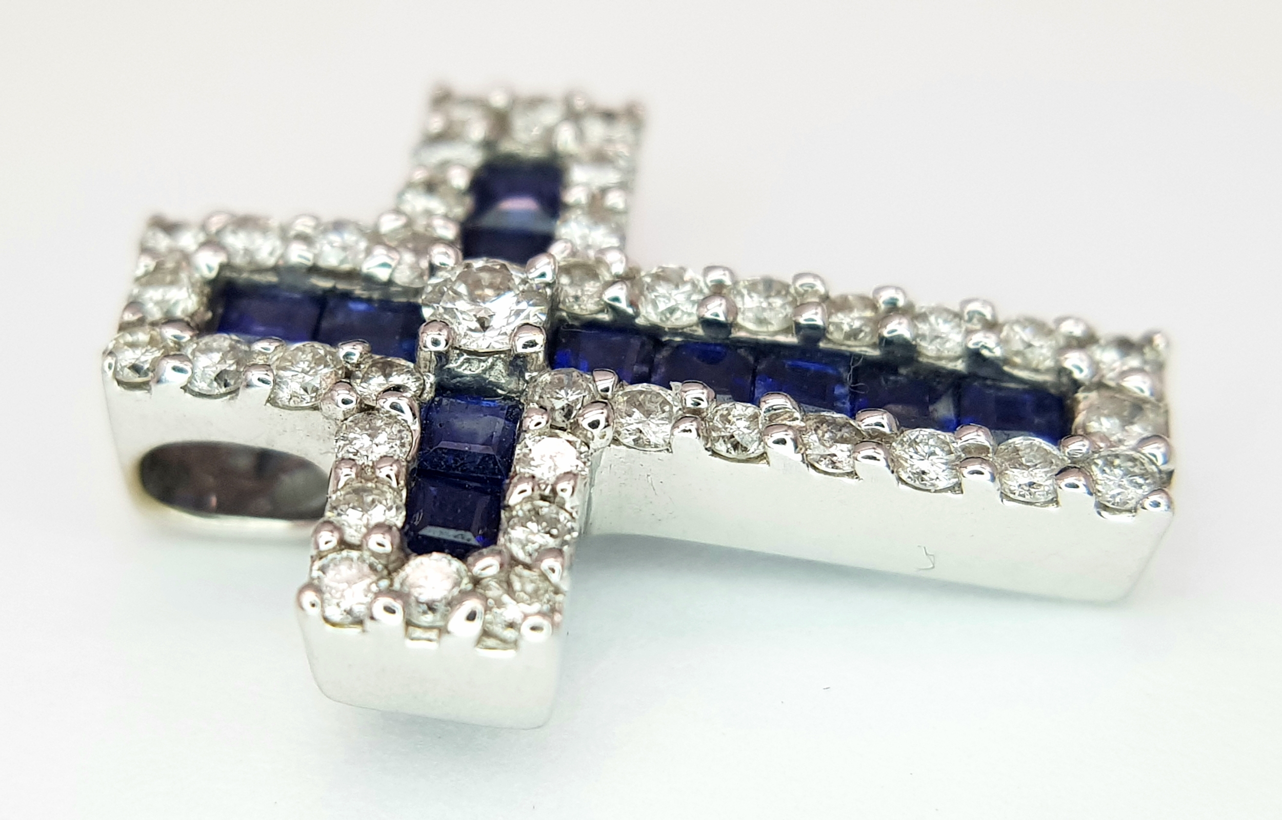 AN 18K WHITE GOLD DIAMOND & SAPPHIRE SET CROSS PENDANT. APPROX 18MM X 13MM. 2.6G TOTAL WEIGHT. REF: JP 3001