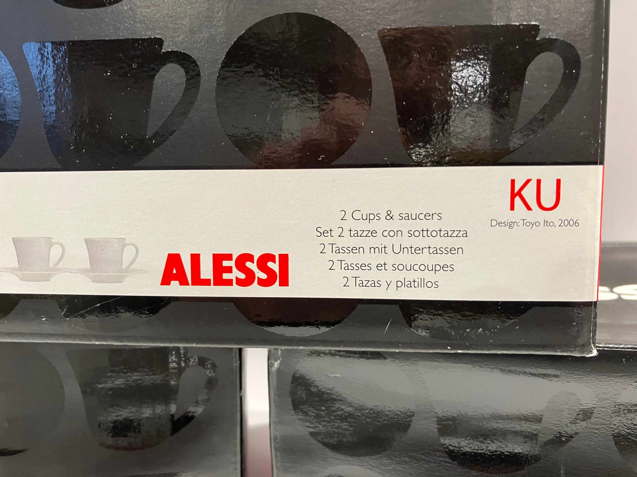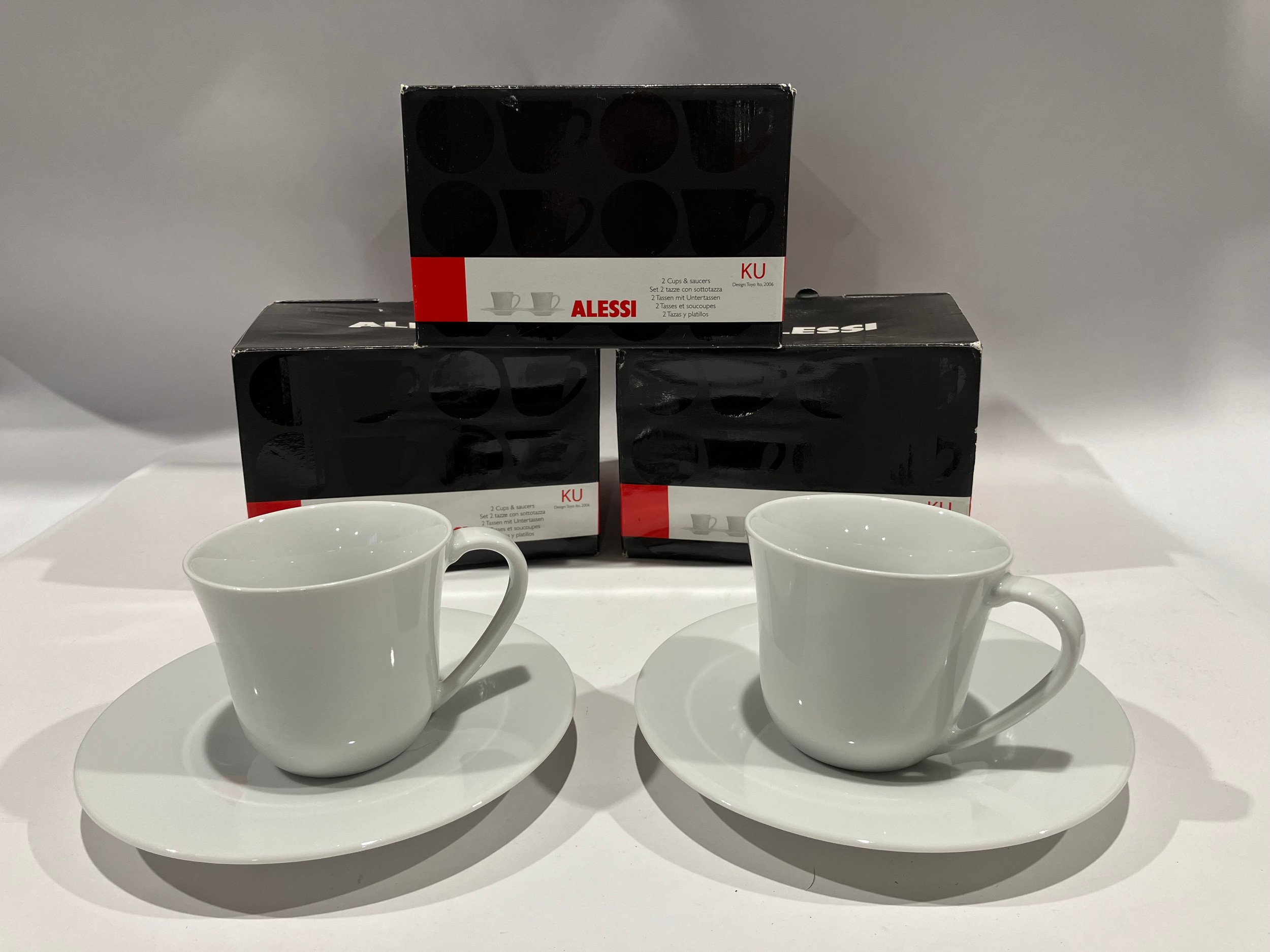Six Alessi Ku porcelain cups and saucers, design: Toyo Ito 2006, boxed