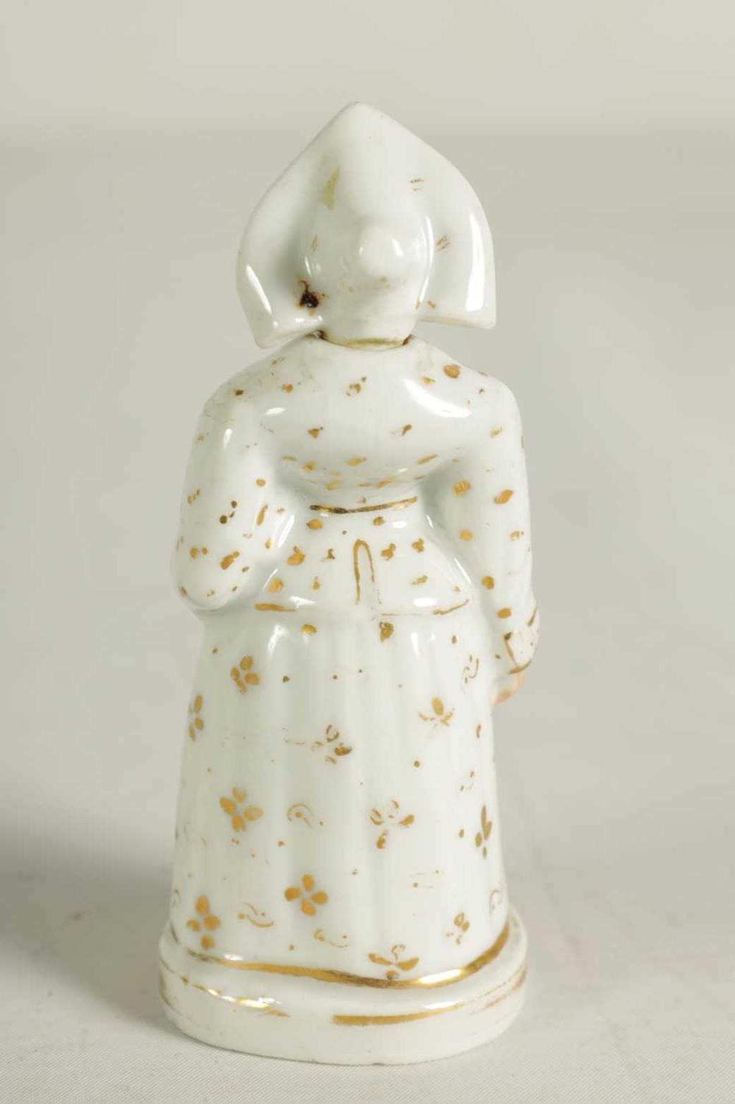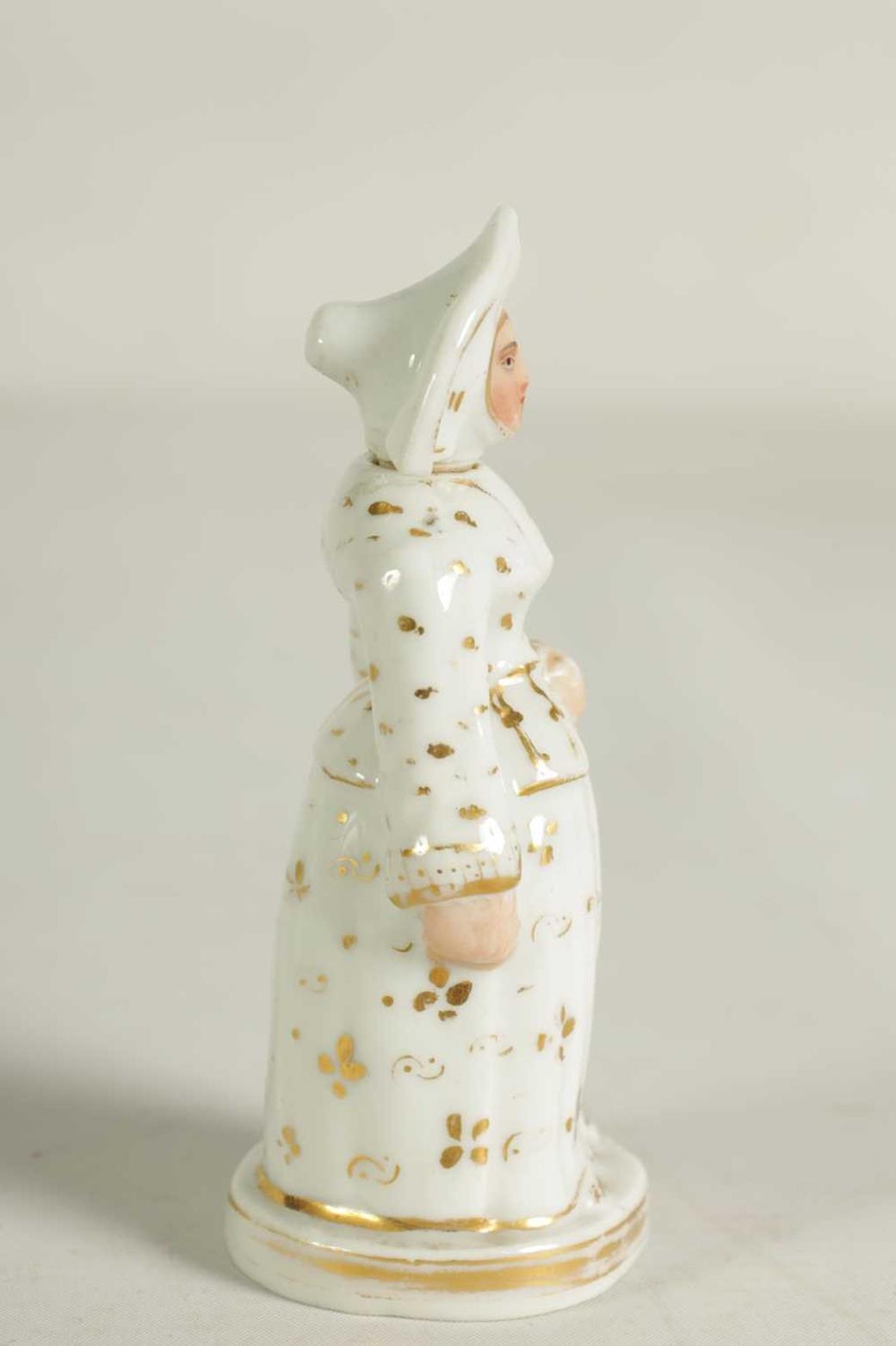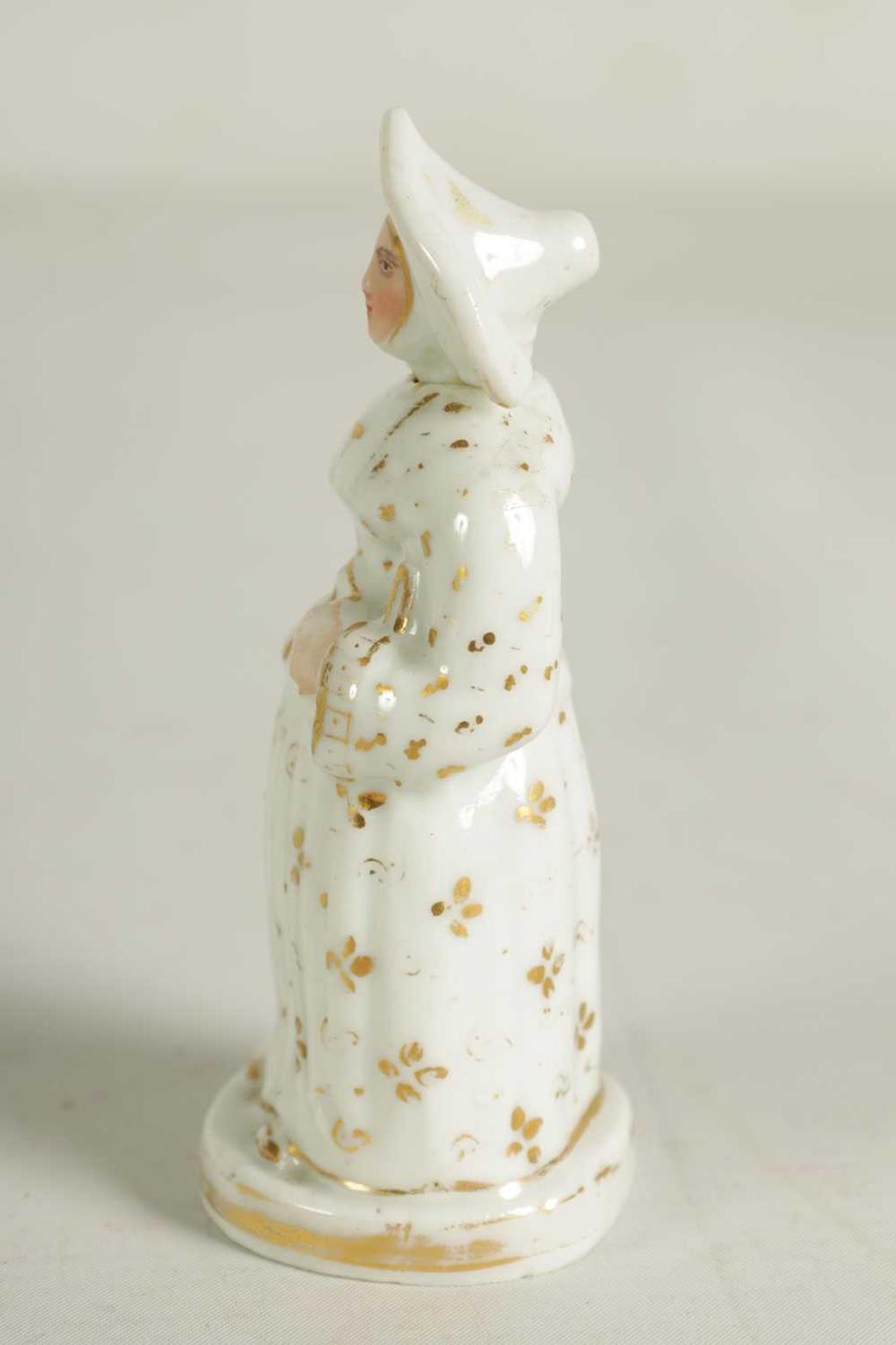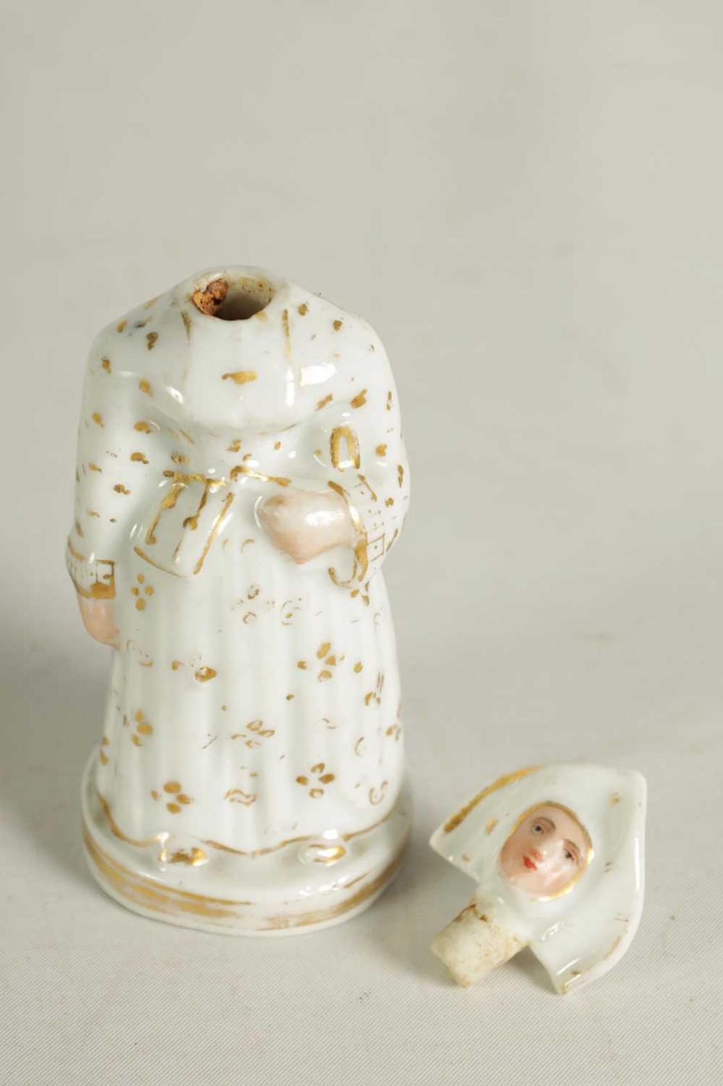 A LATE 19TH CENTURY CONTINENTAL FIGURE OF A STANDING NUN formed as a scent bottle with detachable head stopper (10.5cm high )
