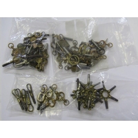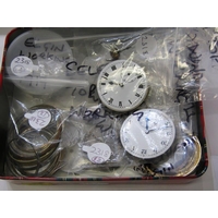 HOROLOGY, tin with collection of pocket watch parts, including winders, stems and crowns