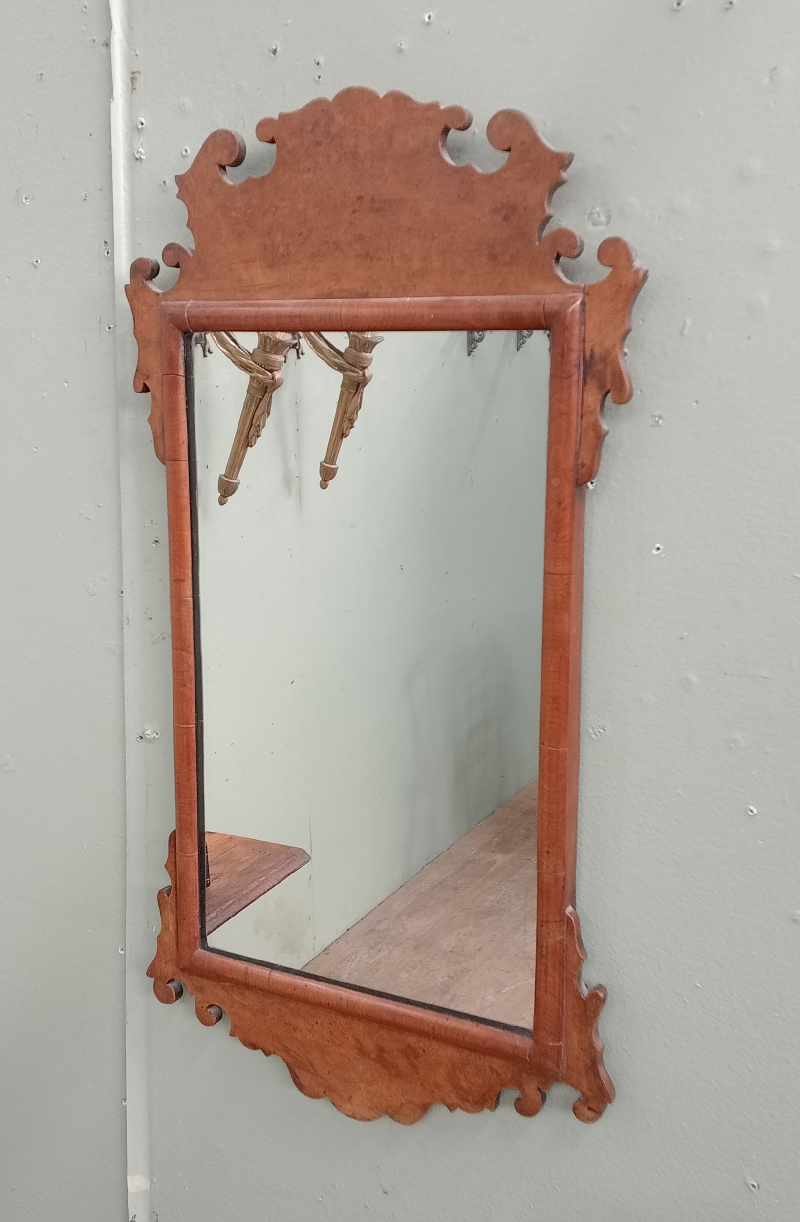 A GEORGIAN STYLE WALNUT FRET FRAME MIRROR the rectangular plate within a shaped frame 68cm (h) x 36cm (w)