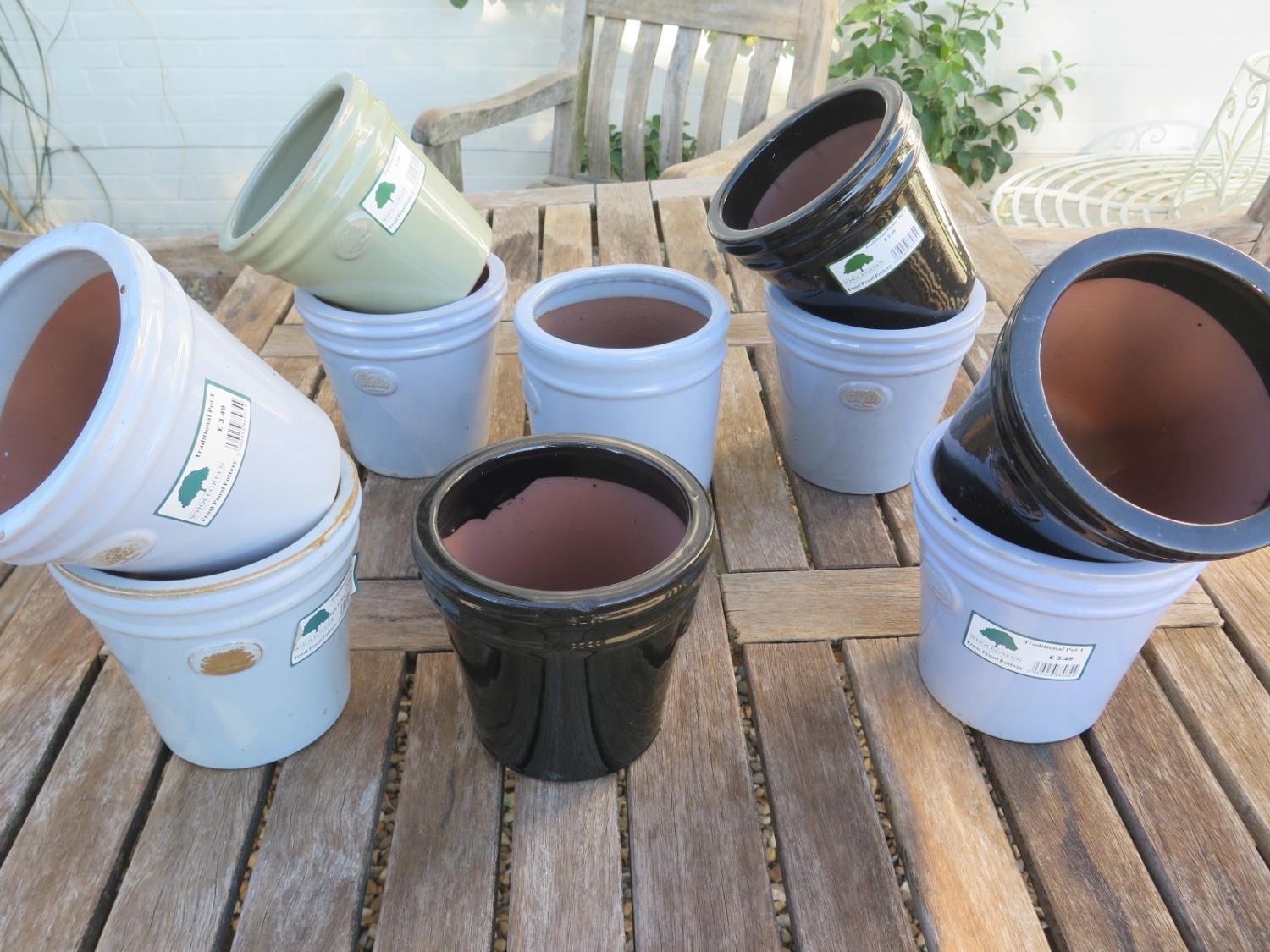 Ten small glazed plant pots
