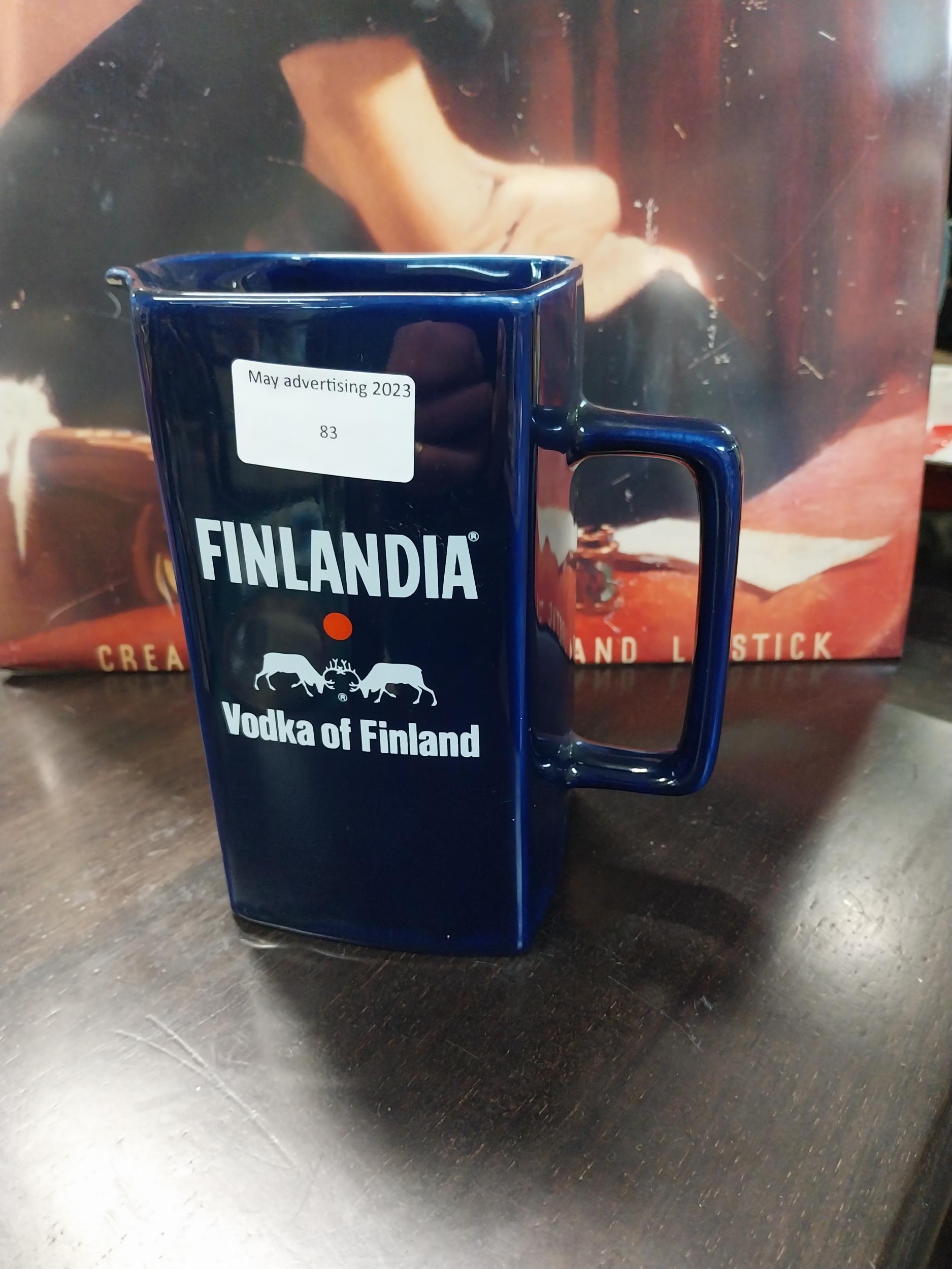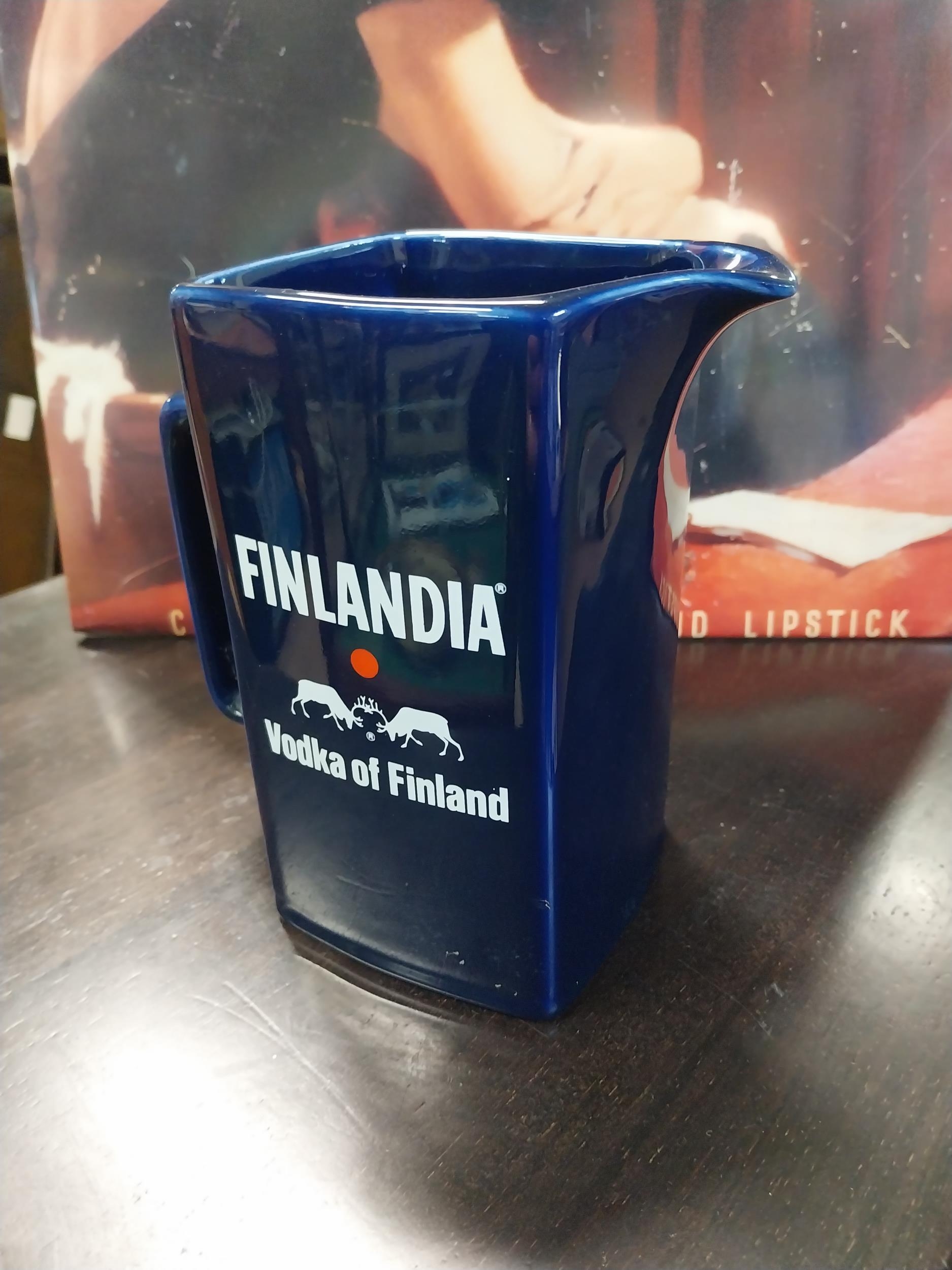 Finlandia Vodka Wade ceramic advertising jug. {17 cm H x 15 cm W x 9 cm D}.