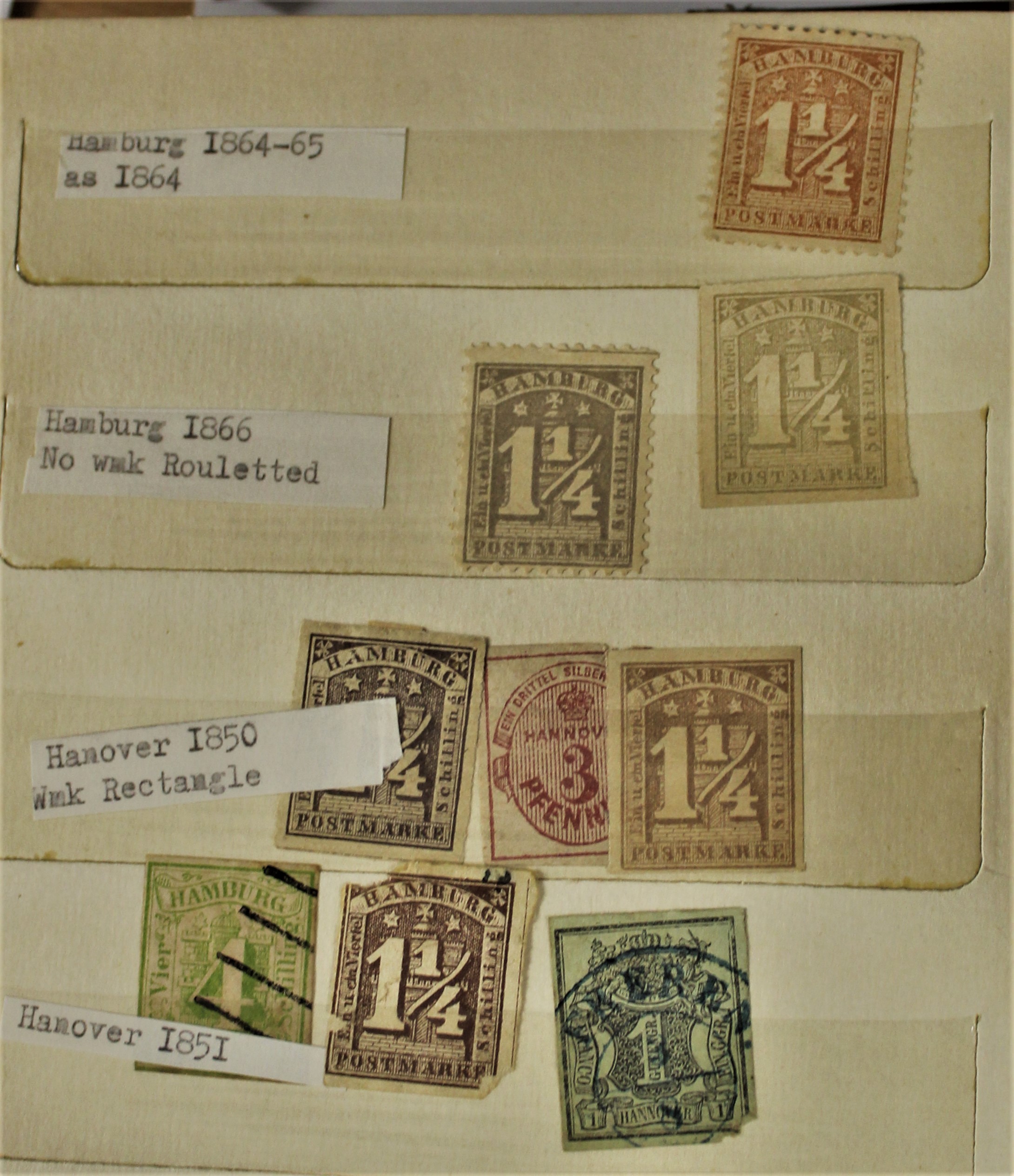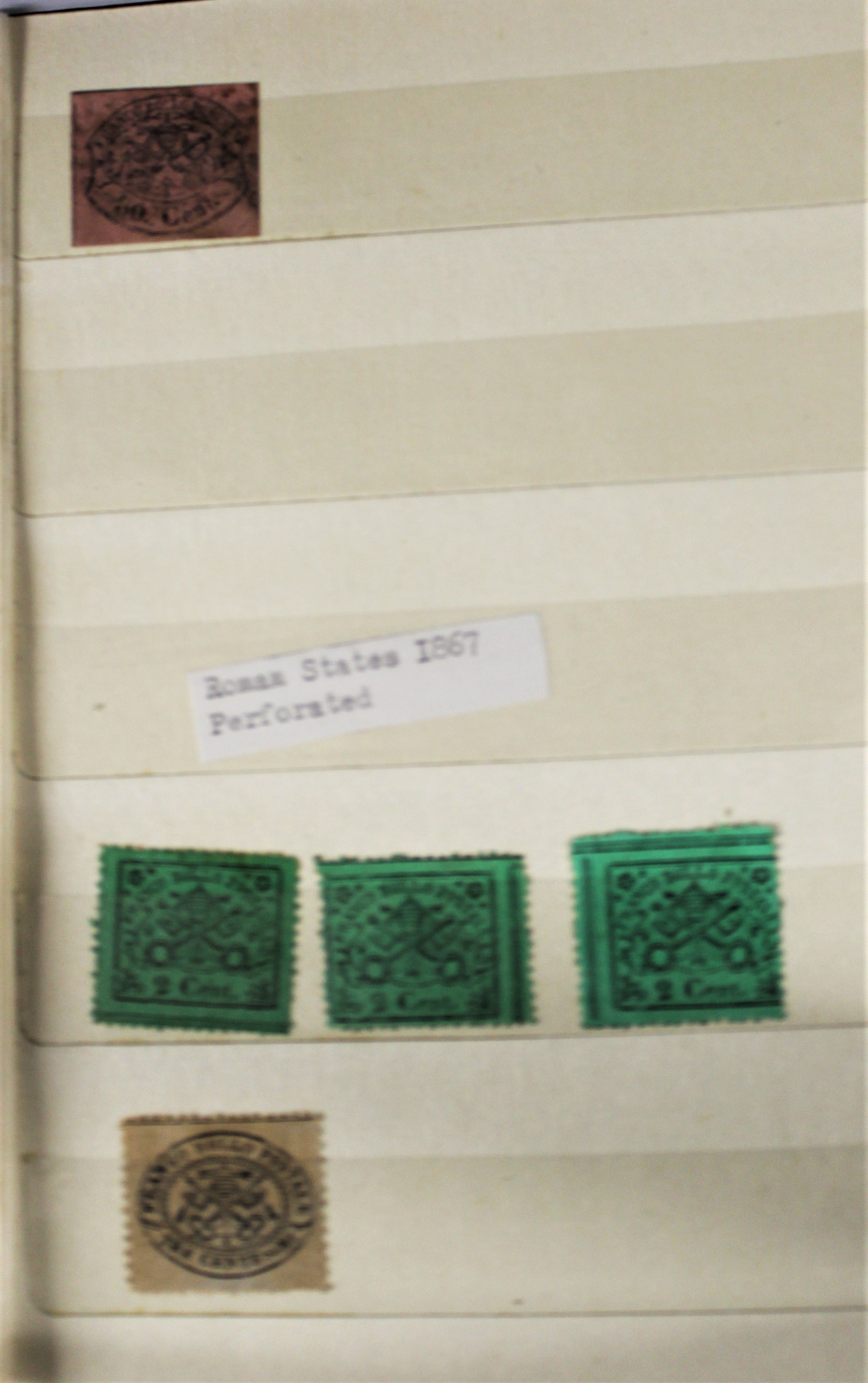 A6 Stockbook of Roman States Stamps (approx 40, German State of Saxony and Hamburg, Hanover (1850), Hansa Shipping stamps (approx German)