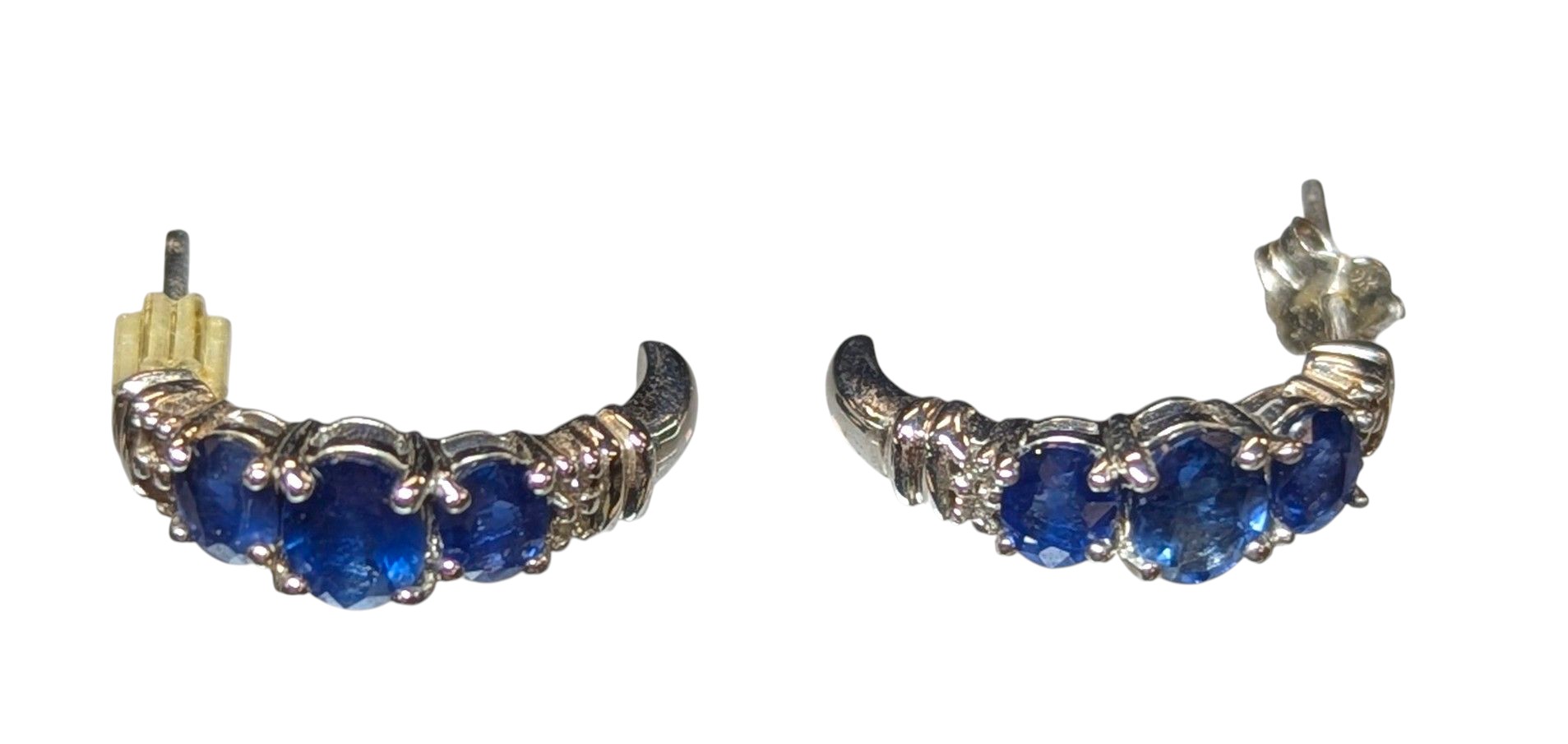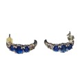 A pair of 9ct white gold sapphire and diamond half hoop style earrings,