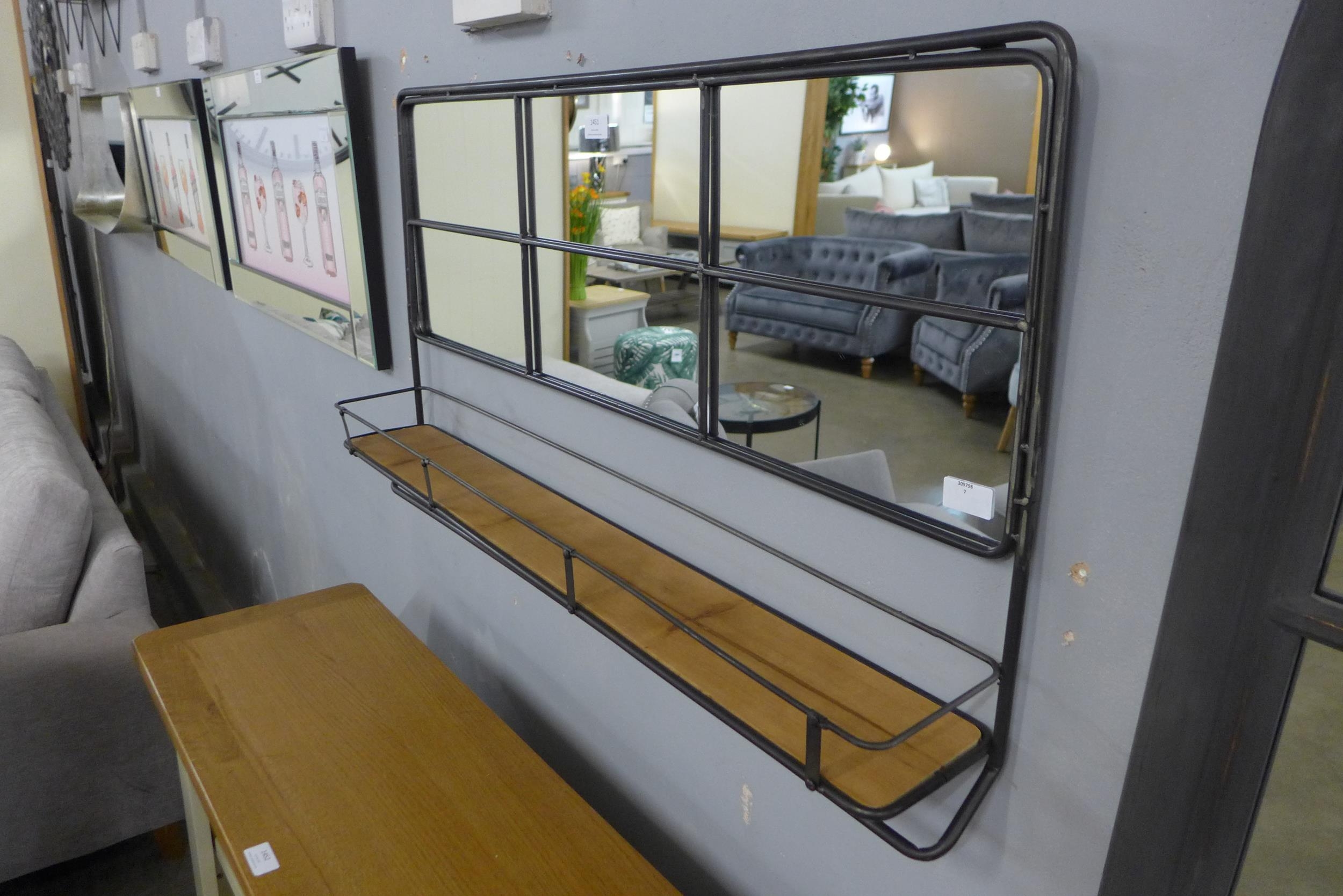 An industrial metal wall mirror with shelf H55cm x W94cms (RFB3339) #