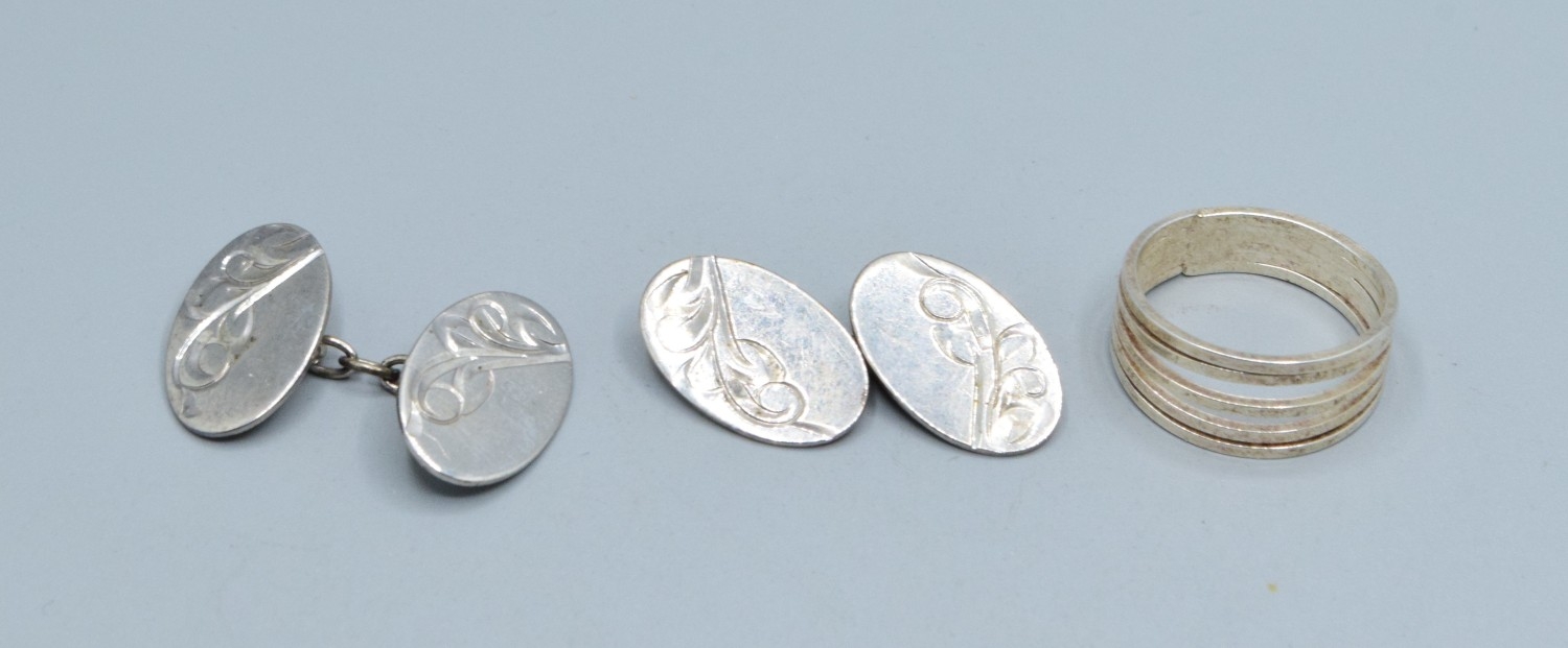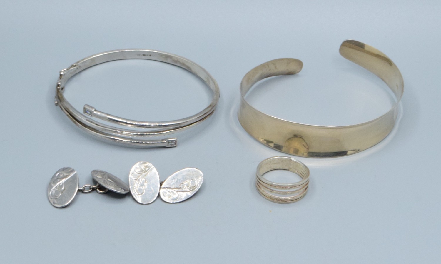 Mixed 925 silver jewellery 2 925 silver bangles a 925 silver ring together with 925 silver cufflinks 37grams