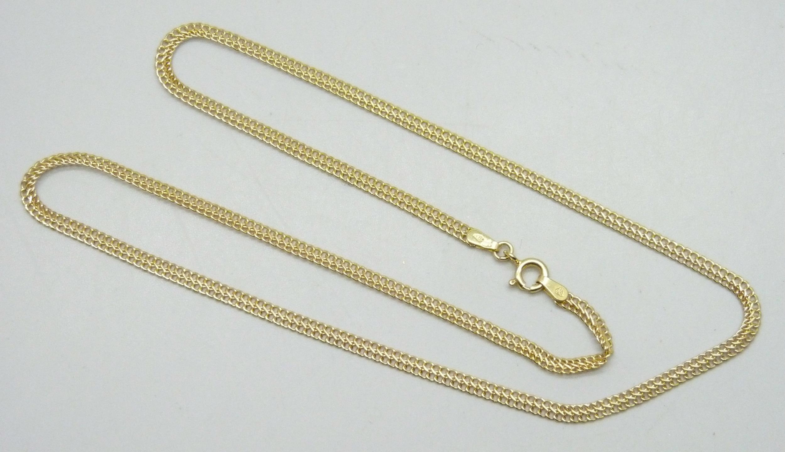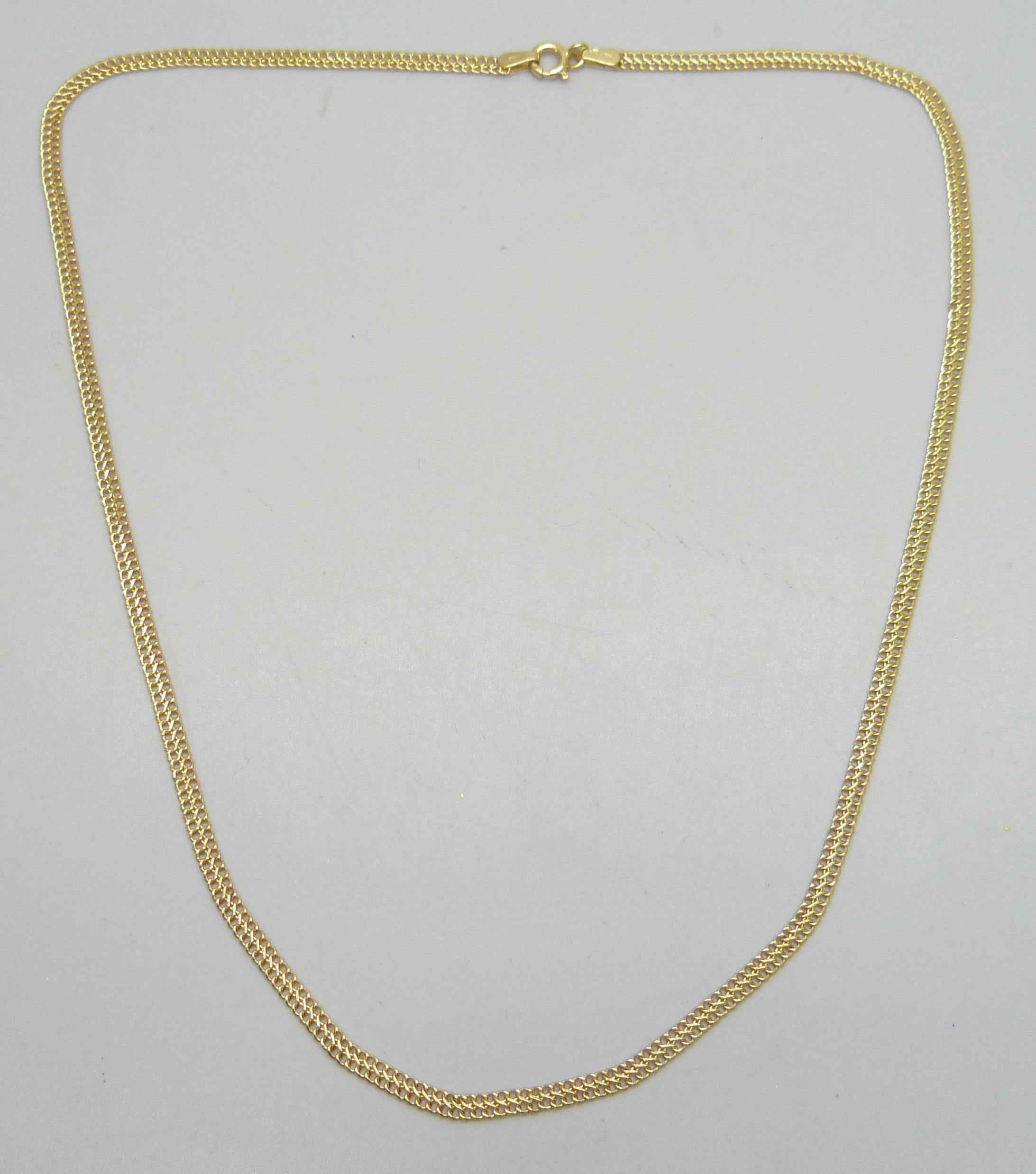 A 9ct gold double curb chain necklace, 18 inch, 2.6g