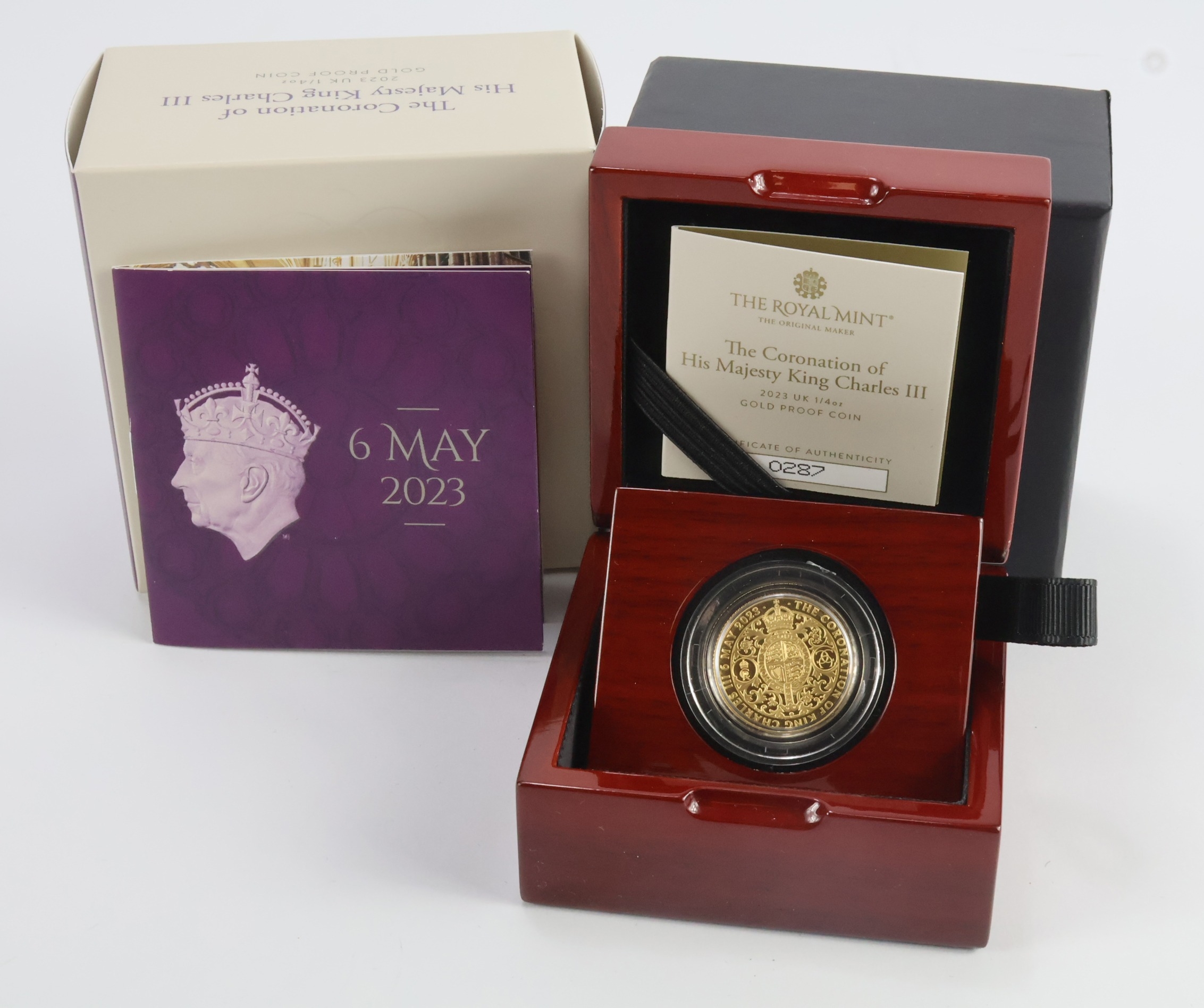 Twenty Five Pounds 2023 "Coronation" gold Proof (Quarter oz). FDC boxed as issued