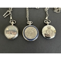 Three vintage style pocket watches on chains including a Fra...