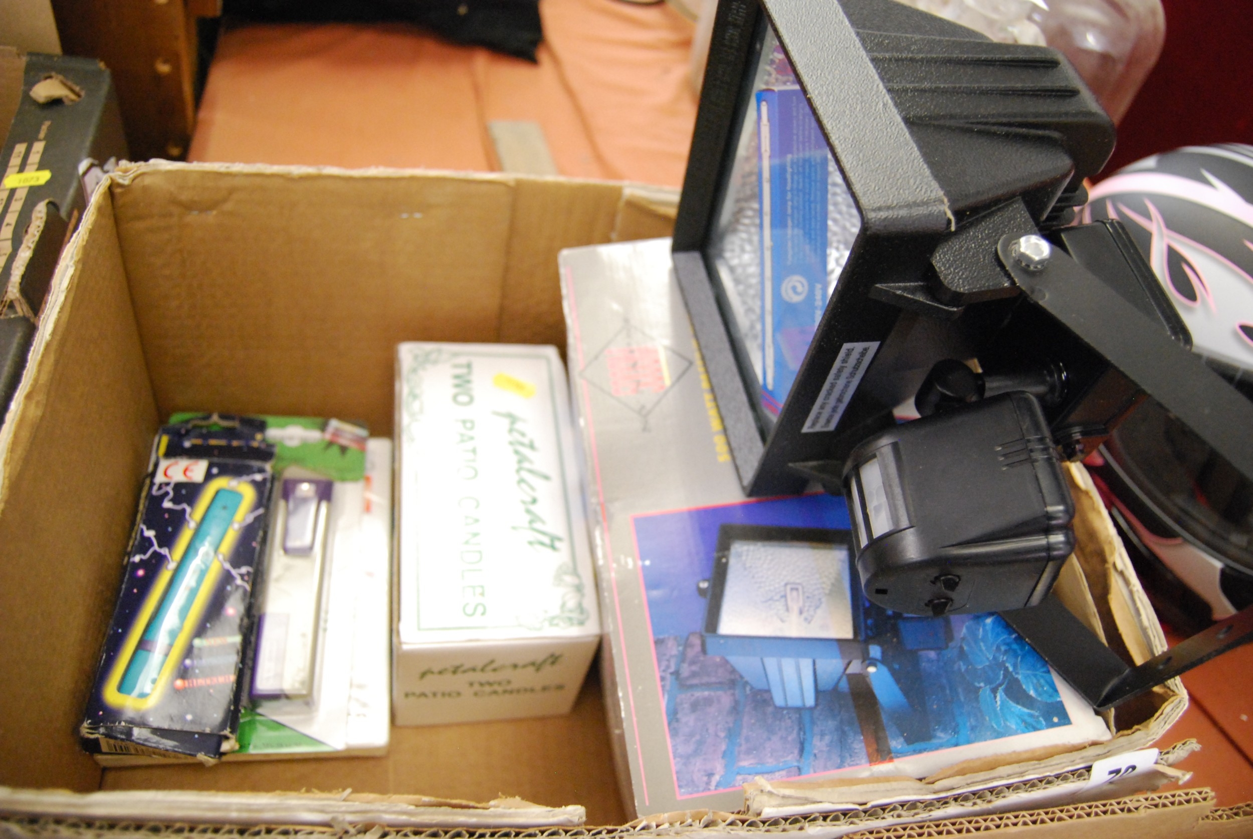 500W PASSIVE INFRA RED MAXI FLOODLIGHT, TWO PATIO CANDLES, ETC