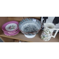 Pottery Footed Bowl, Jug & Part Dessert Set.