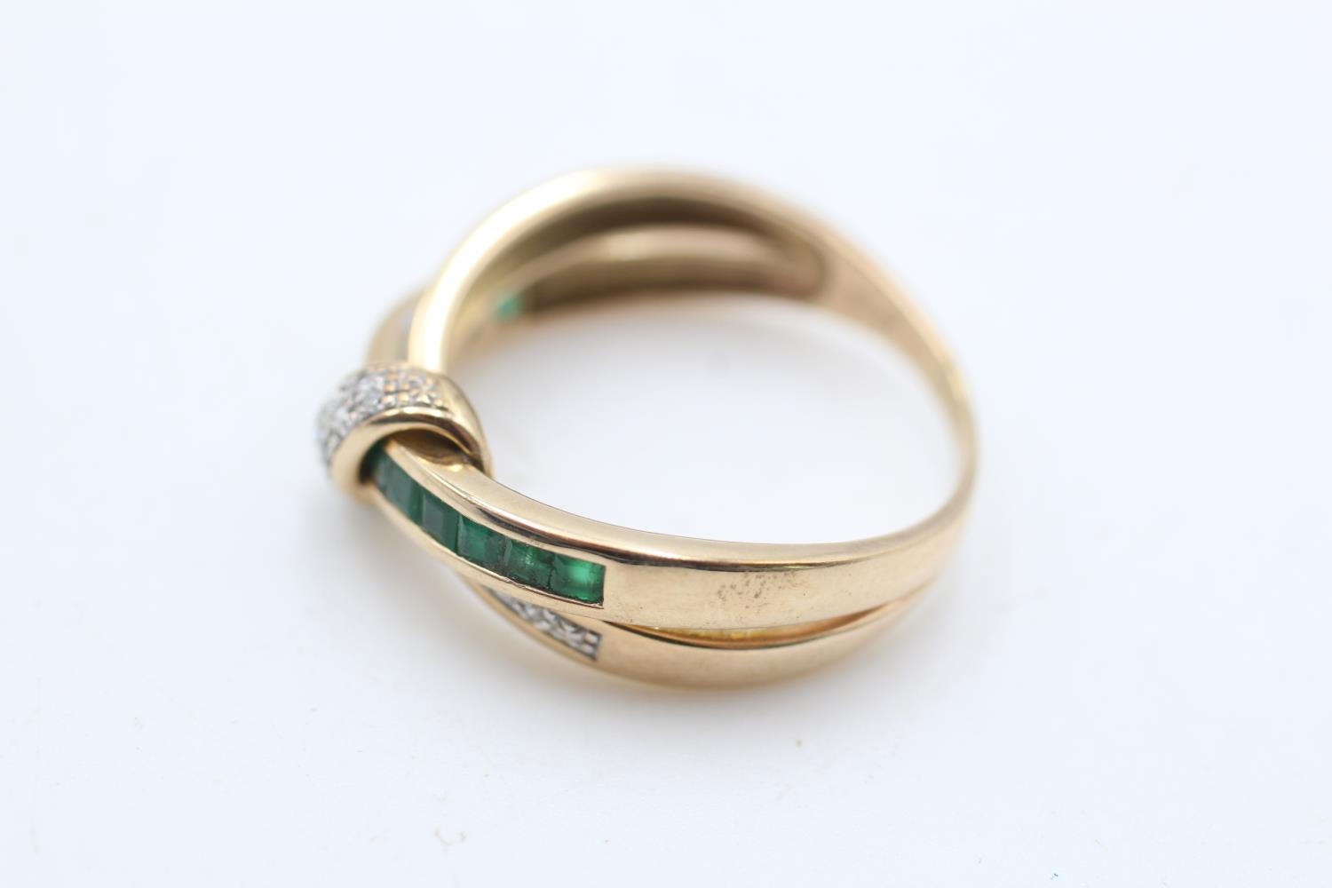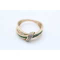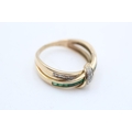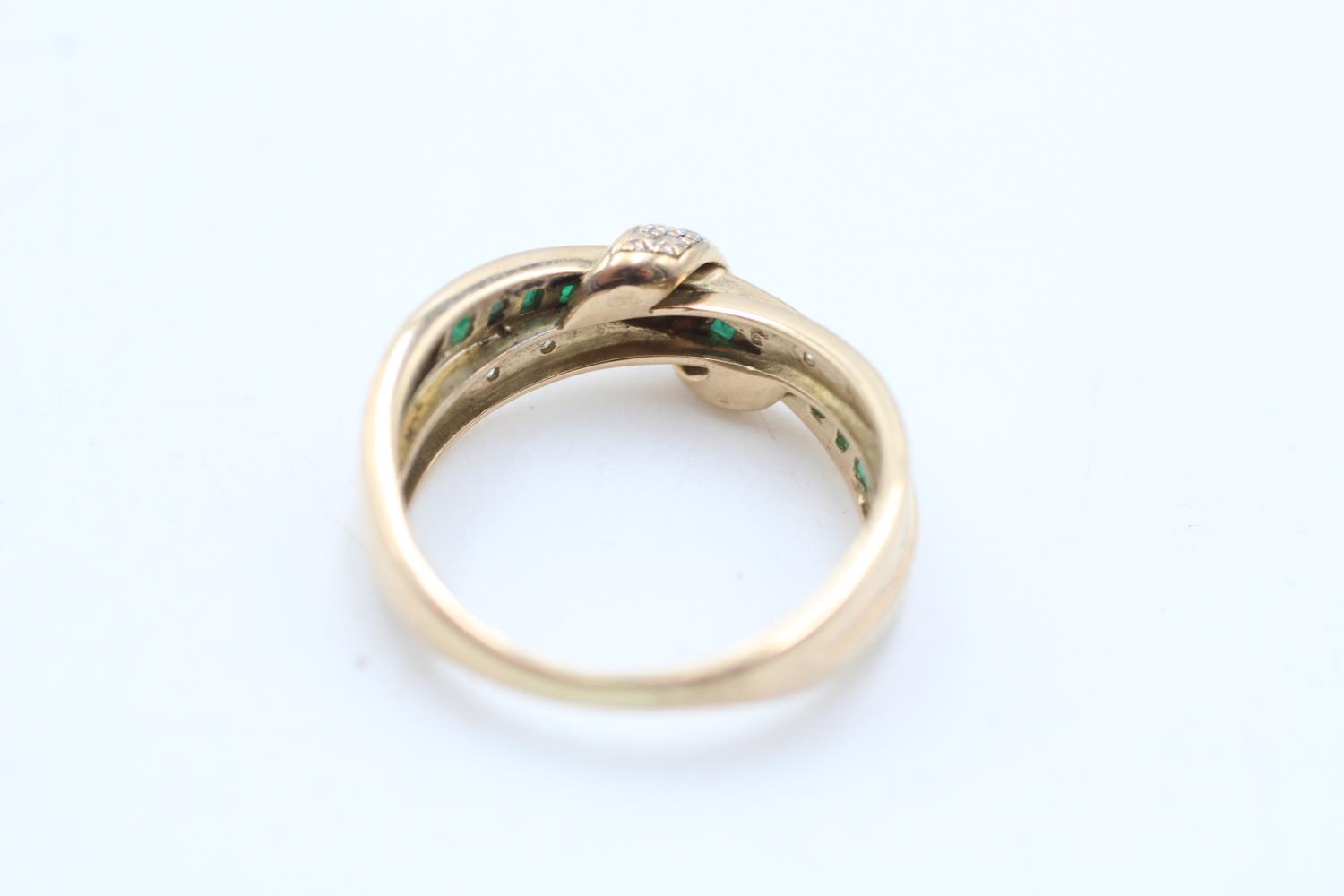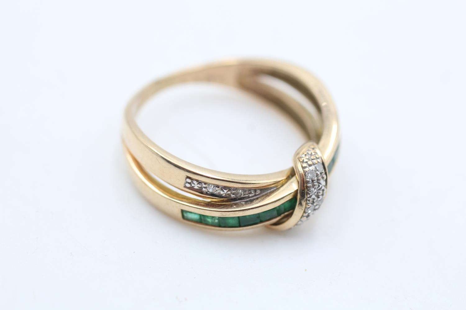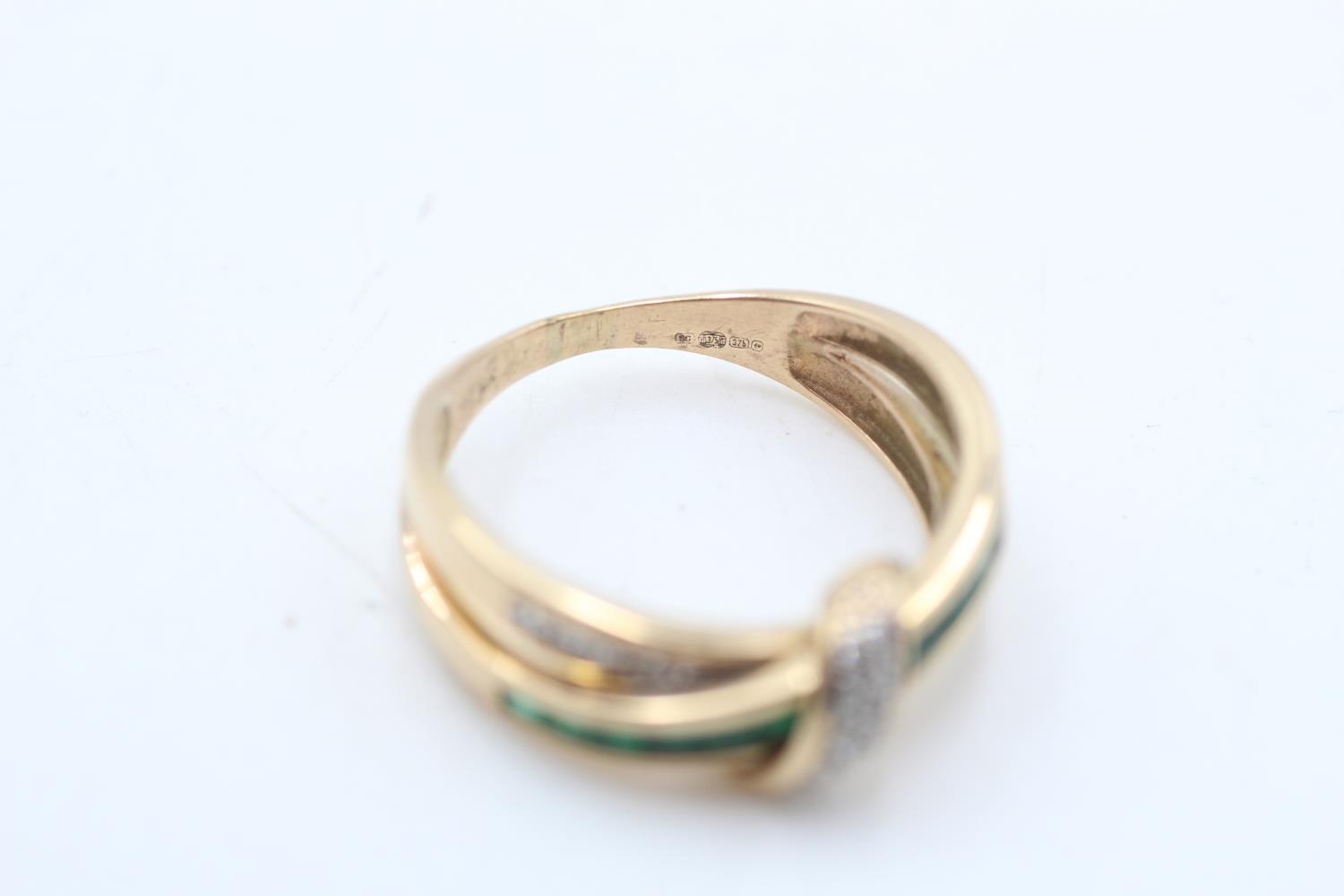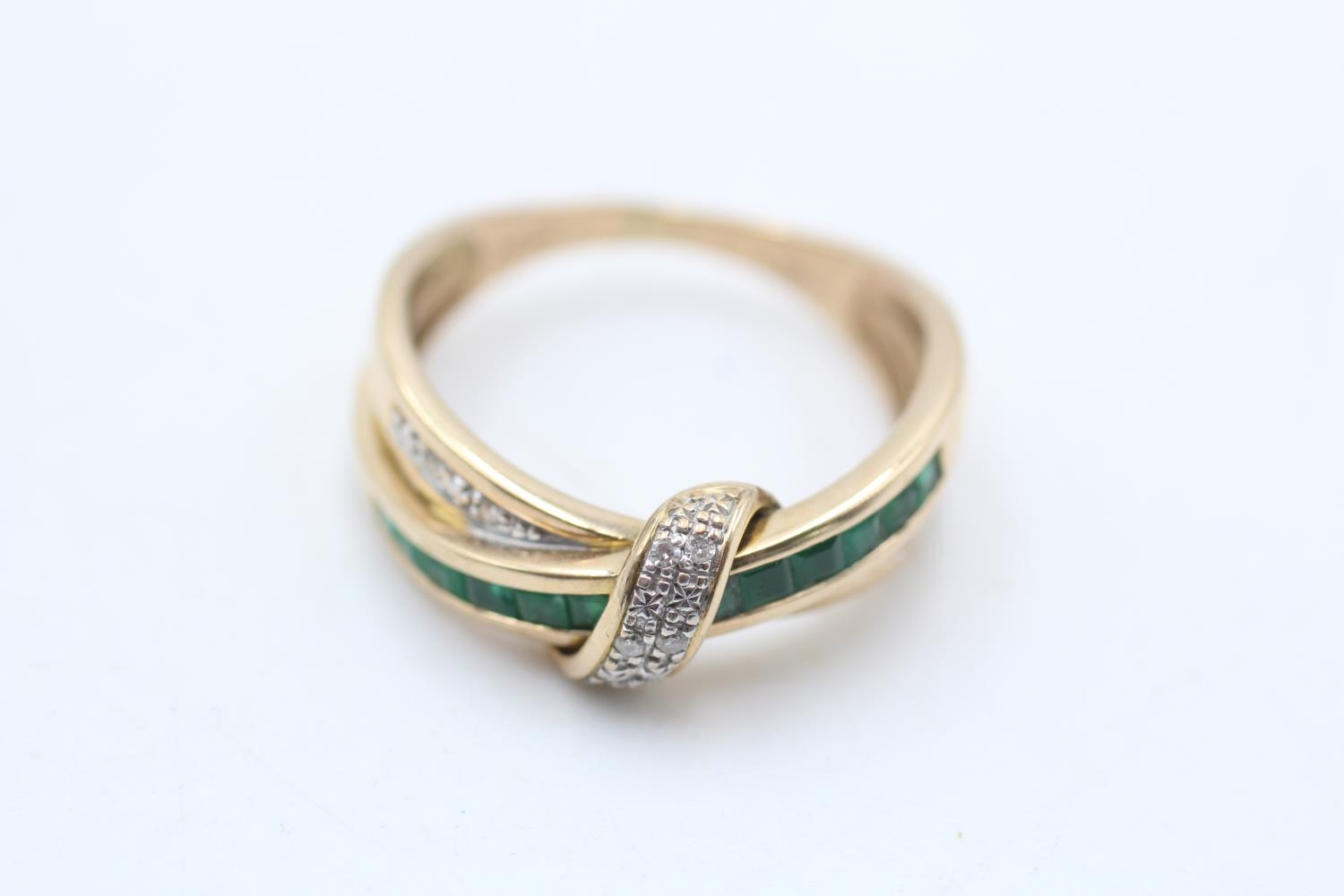 A 9ct gold emerald and diamond bow design ring, size O½ - approx. gross weight 3.4 grams