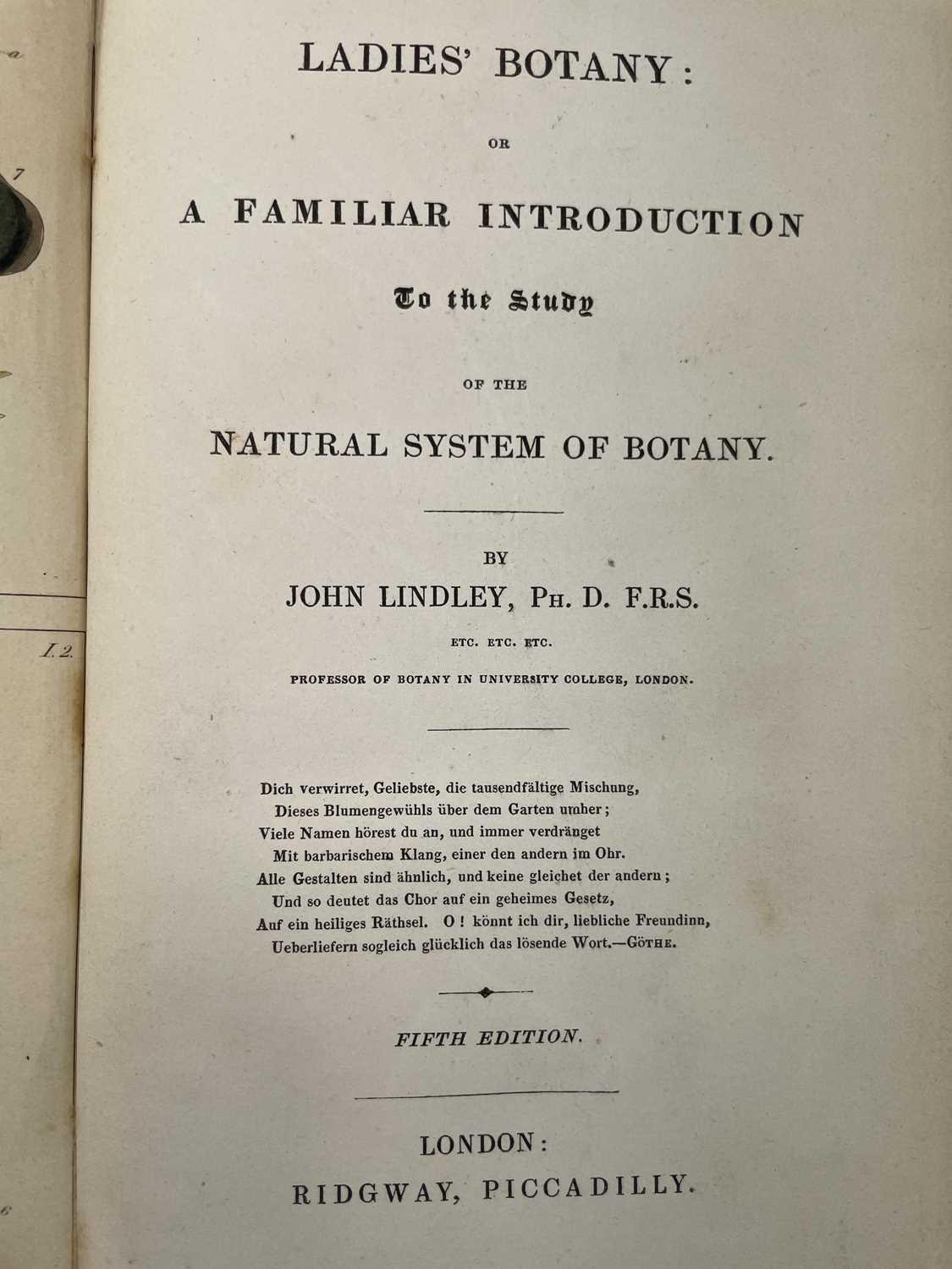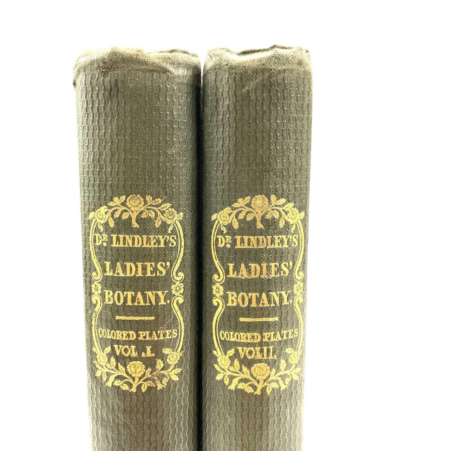 JOHN LINDLEY. 'Ladies Botany: or A Familiar Introduction to the Study of the Natural System of Botany,' two vols, 5th edition, original embossed cloth, hand coloured illustrations, Ridgway, London, 1840. (2)