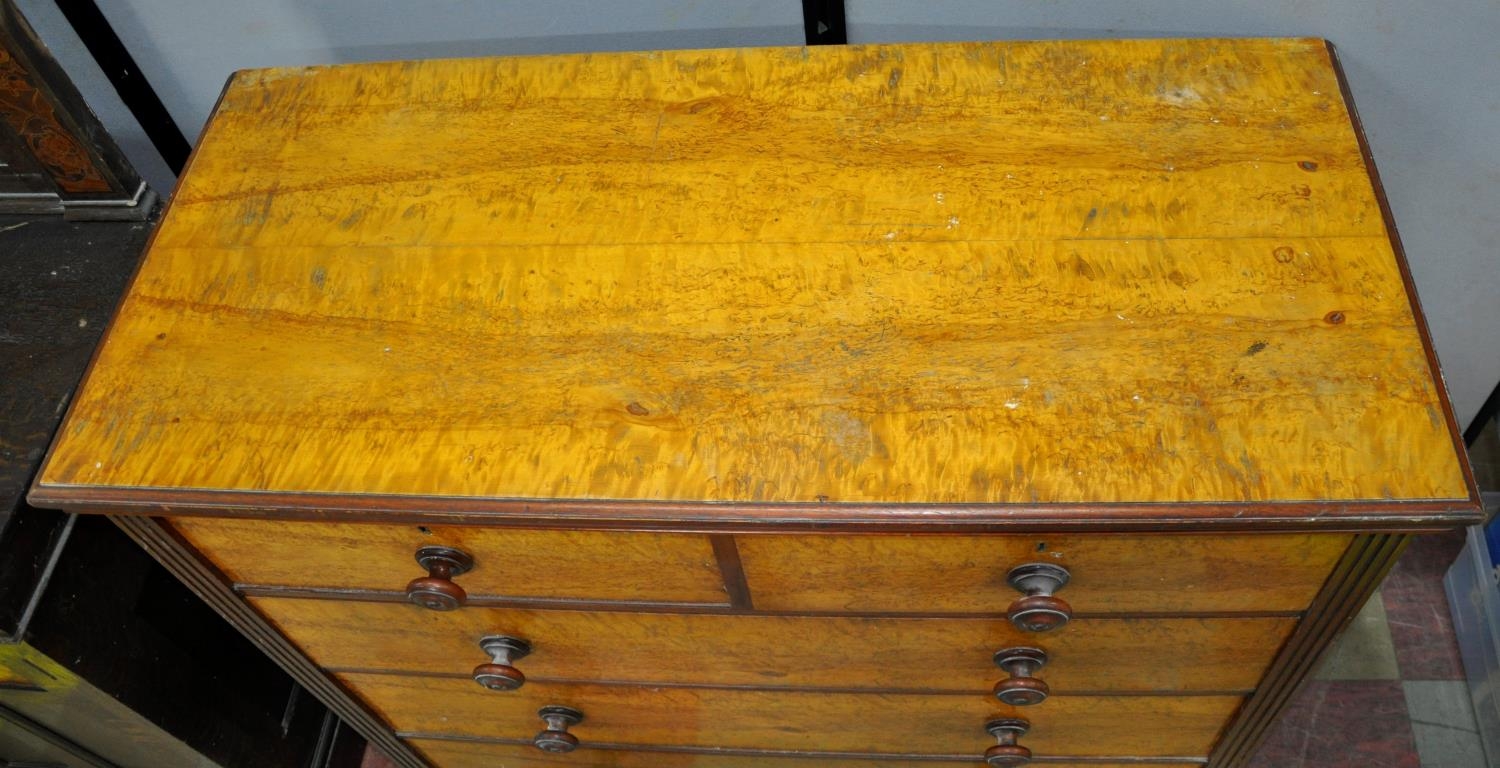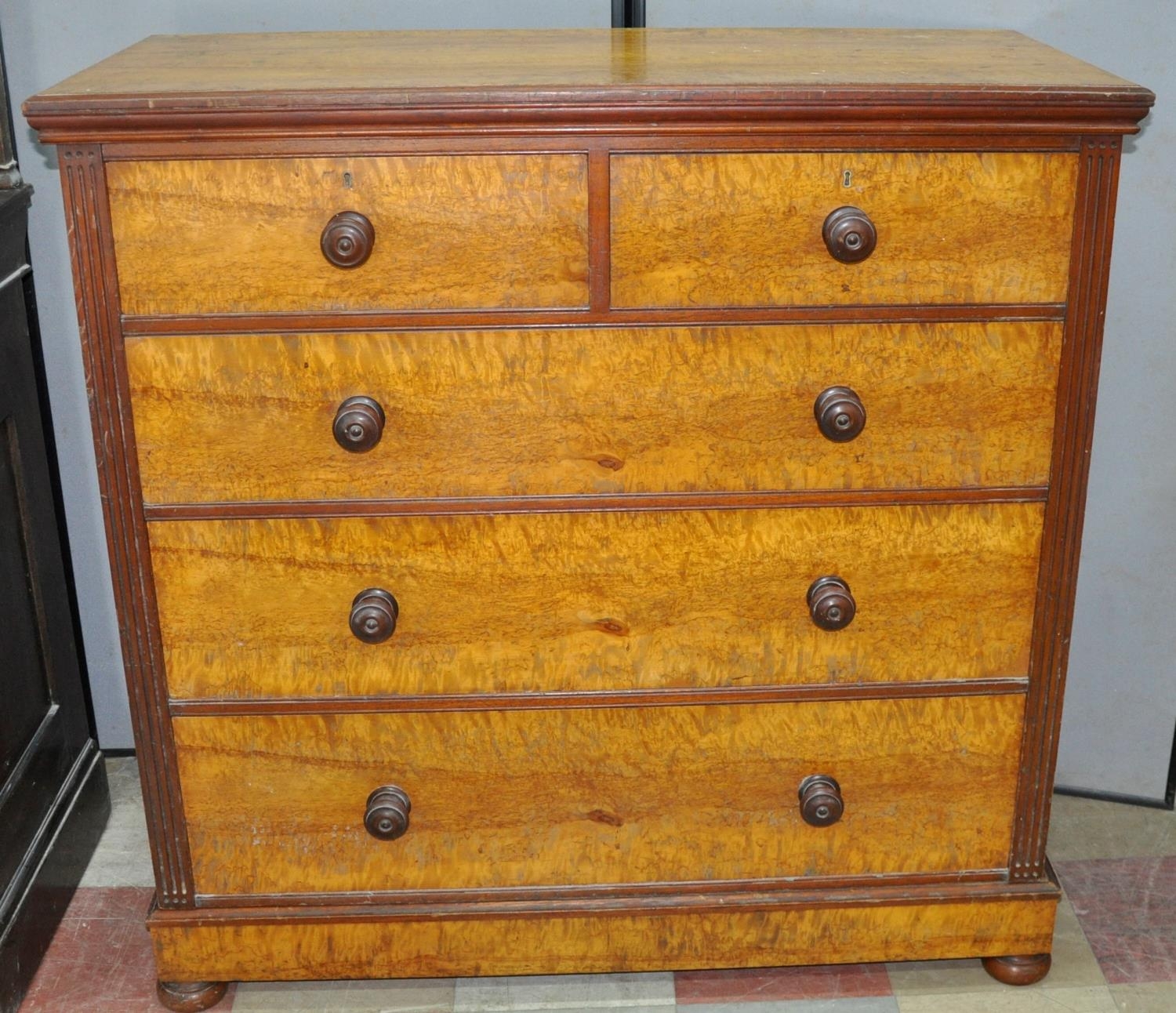 MAPLE 2 OVER 3, 5-DRAWER CHEST WITH TURNED HANDLES AND BUN FEET (Height 122.5cm, Width 122.5cm & Depth 55cm)