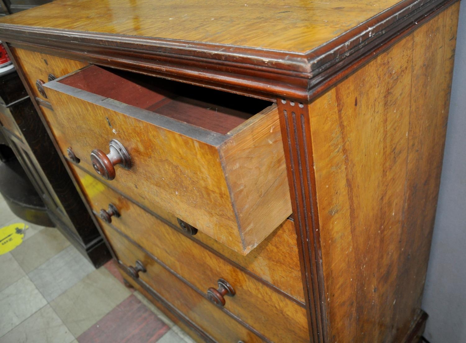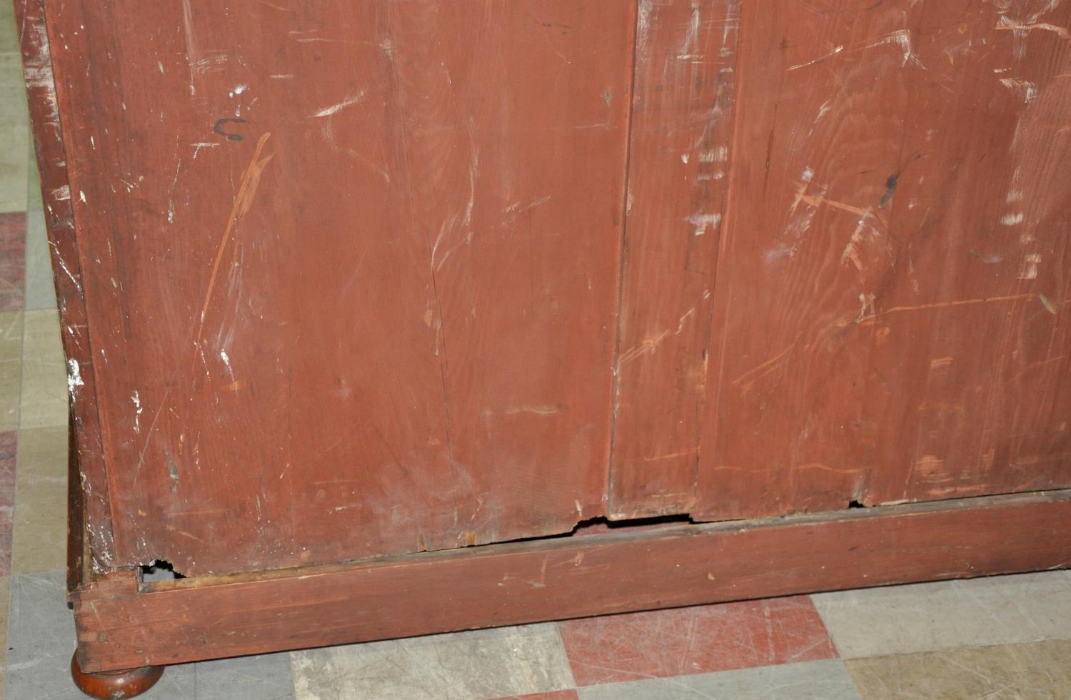 The veneers on the chest have dried out and split on the top and sides and there are some marks/scratches on the chest.