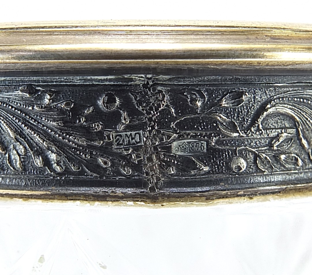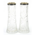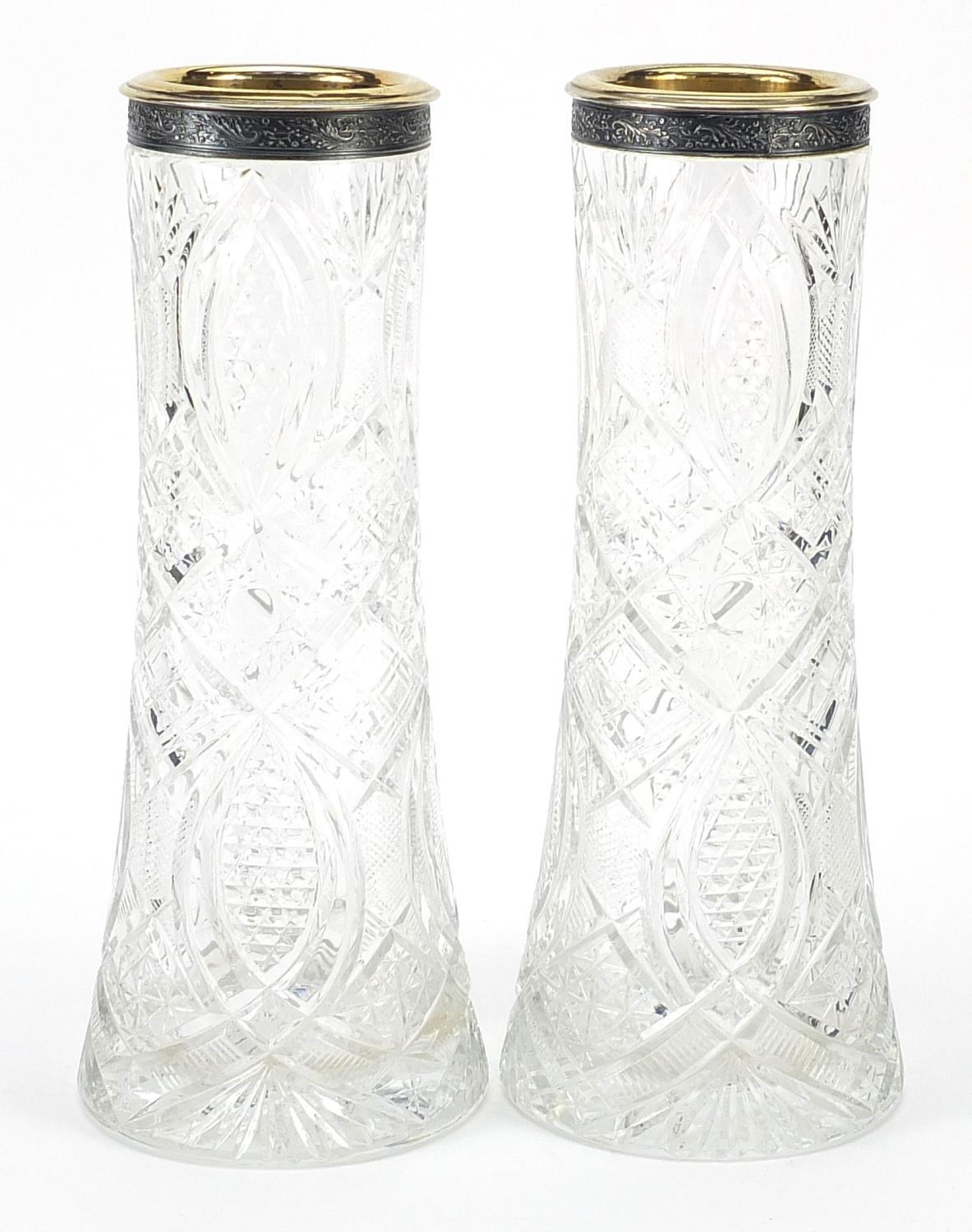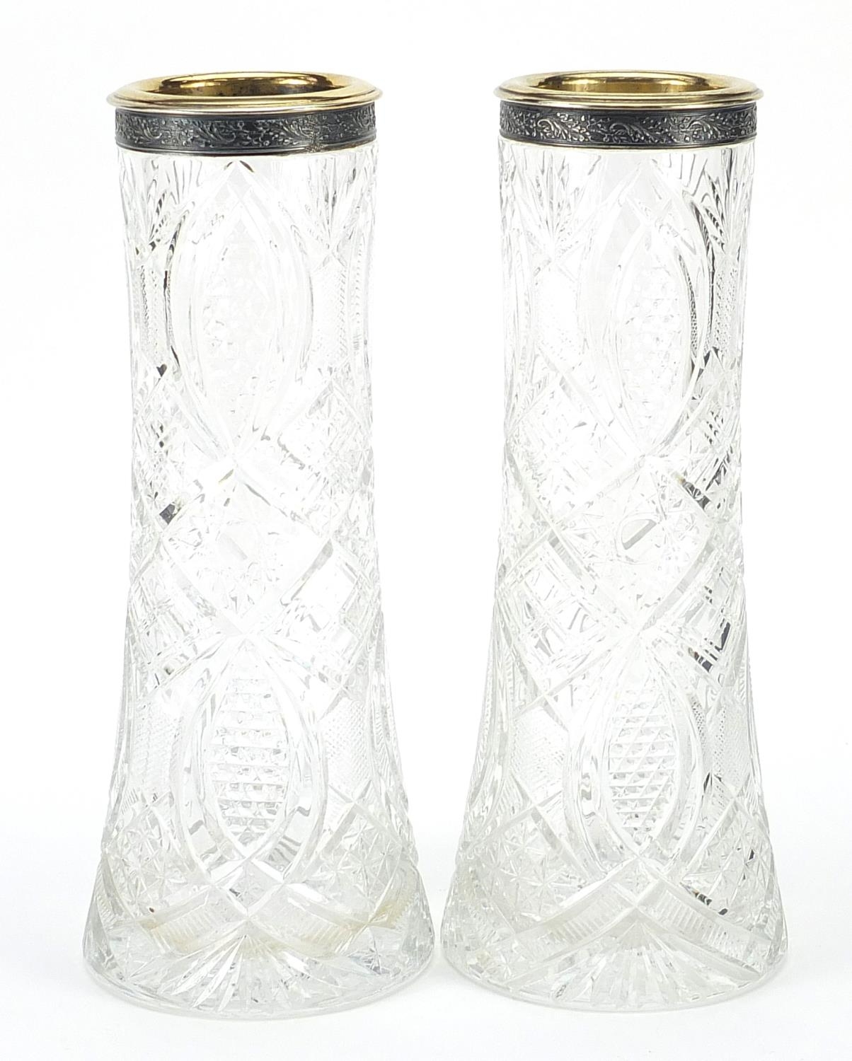 Russian cut vases with silver collars, impressed Russian marks 2MO 875 with hammer and sickle, 28.5cm high