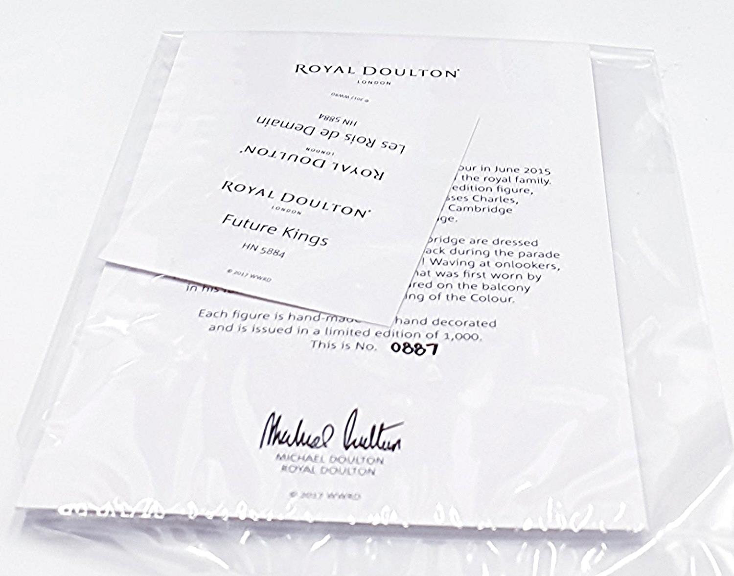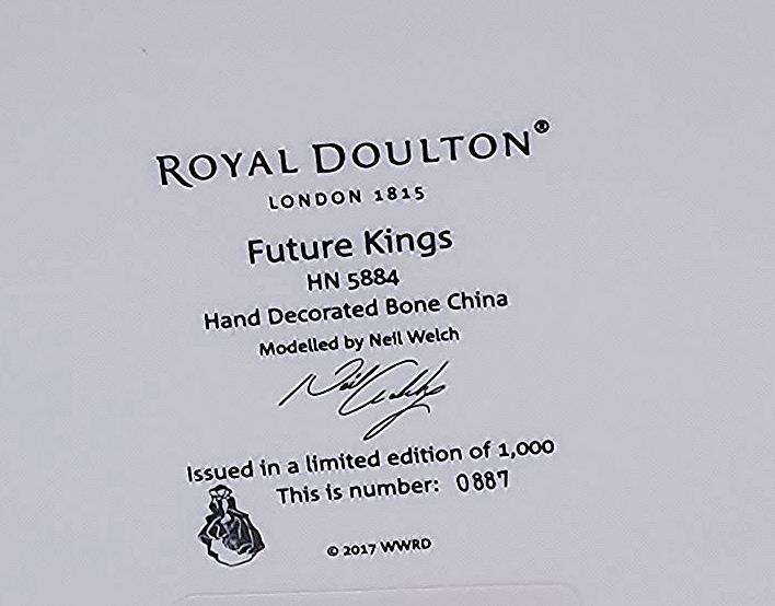 ROYAL DOULTON Large 26cm FIGURINE "FUTURE KINGS" HN 5884 (Featuring Prince Charles, Prince William and Prince George) Designed By Mr Neil Faulkner ,Limited Edition Of 1,000 This One Being No 0887 ____. (Certificate & Original Box)
