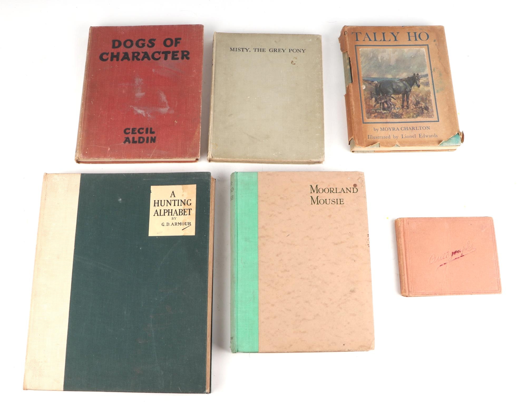Armour (G D) 'A Hunting Alphabet' Country Life first edition 1929, Gorse (Golden) "Moorland Mousie", Aldin (Cecil) "Dogs of character", Charlton (Moyra) "Tally Ho!", Lennon (Joyce-Mary) "Misty the Grey Pony", together with an autograph album, to include signatures of Peter Sellers, Ernest Hall, and Michael Child.