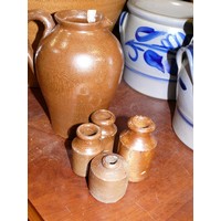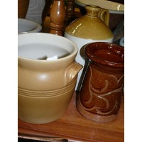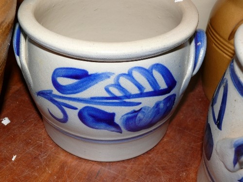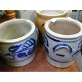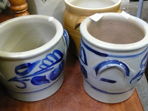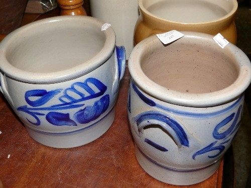 TWO BLUE AND GREY EARTHENWARE POTS.