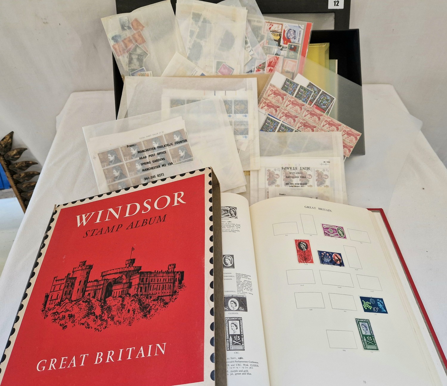 Windsor GB stamp album sparsely filled and a box of part mint sheets with traffic lights