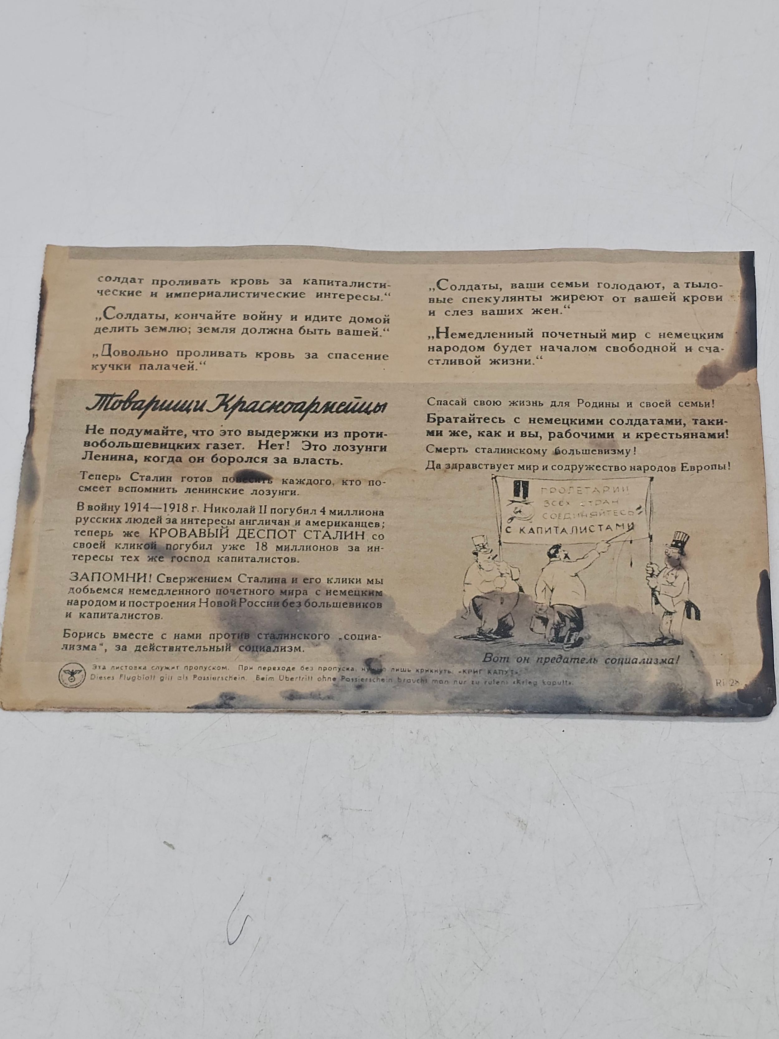 WW2 German Propaganda Leaflet for Red Army soldiers