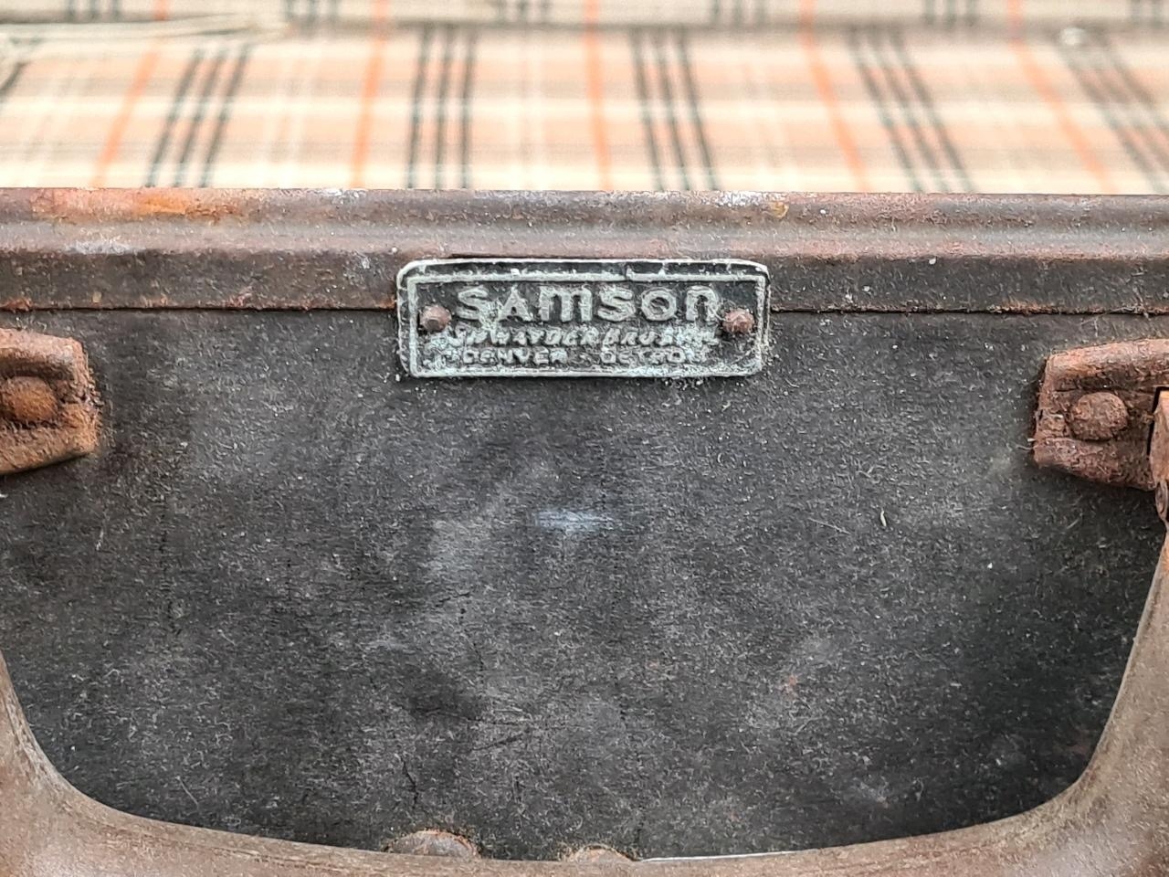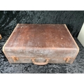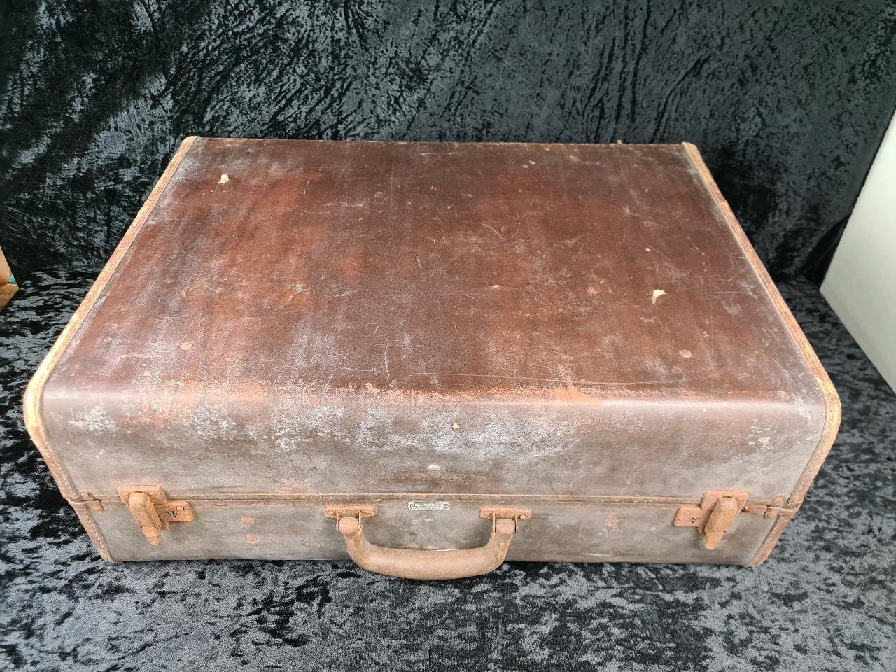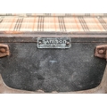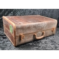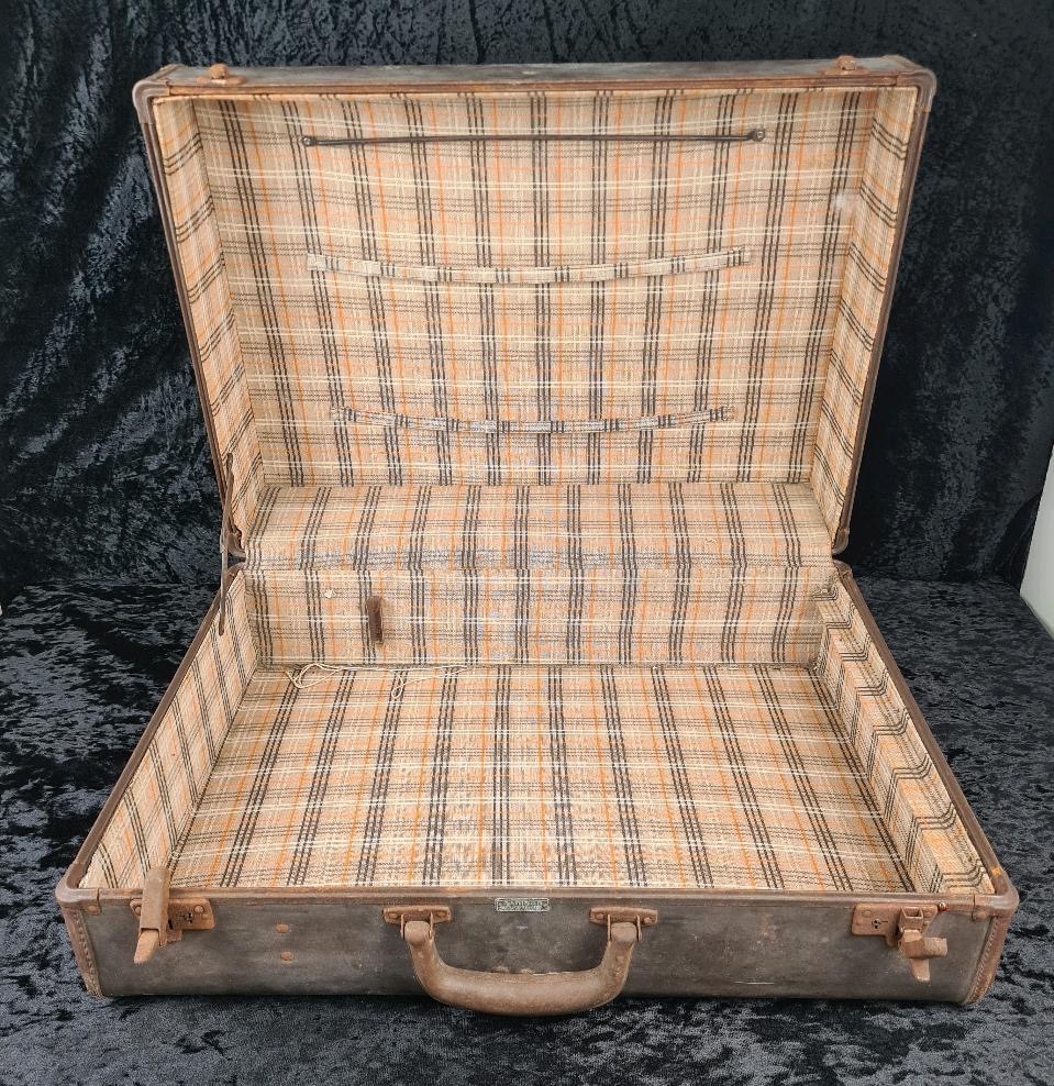Original vintage Samson brown leather suitcase with check fabric lining. Approx W62 x W45cm.