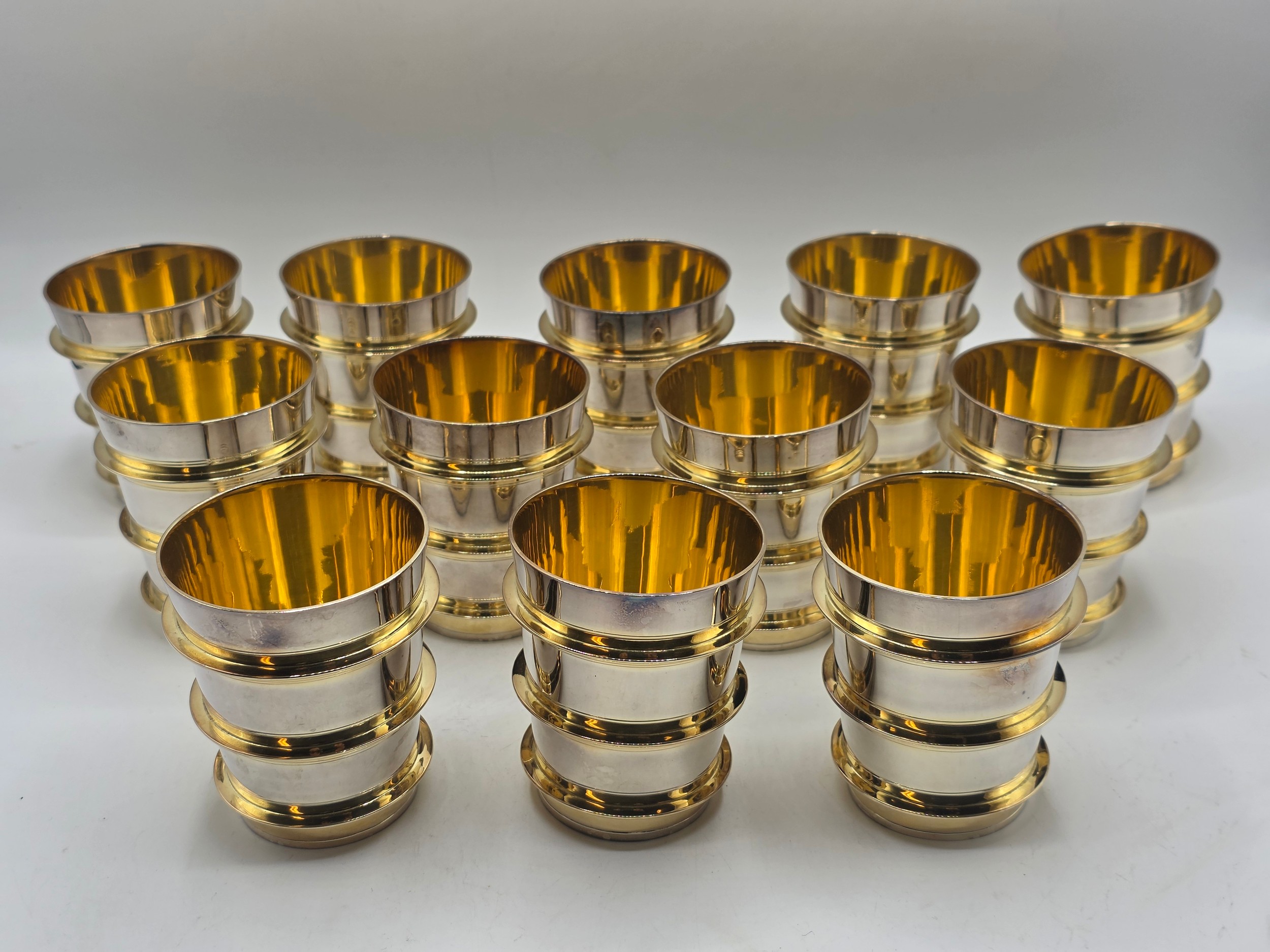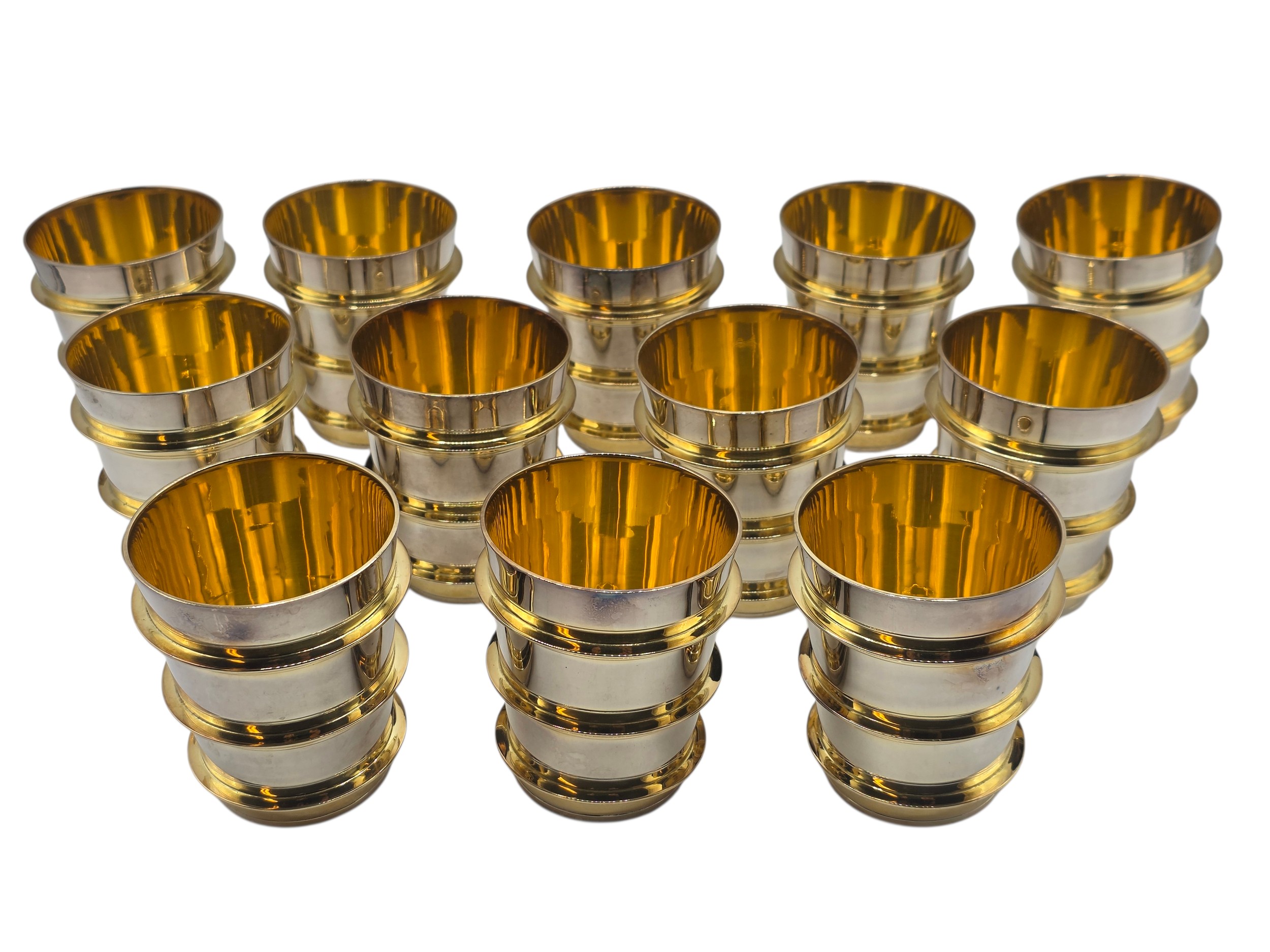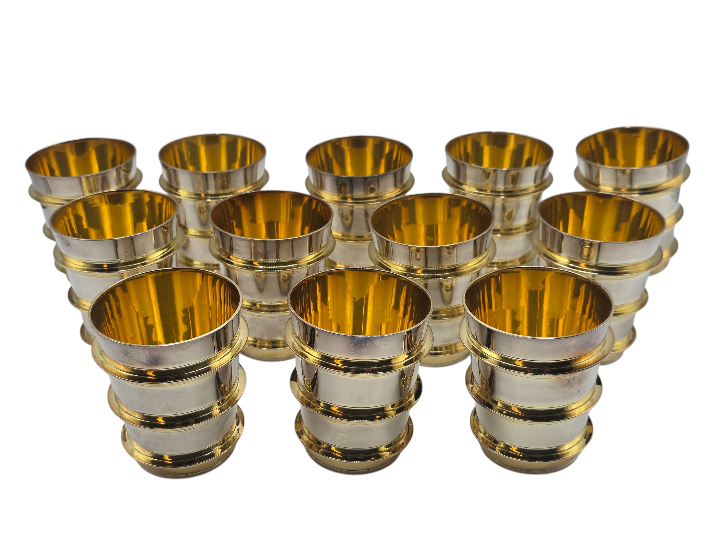 A set of twelve Sterling silver gilt water beakers with gilt ribbed design and interiors each 9.5 cm 2592 g. S J Phillips London 2006