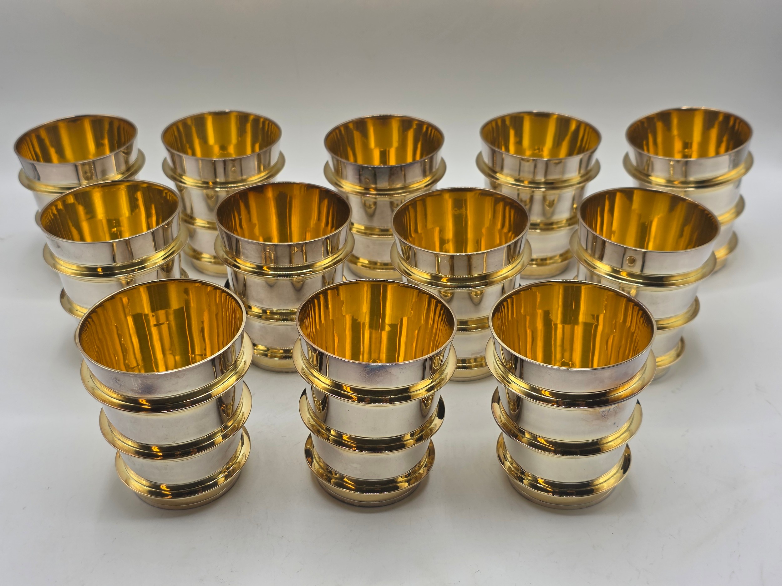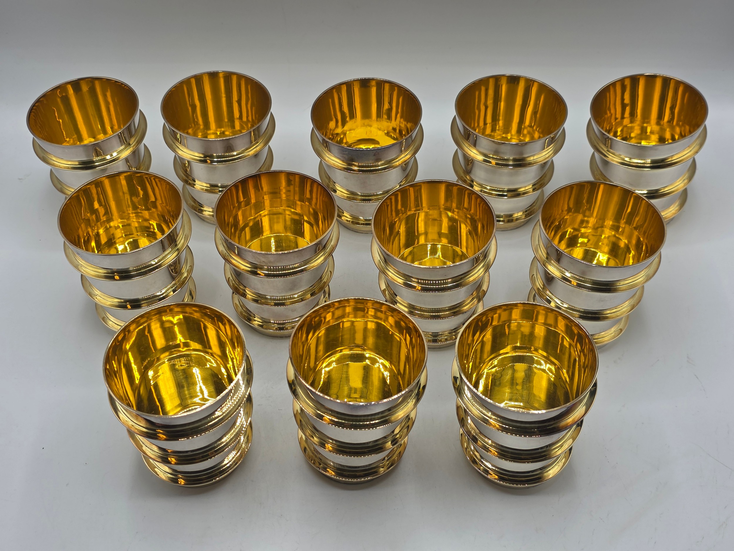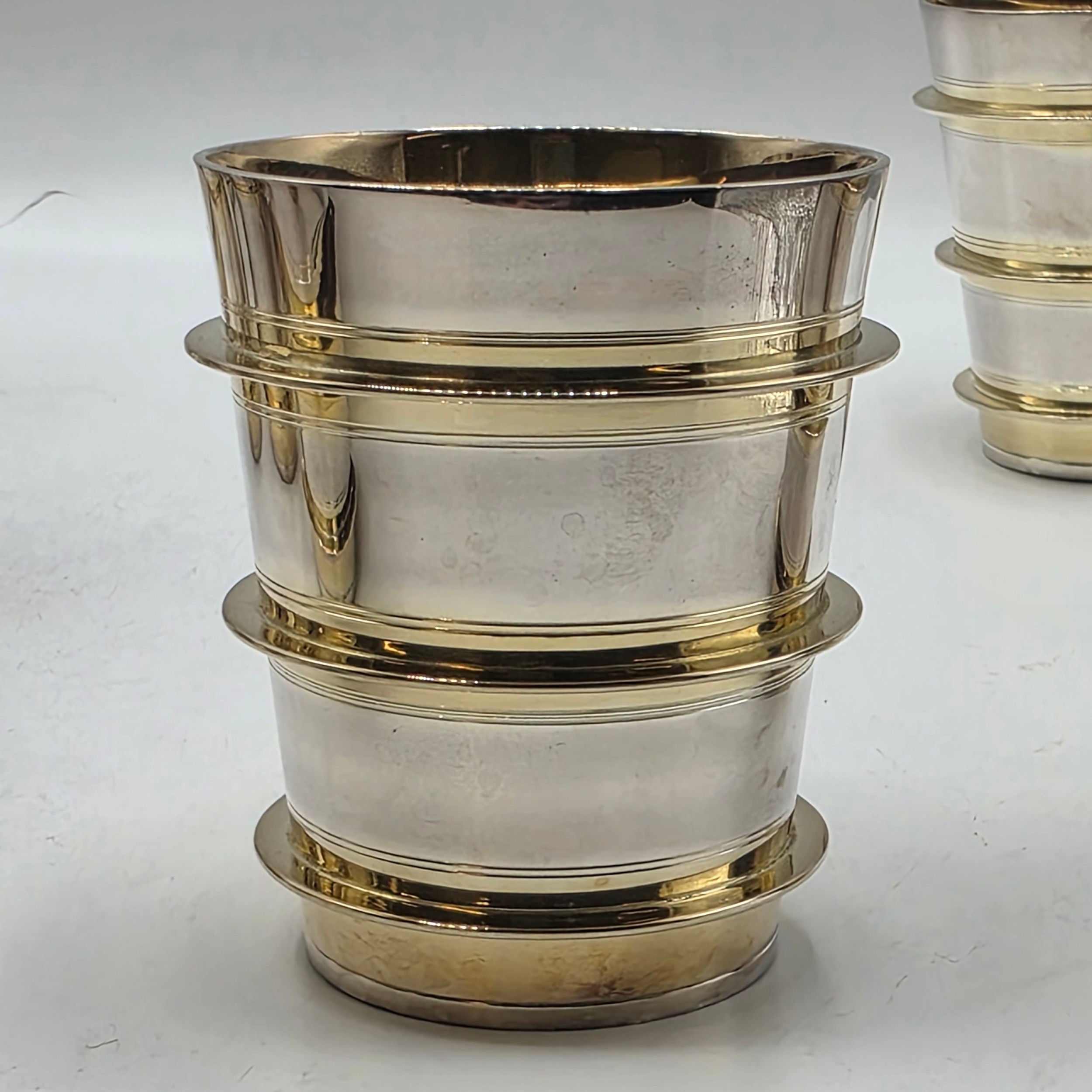 A set of twelve Sterling silver gilt water beakers with gilt ribbed design and interiors each 9.5 cm 2592 g. S J Phillips London 2006