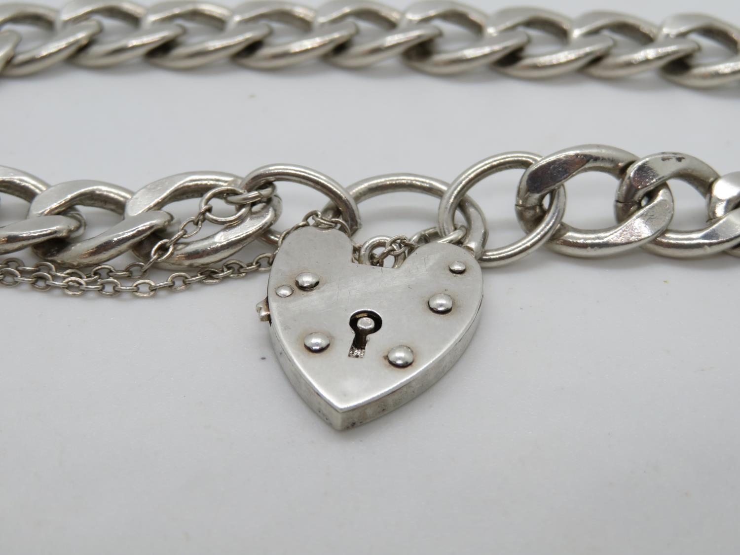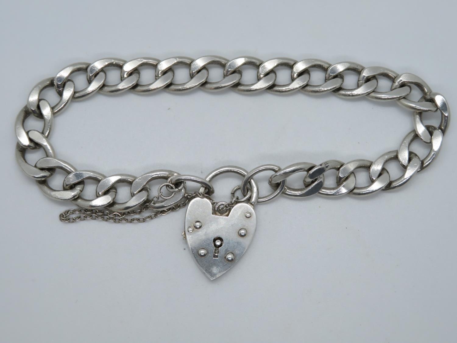 Large vintage silver bracelet with lock and chain Londonn1976 30.6g