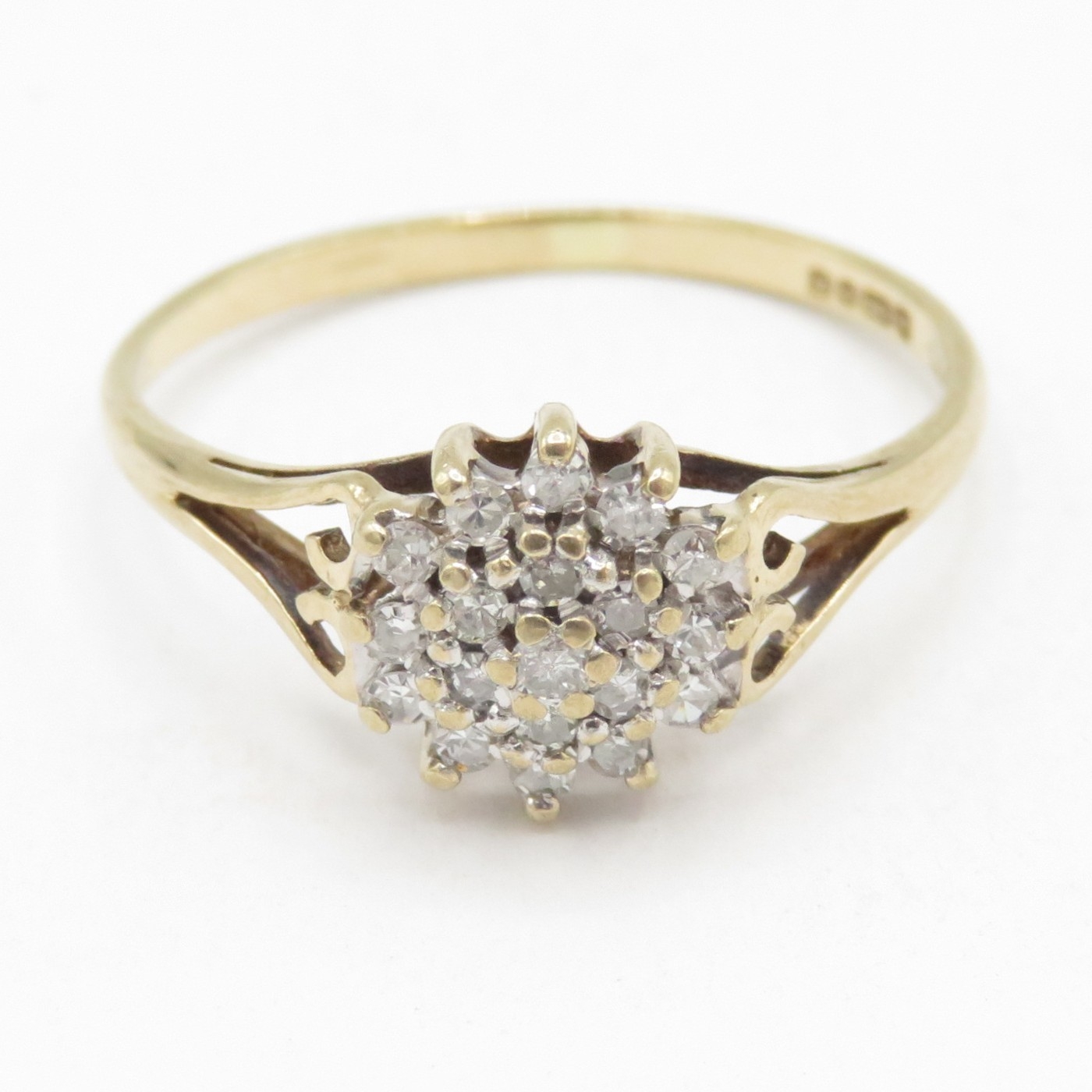 9ct gold diamond cluster ring (1.6g) size O 1/2