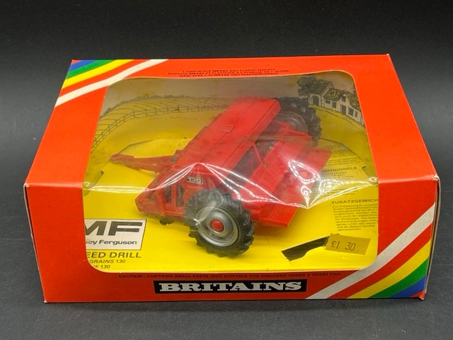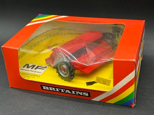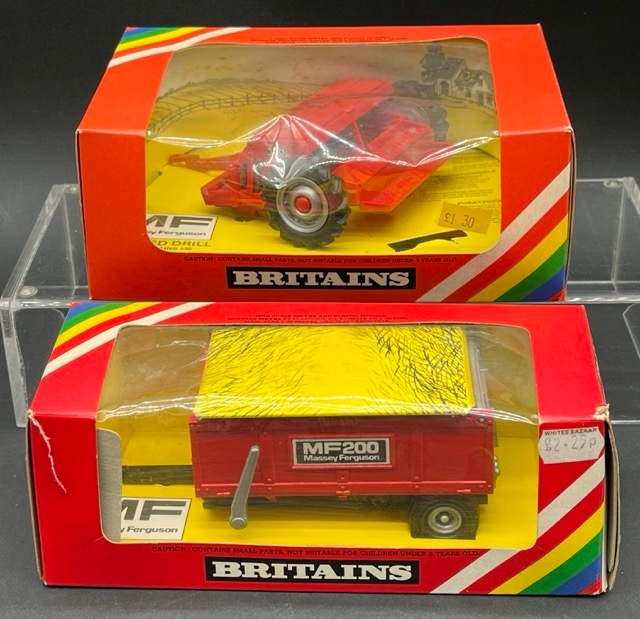 Britains 1:32 Farm Model issue Nos. 9572 Massey Ferguson Trailer; 9577 MF 130 Seed Drill